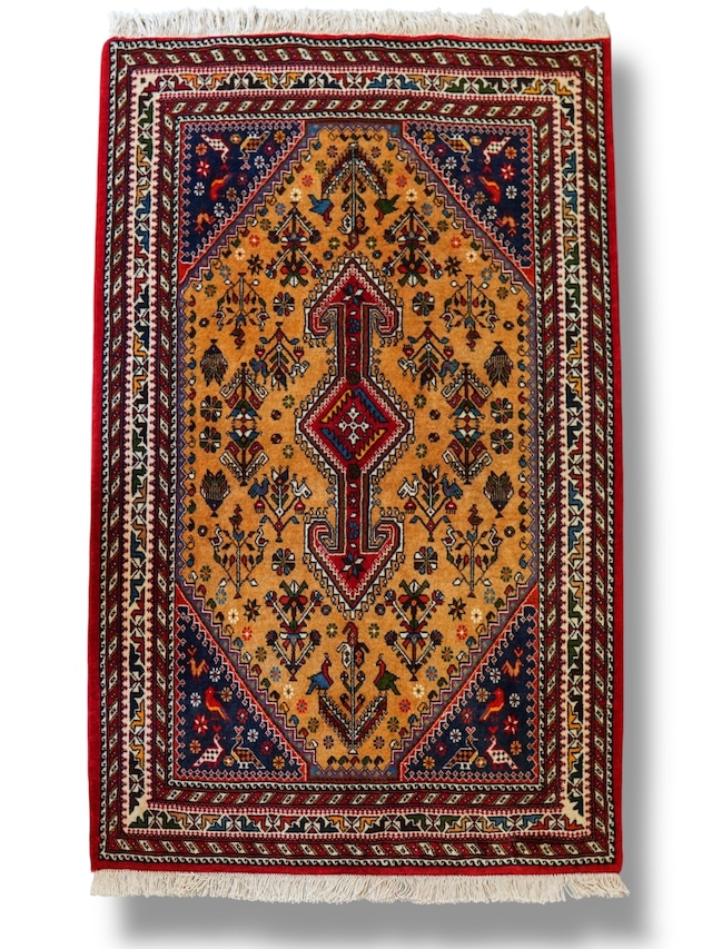 ペルシャ絨毯アバデ 【品名】ペルシャ手織り絨毯アバデ 【サイズ】150×100cm 【素材】コルクウール 【生産地】イラン 【商品番号】H-27 手織り絨毯は全て一点ものですので現品限りです。店頭でも販売しているため先着順となりますこと予めご了承ください。 150×100cmのペルシャ手織り絨毯〈アバデ〉は、イラン中部のアバデ地方で織られた伝統的なトライバルデザインのラグです。中央の幾何学模様と周囲に広がる花や鳥のモチーフは、自然や生命の豊かさを象徴。温かみのあるベージュをベースに、深い赤やネイビーのアクセントが美しく調和しています。高品質な羊毛を使用し、職人の手によって細密に織り上げられた絨毯は、耐久性が高く柔らかな踏み心地が魅力。リビングや玄関、ベッドサイドに敷くだけで、空間に上品な華やかさと温もりをもたらします。 ※ご購入の際は、恐れ入りますが、ABOUTページ下部にございます注意事項を購入前に必ずご確認いただきますようお願いいたします。 Decorworks