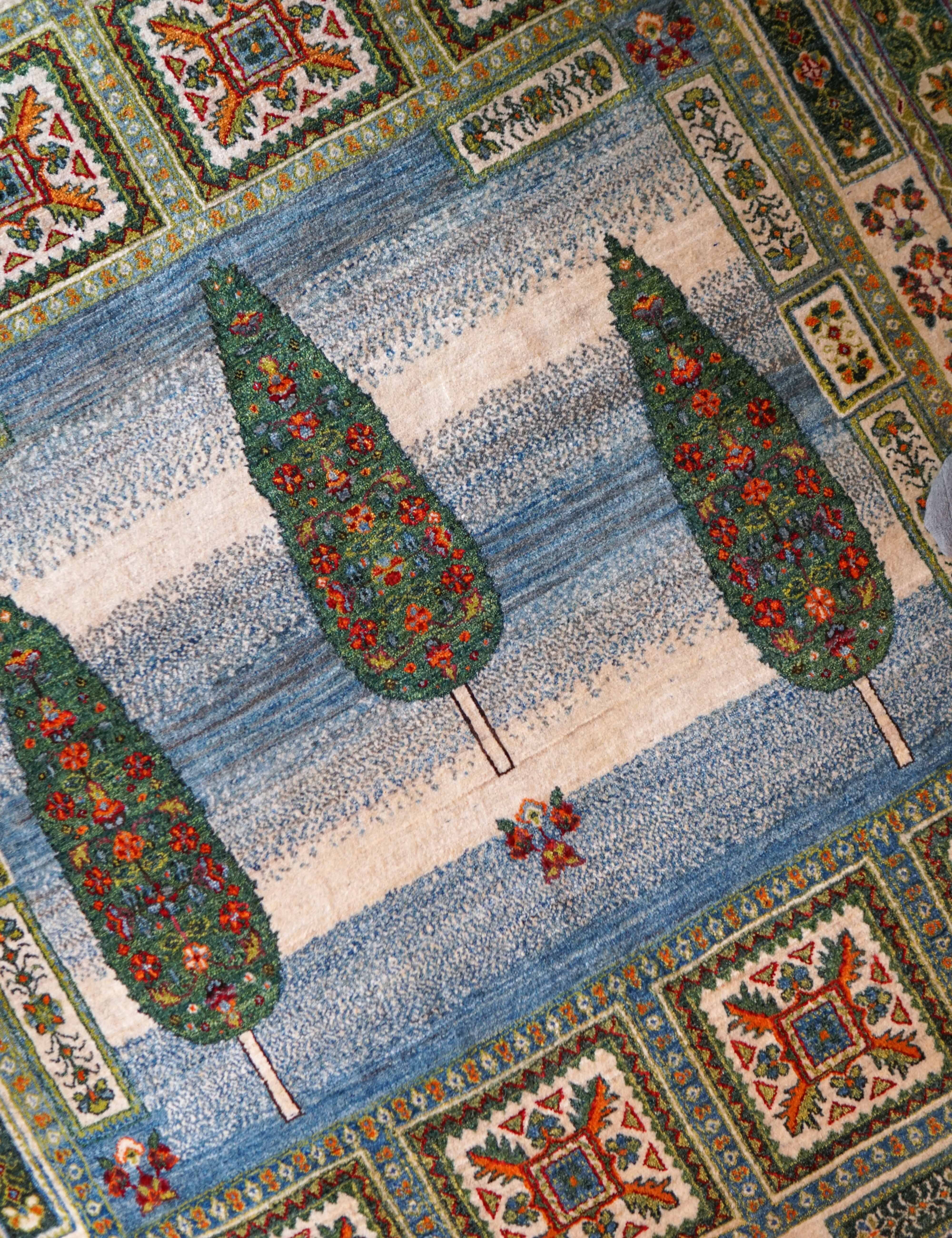 木は、神様のいるとされる天空に向かって伸びる様子から命のモチーフとされています。古くから、『健康』や『長生き』の願いを込めて絨毯の柄に取り込まれてきました。