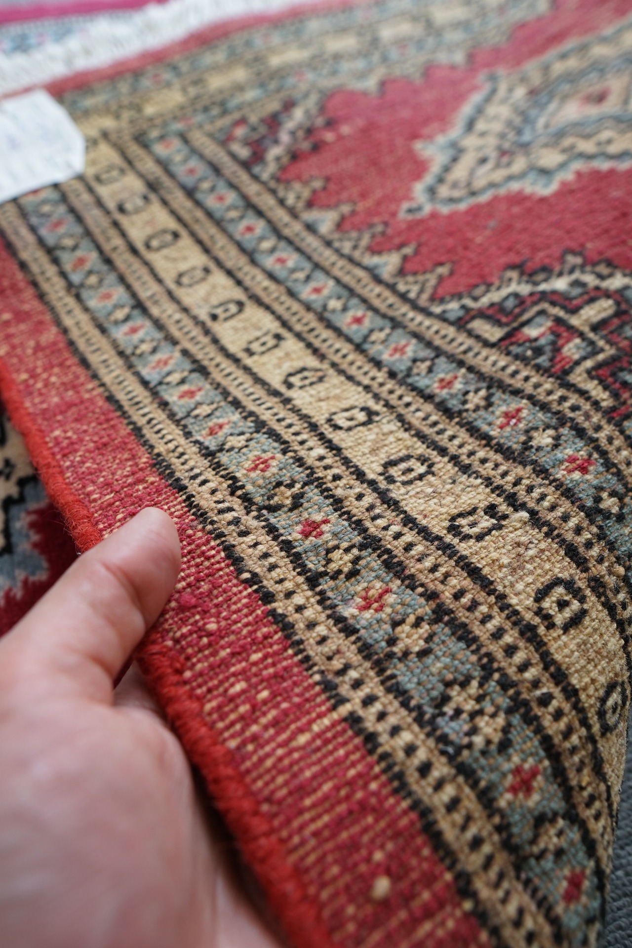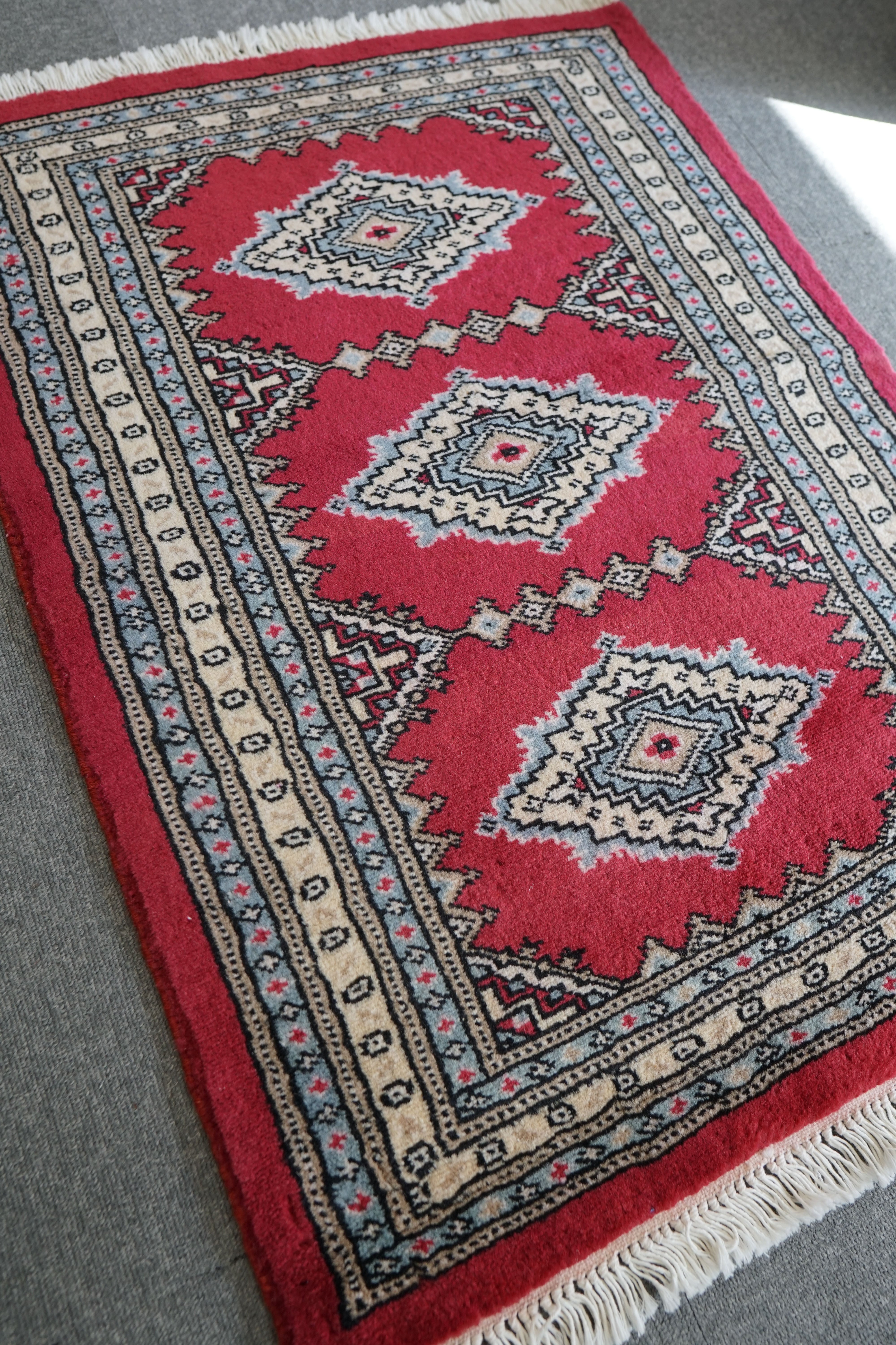 上質なウールをに草木染めを施し、パキスタンの職人が手織りで作り上げた絨毯です。弾力があり、柔らかな肌触り。