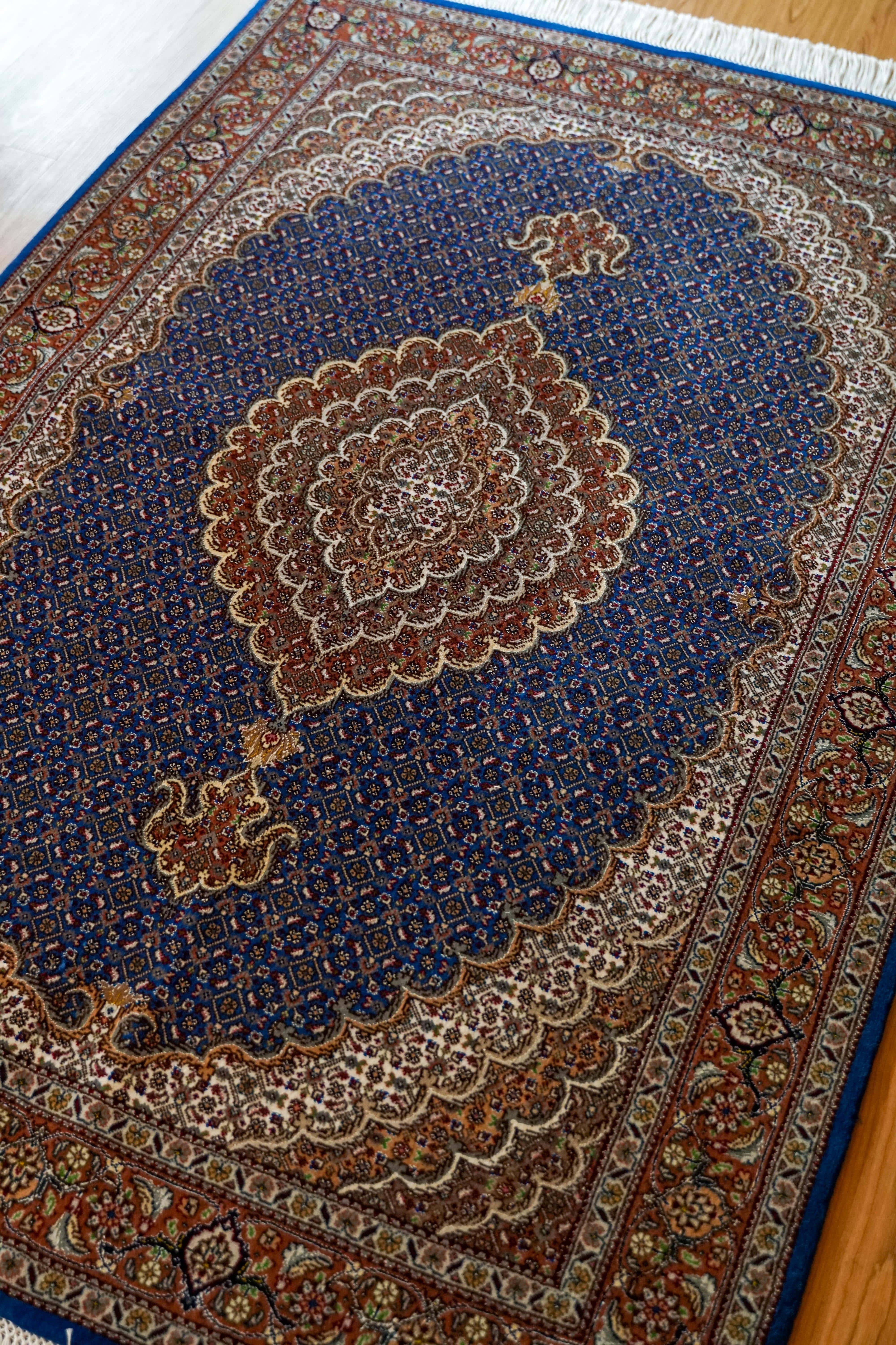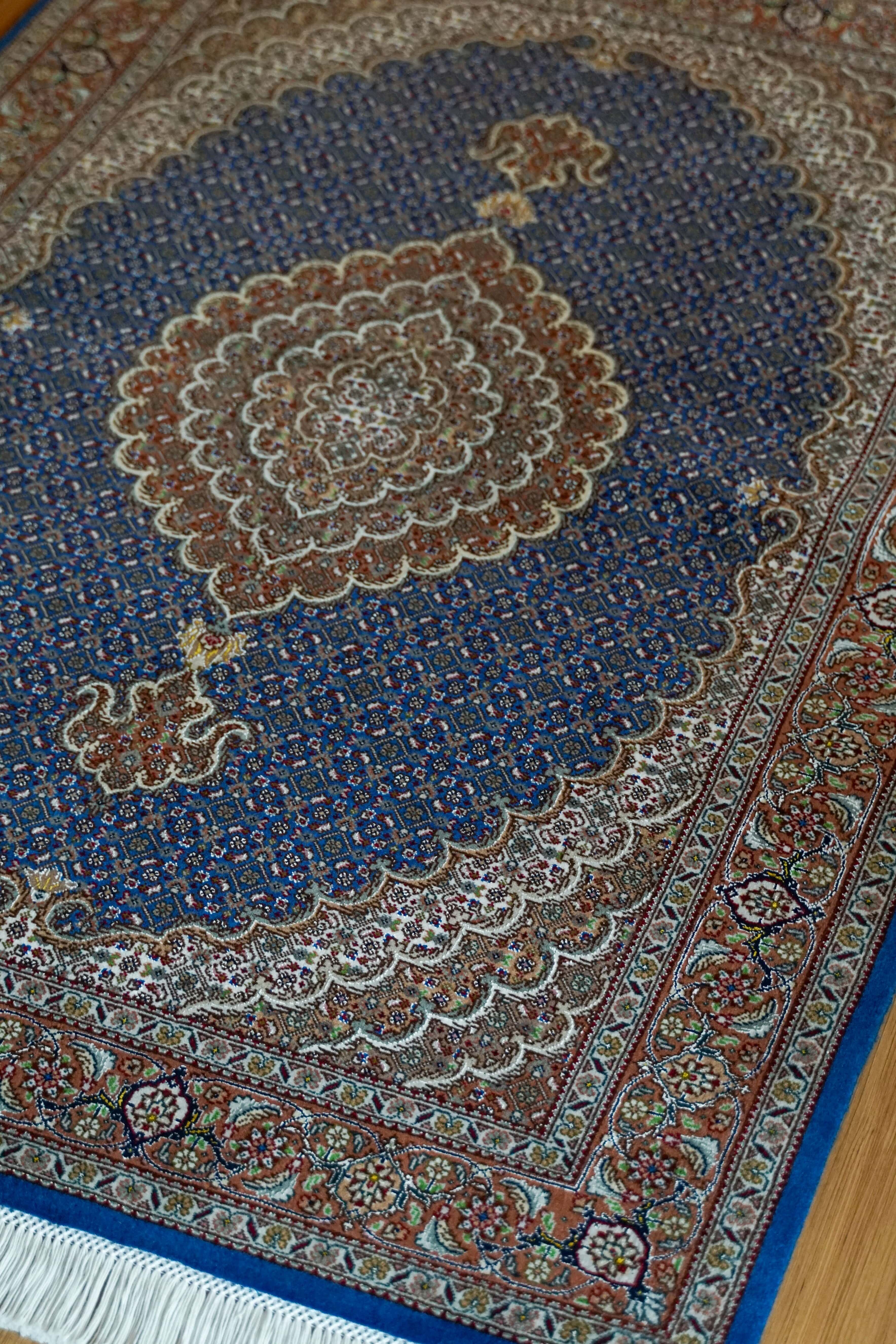 ペルシャ タブリーズ産の手織り絨毯。50ラージ の最高品質。高い織り密度により細かな柄まで繊細に表現することができ、格段に美しくなります。また、しなやかさが増すので、女性や年配の方でもより扱いやすくなります。