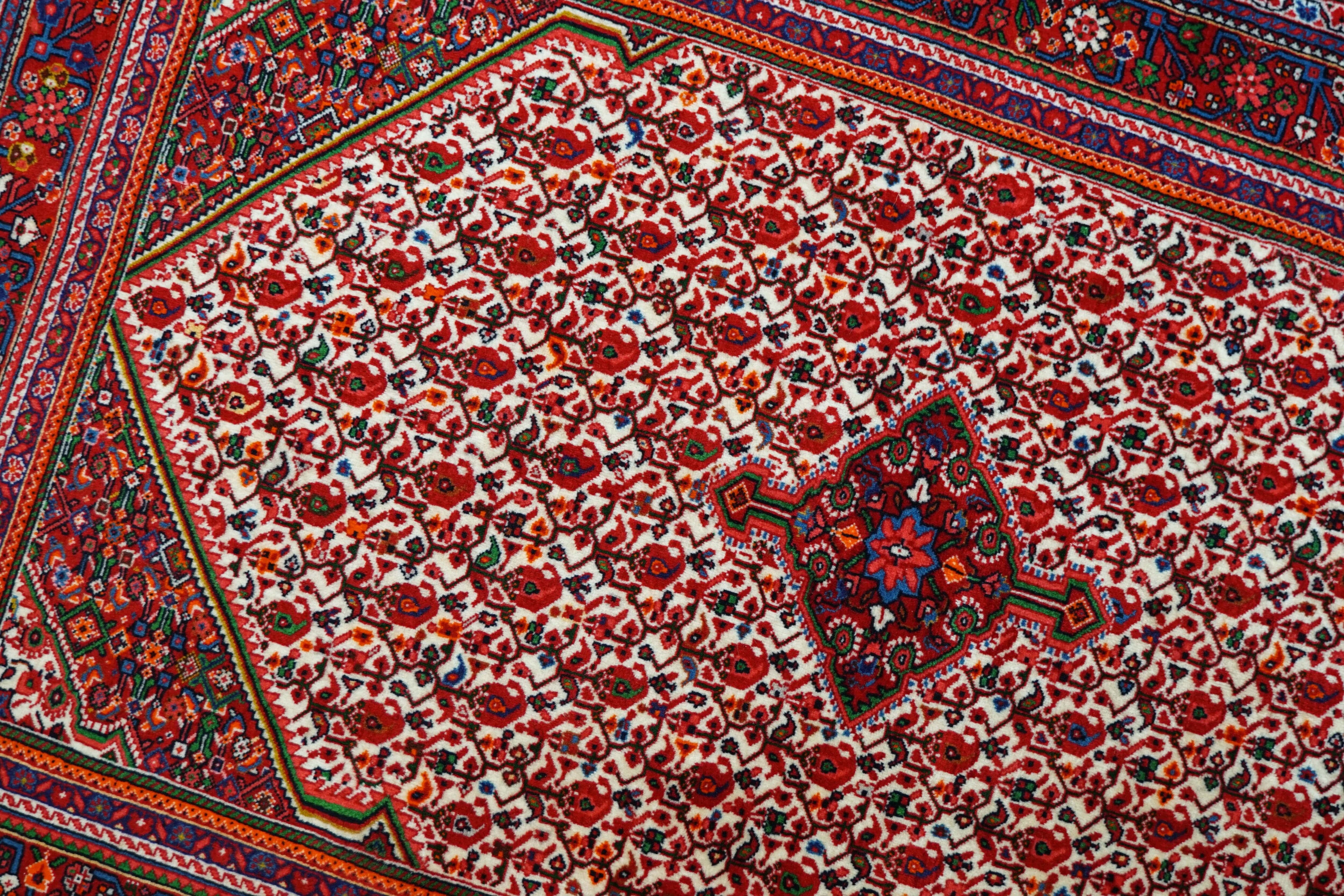 ジョーザンはペルシャ西部・ハマダン地方に位置し、古くから宮廷用の絨毯を納めてきた歴史ある産地です。その起源は19世紀後半にさかのぼり、上質な羊毛と精緻な織りで知られています。ジョーザン絨毯の特徴は、規則的な小花模様と堅牢な織り。伝統の美しさと実用性を兼ね備え、長く愛用できることで世界中の愛好家から高い評価を受けています。