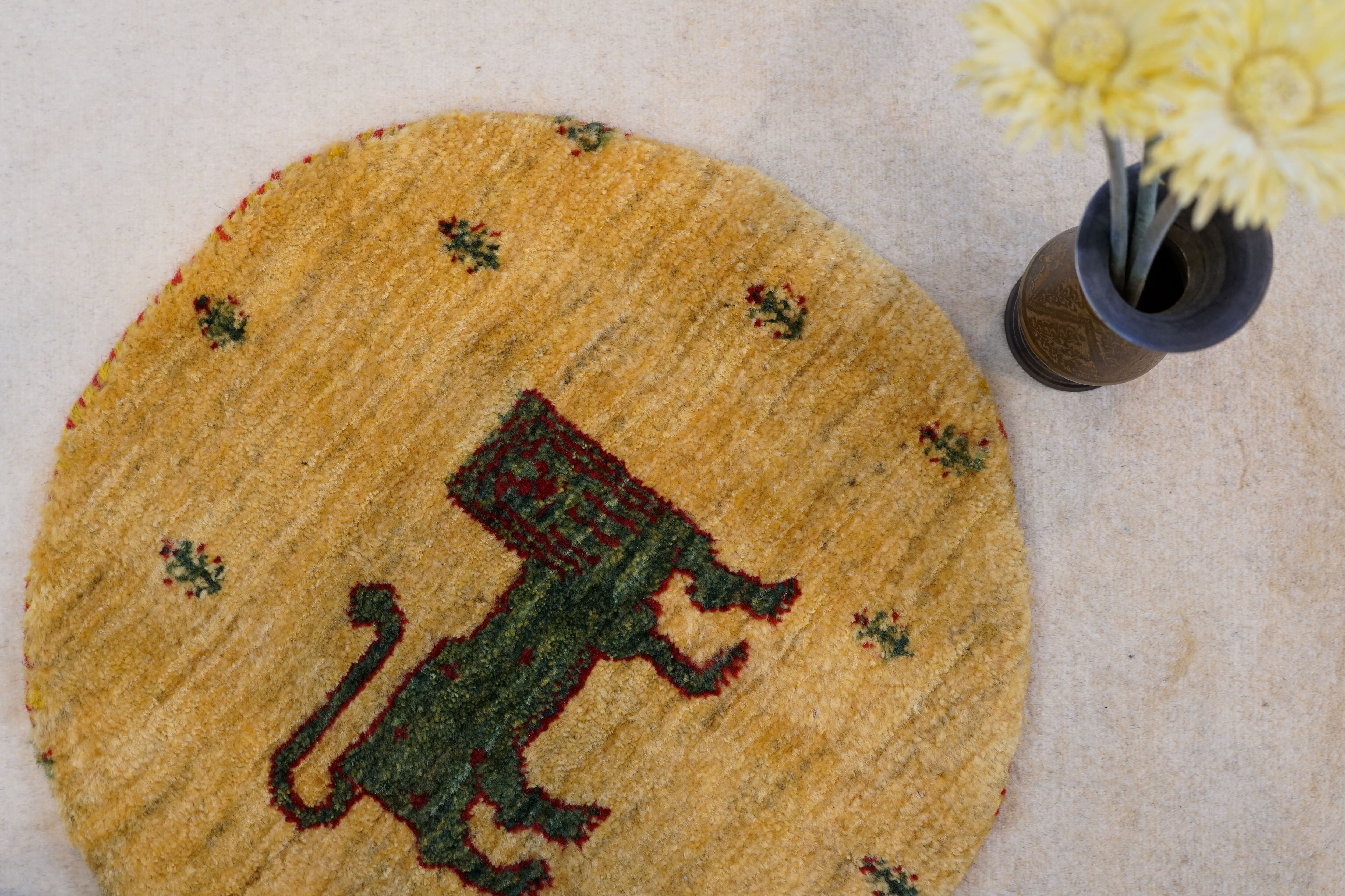 イランの遊牧民カシュガイ族が手織りする、草木染の手紡ぎウールを使ったギャッベという絨毯。太めのウールでざっくりと織られていて厚みがあり、素朴で可愛らしい柄・色遣いが特徴です。