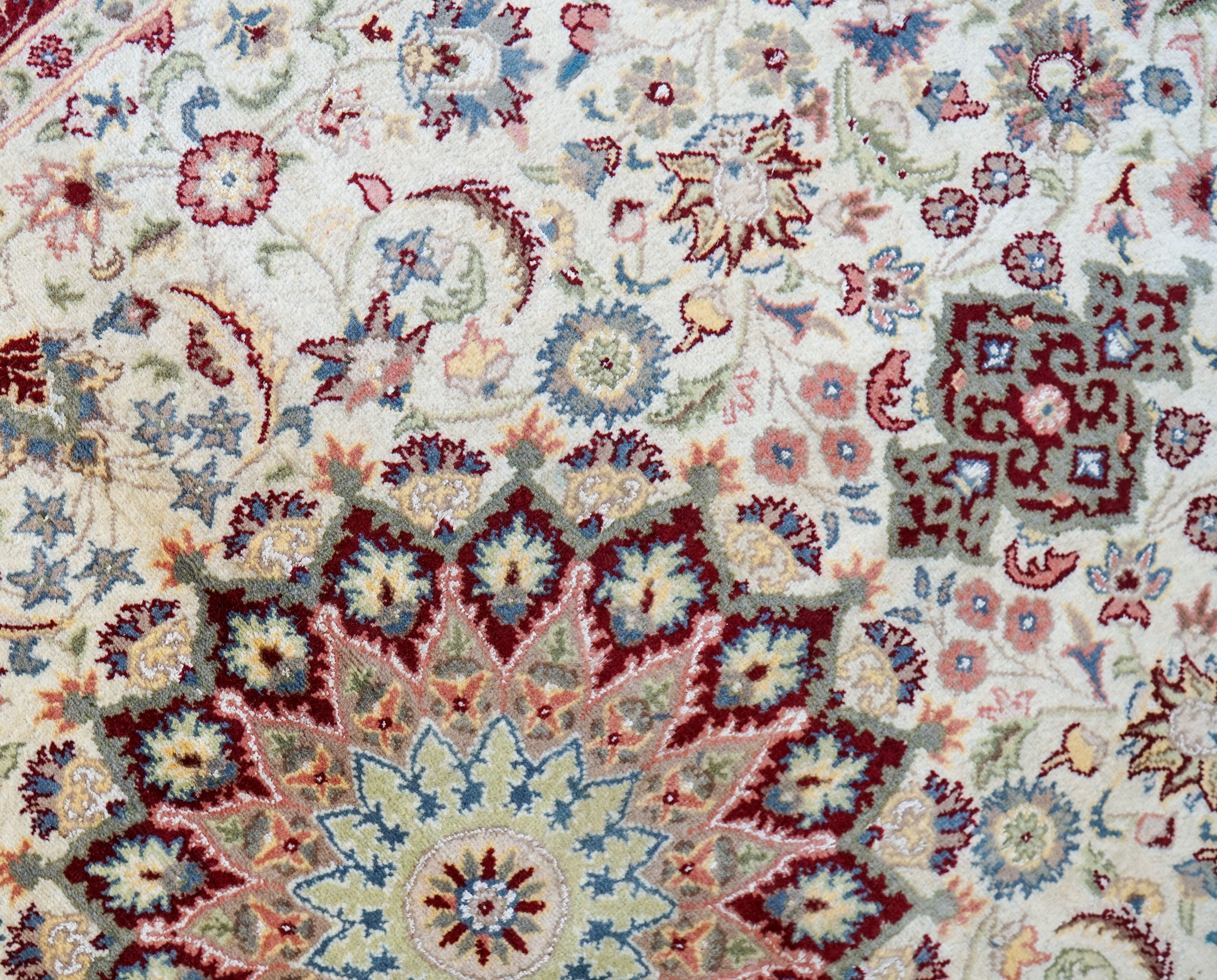 パキスタンでは、古くからペルシャ絨毯の伝統技術を継承しながら独自の織り文化を発展させてきました。そのため、このラグにはペルシャの優美さとパキスタン職人の丁寧な手仕事が融合しています。