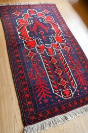 イランとアフガニスタンの国境付近に住むバルーチ族によって織られたトライバルラグです。