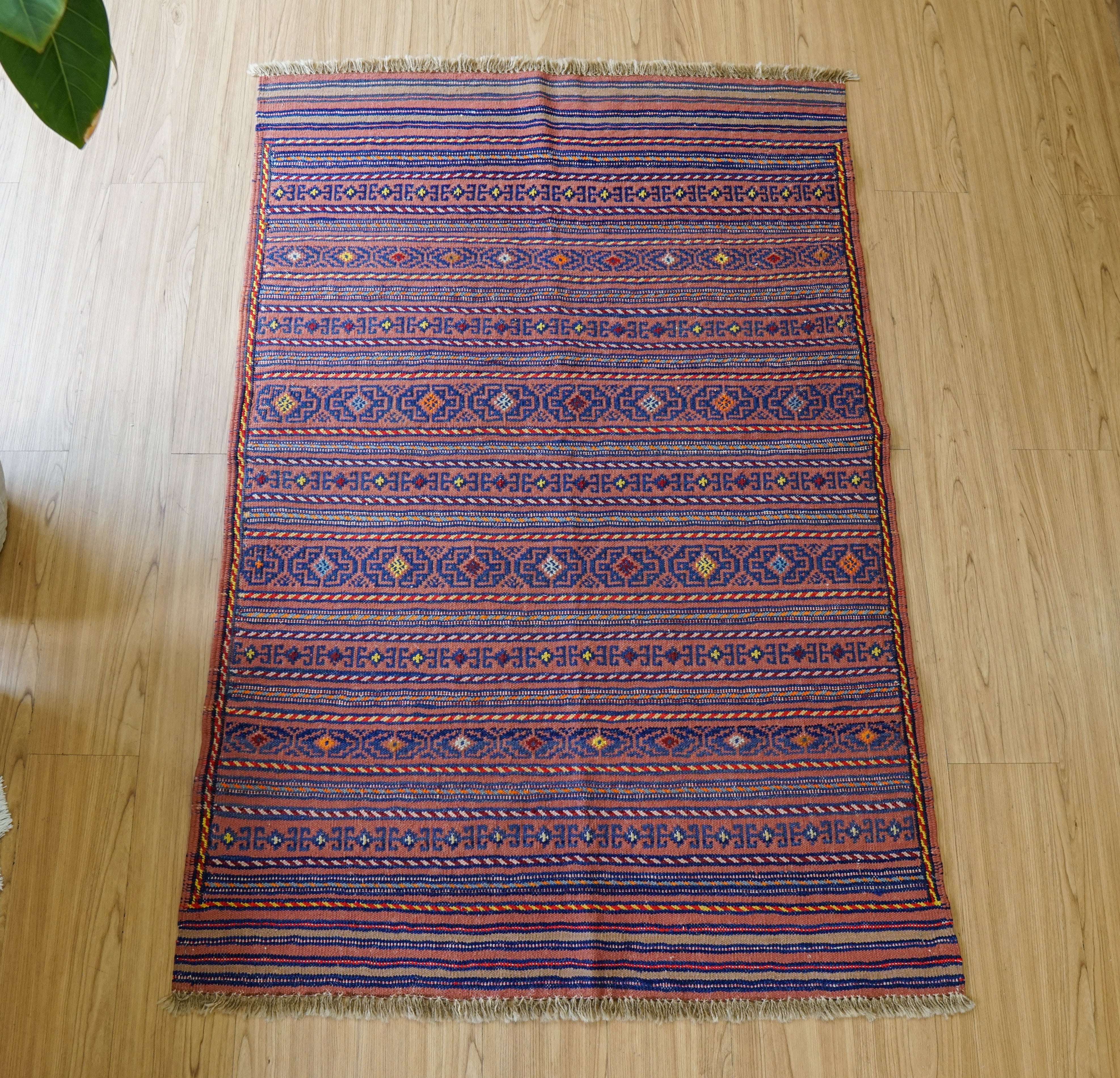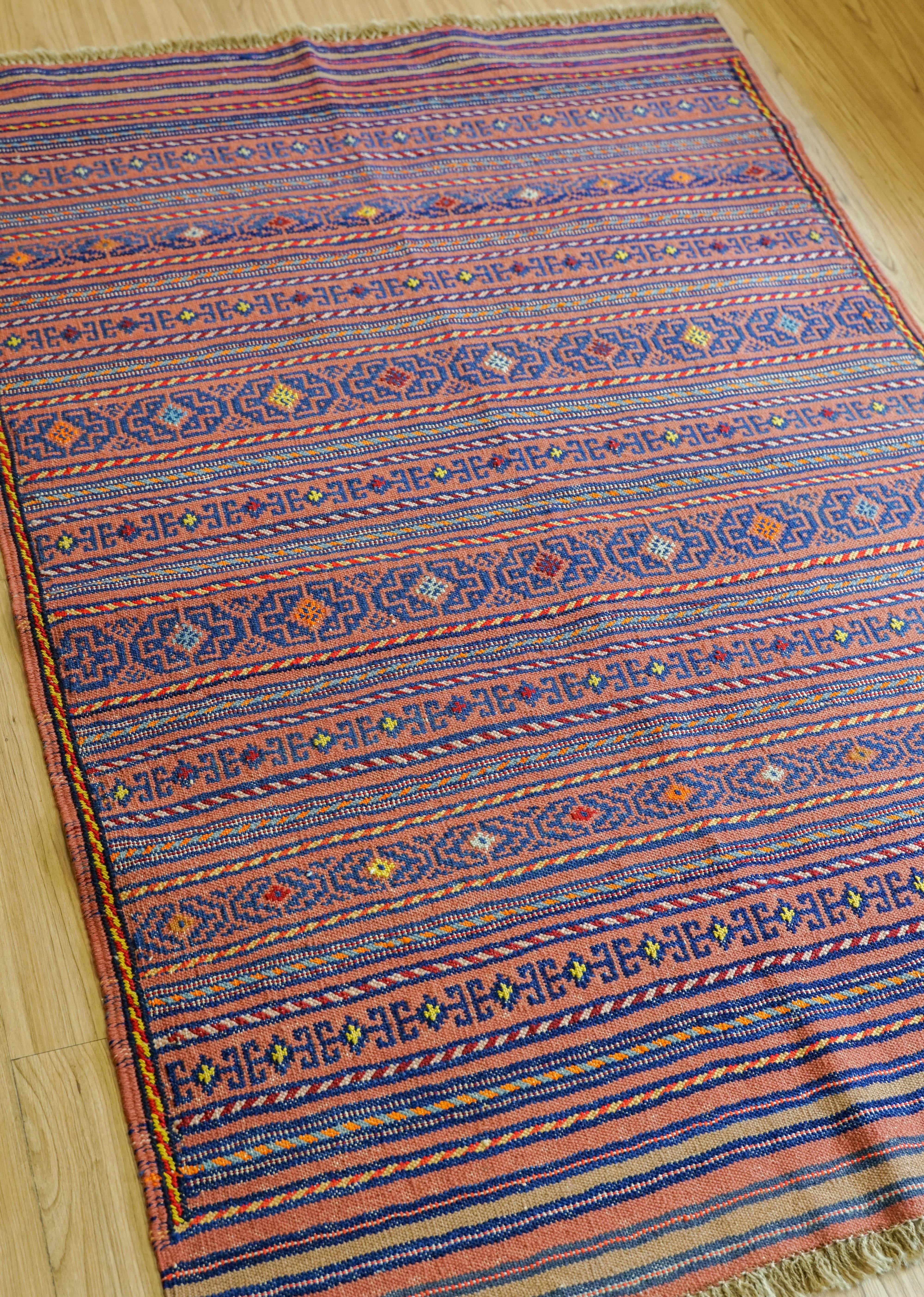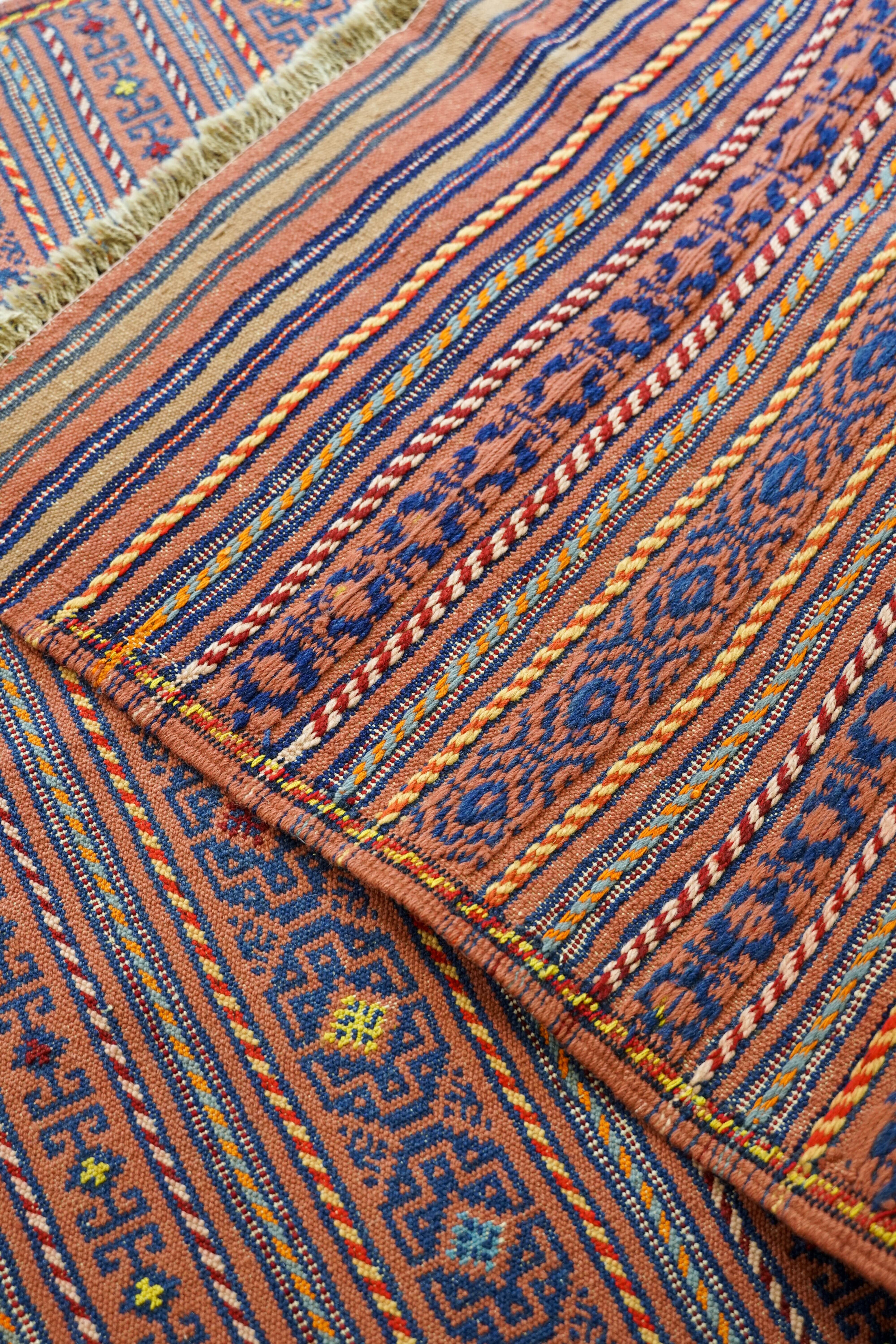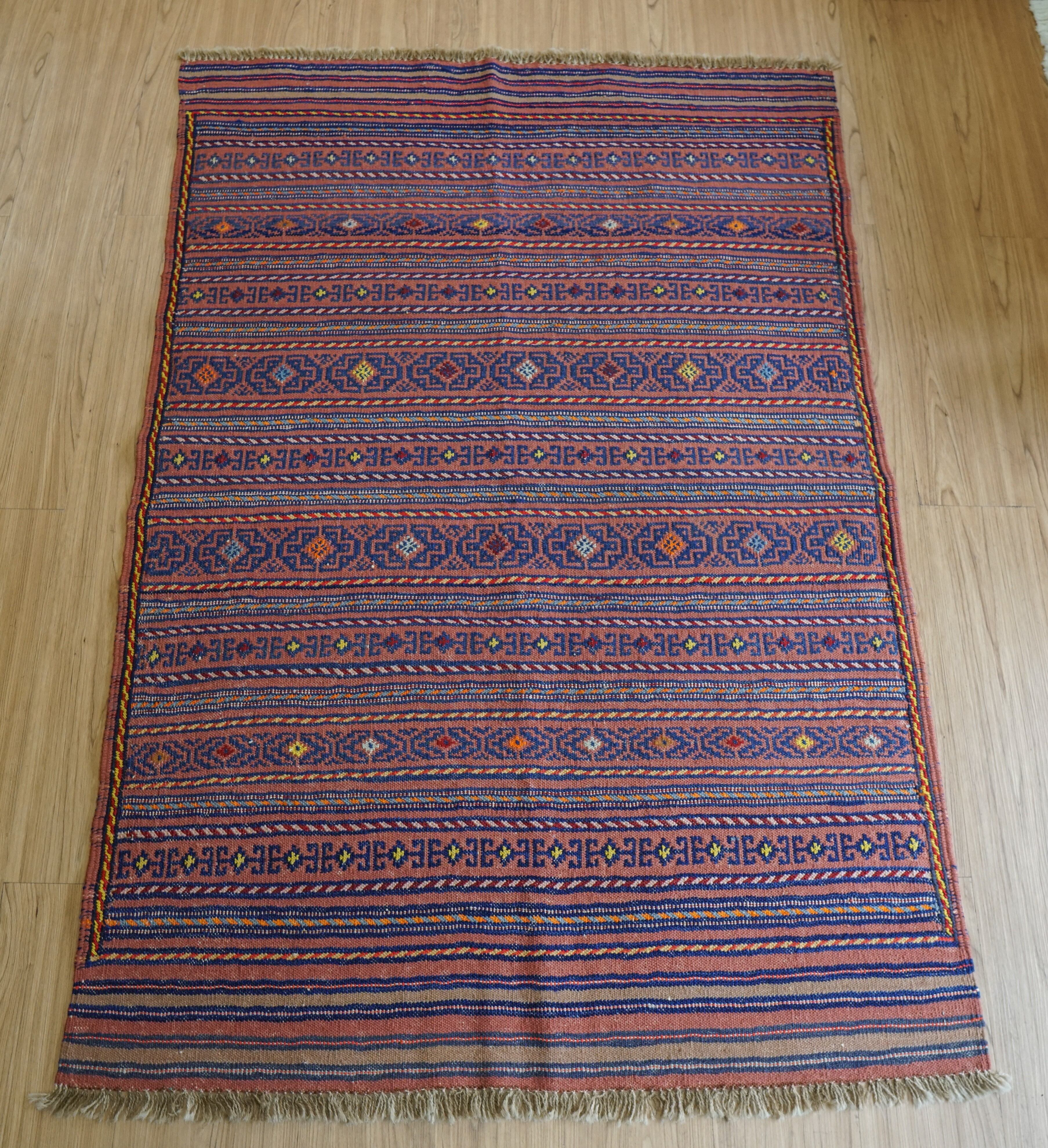 ペルシャ、シラーズ産の手織りキリム。上質なイランウールに草木染めを施し、職人が時間をかけて手織りで作り上げています。
