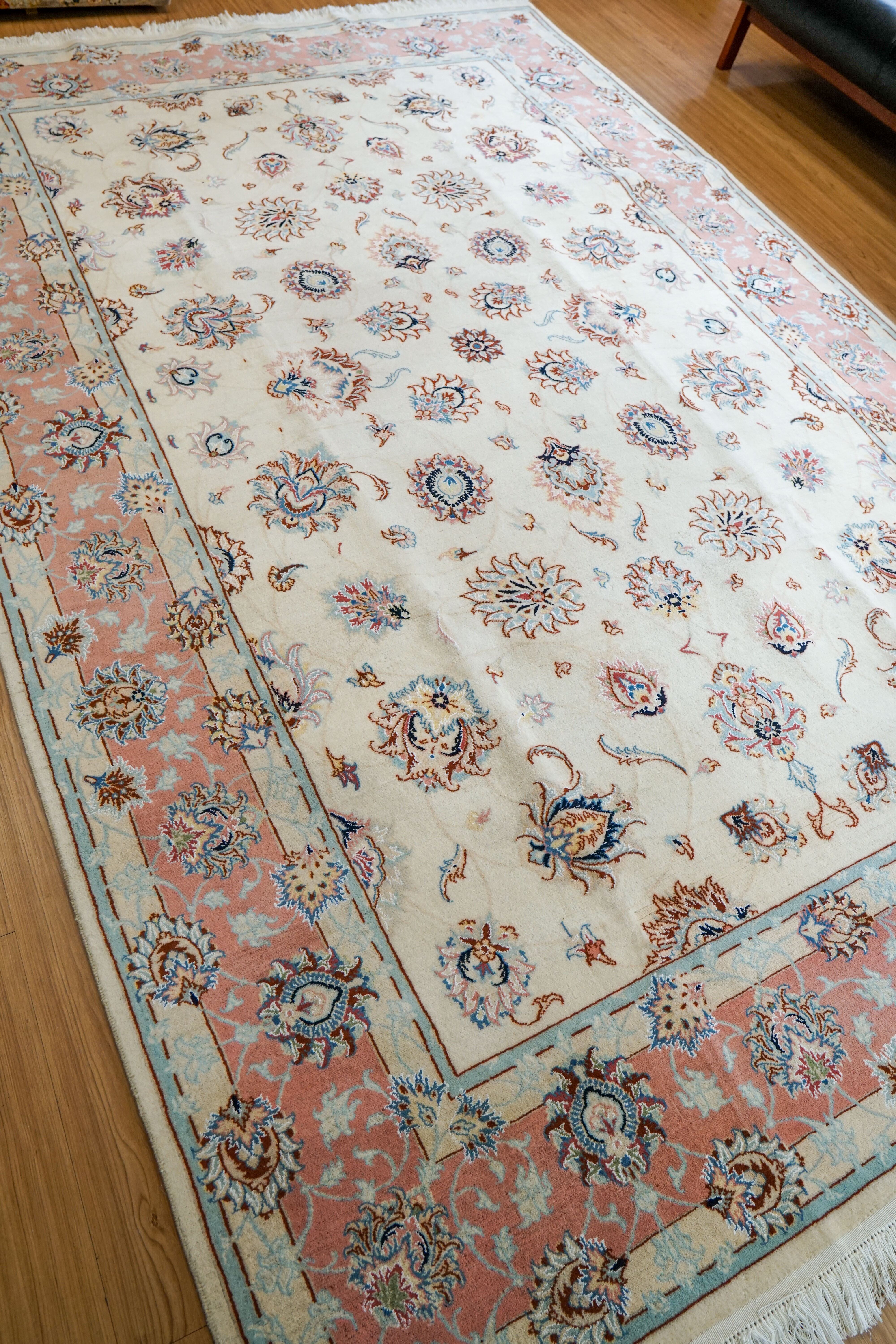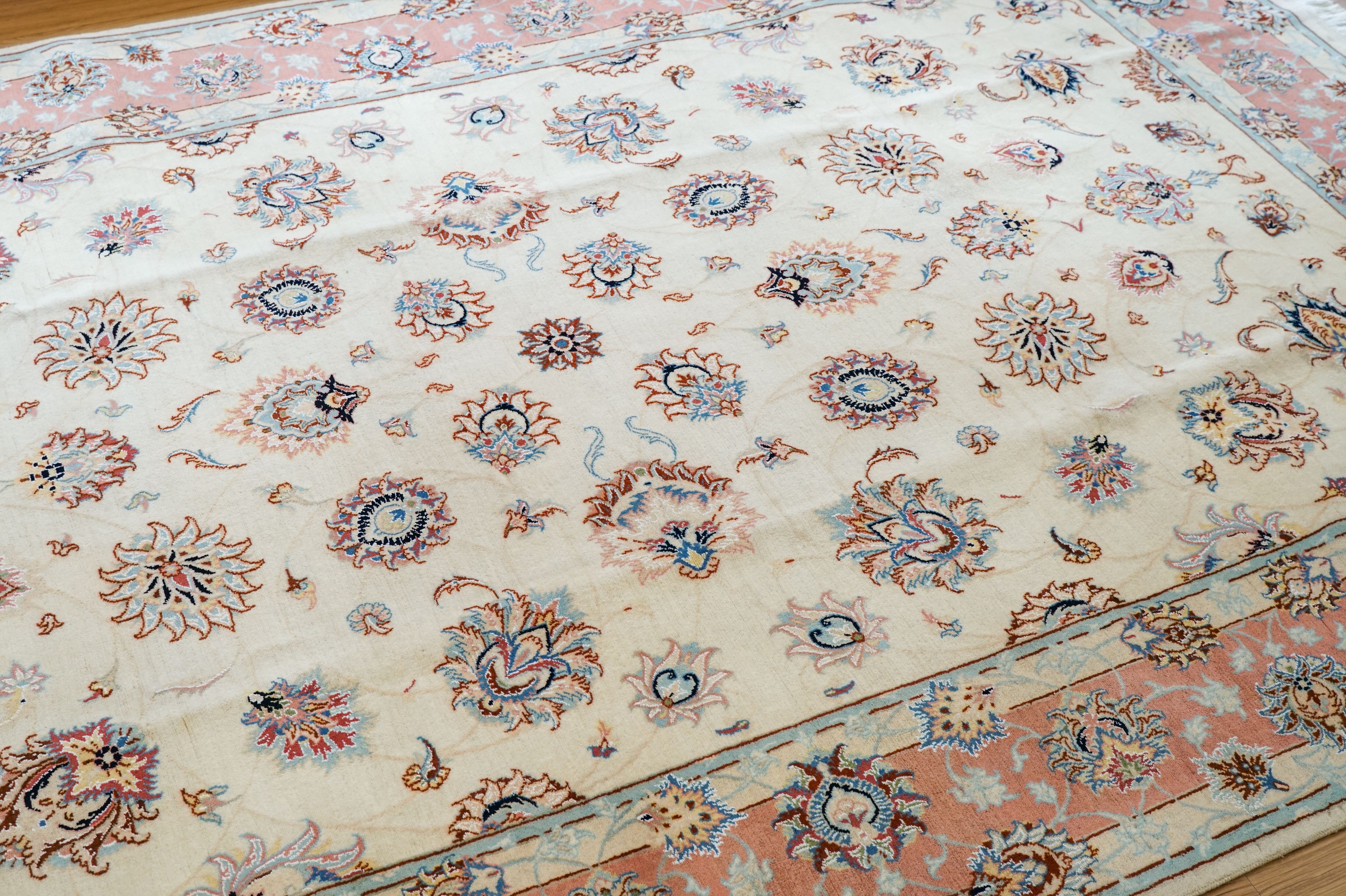熟練した職人による総手織りでつくられたペルシャ タブリーズ産の絨毯です。