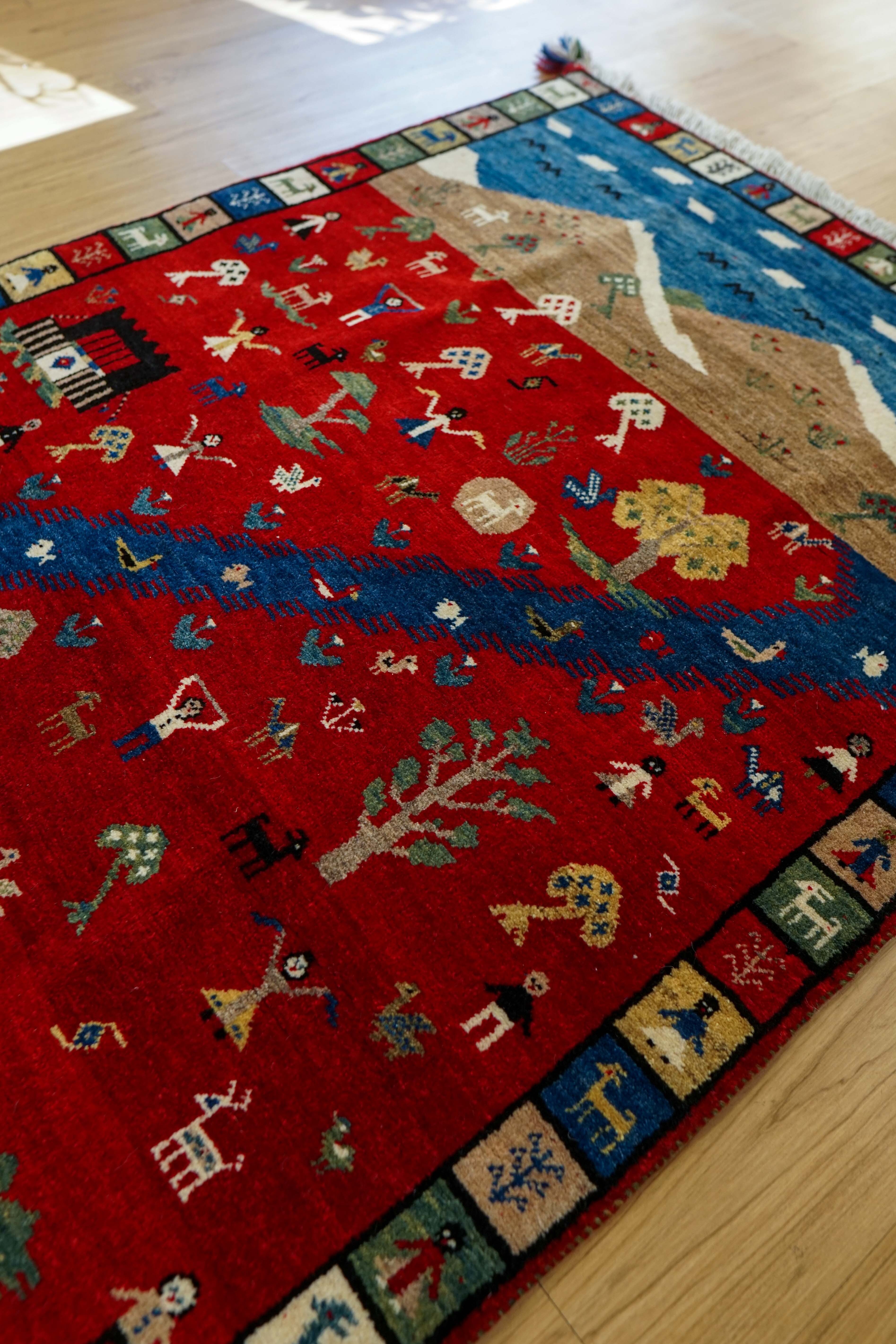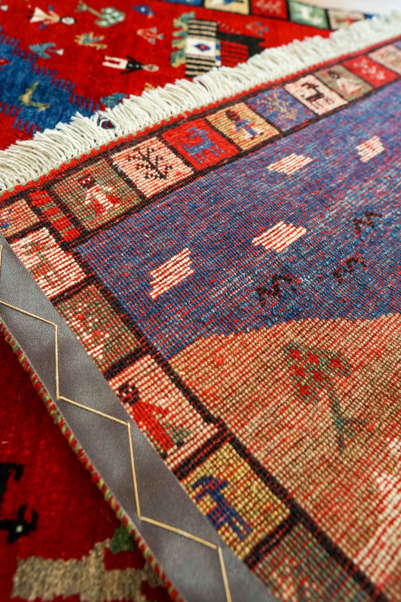 イラン シラーズ地方で遊牧民族によって手織りされたギャッベ。ギャッベの中でも織りが細かい『カシュクリ』と呼ばれるグレードの高いものです。結び目の密度が高いため織り上げるのに一般的なギャッベより時間を要しますが、柄は鮮明になり踏み心地も抜群です。