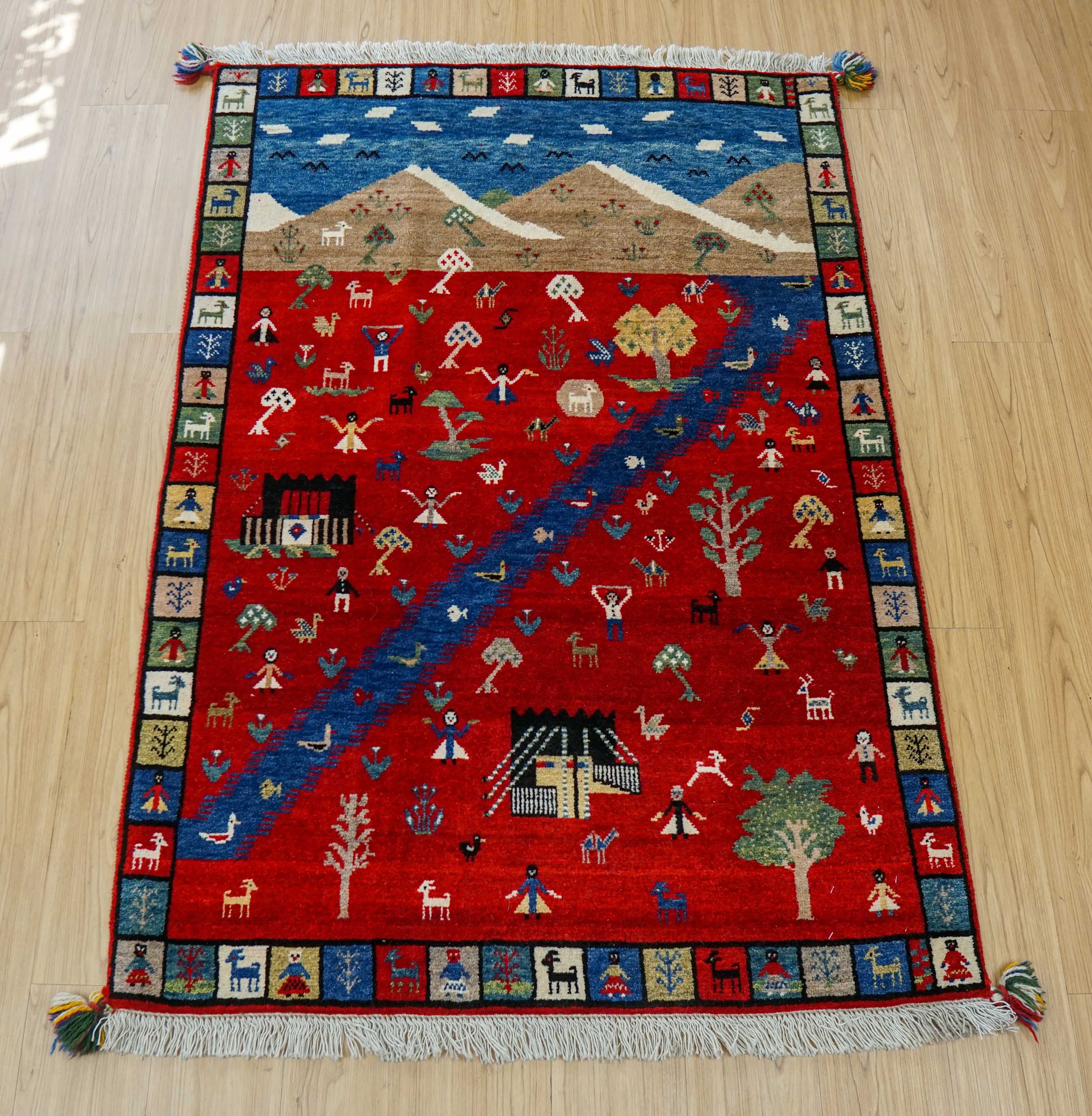 ペルシャ絨毯 カシュクリ ギャッベ リズバフトギヤべ 148×102cm