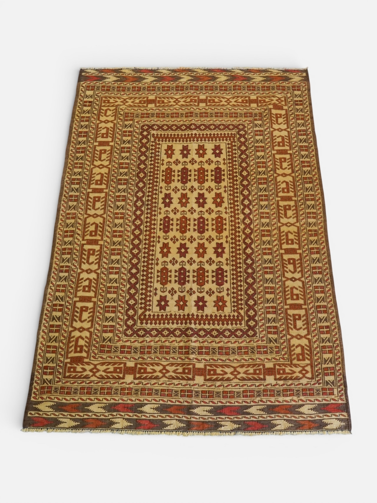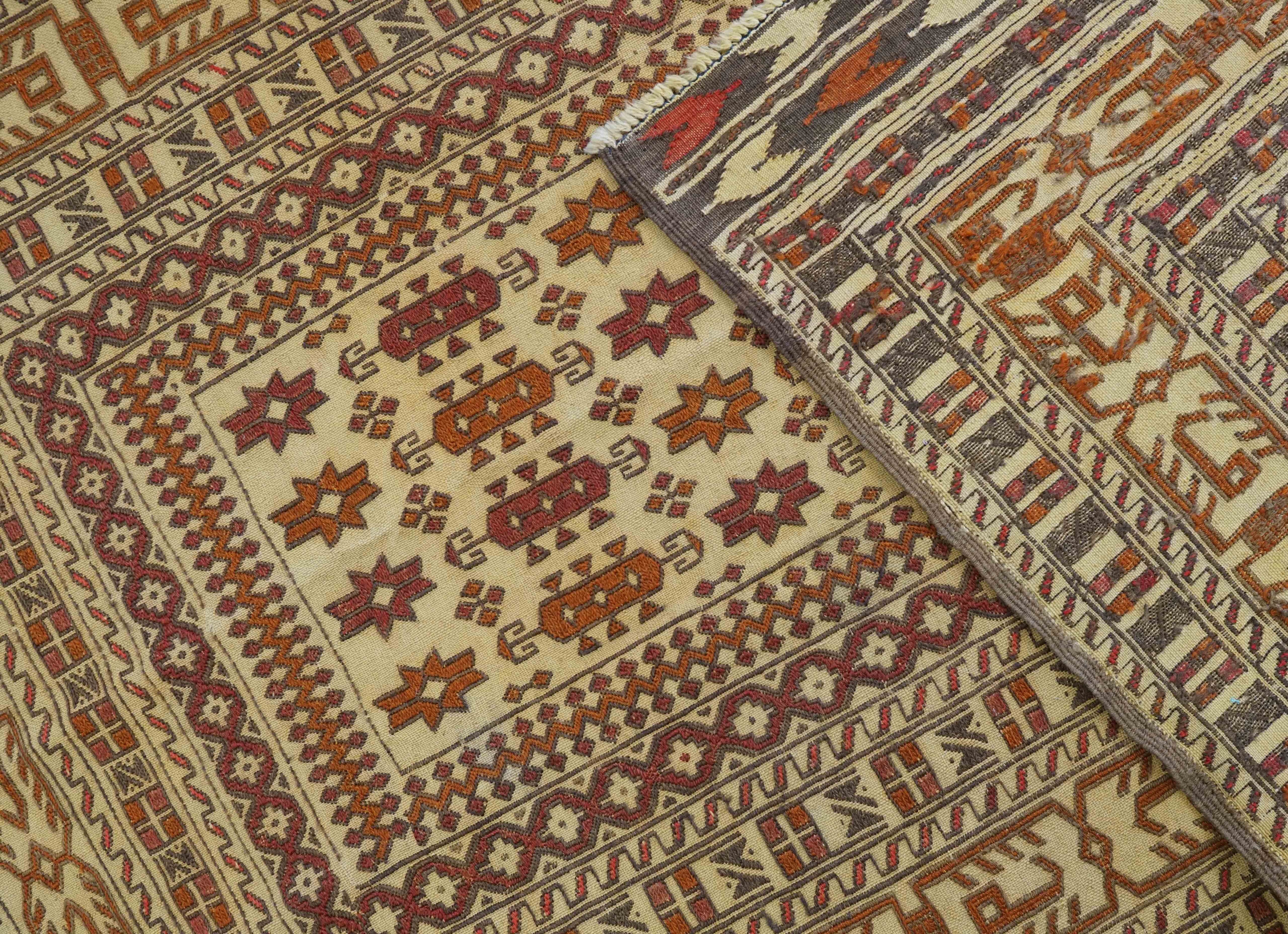 イランの遊牧民が一つ一つ祈りを込めて織り込んだデザインは、機械織りにはない価値があります。安定した豊かな生活と、災いからその幸せを守る意味を込めた縁起のいい柄の絨毯です。