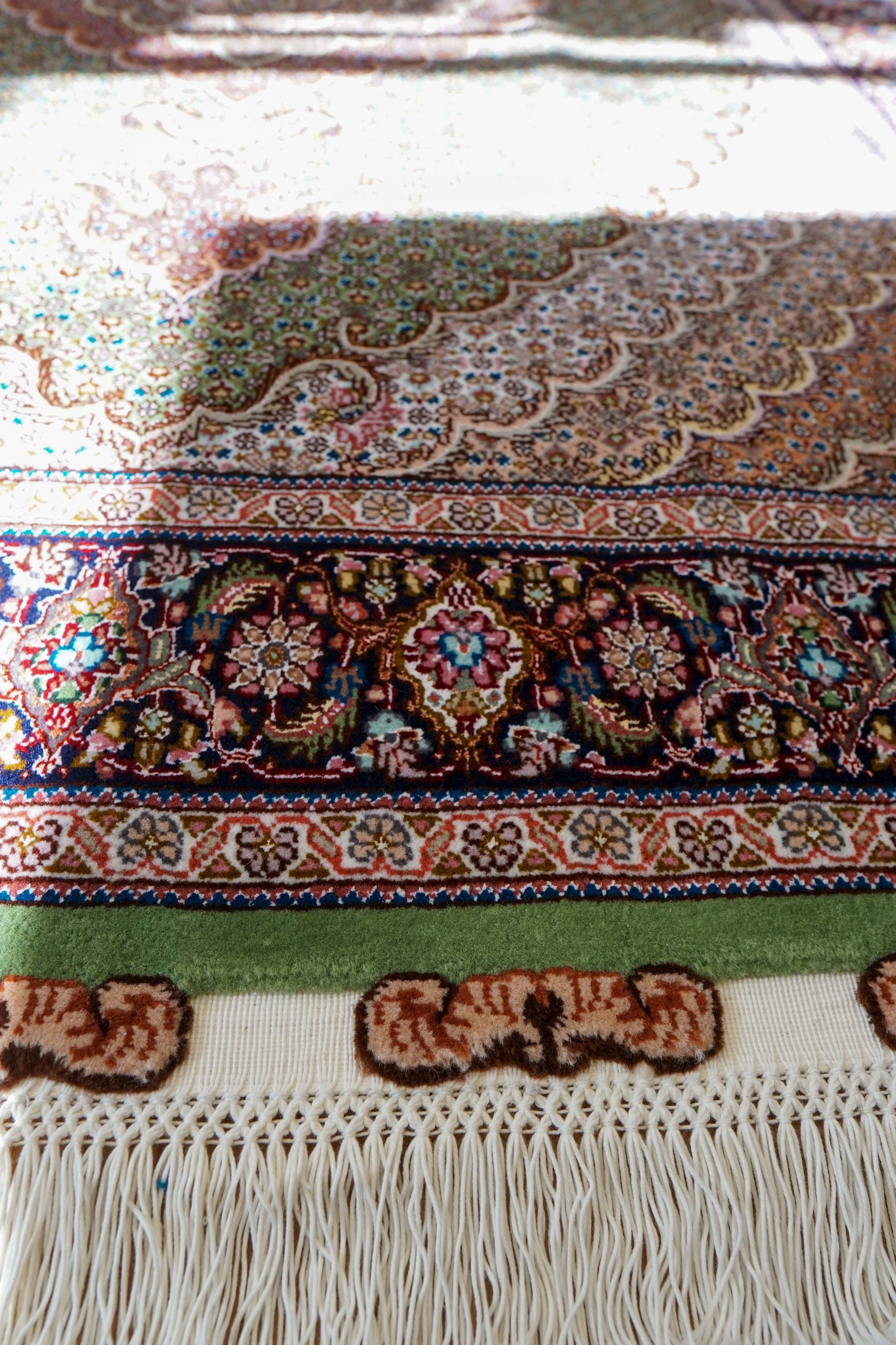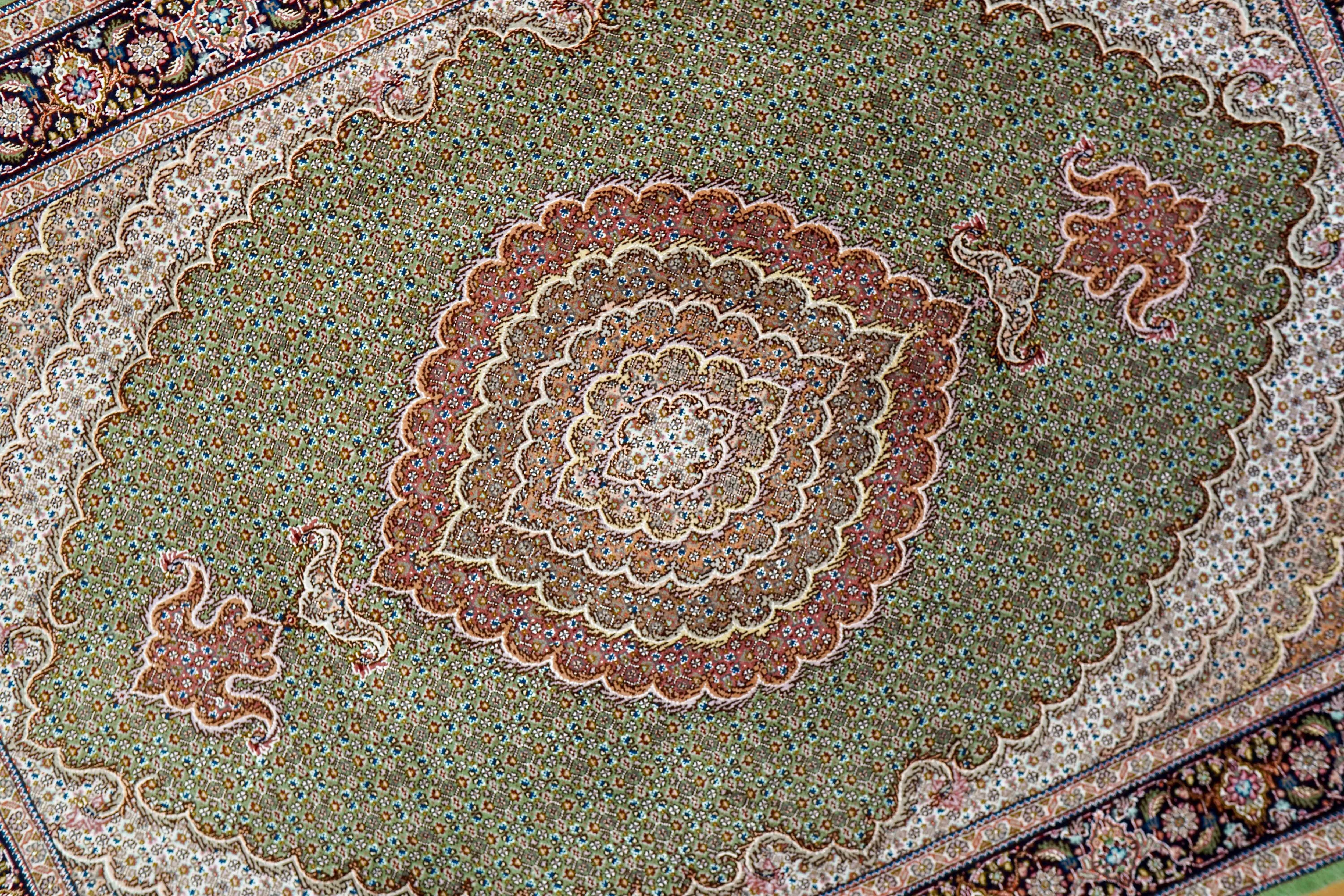 ペルシャ タブリーズ産の手織り絨毯。