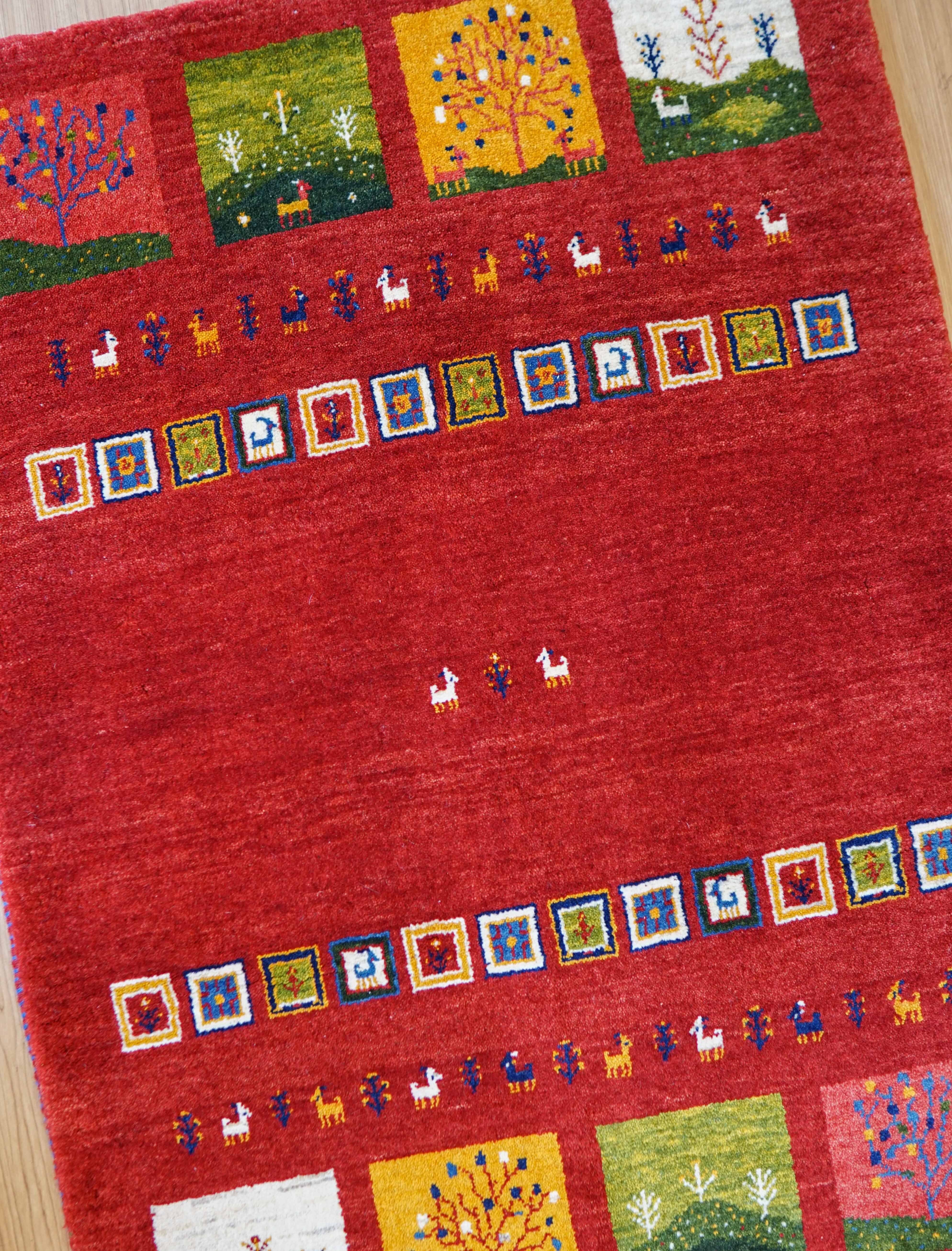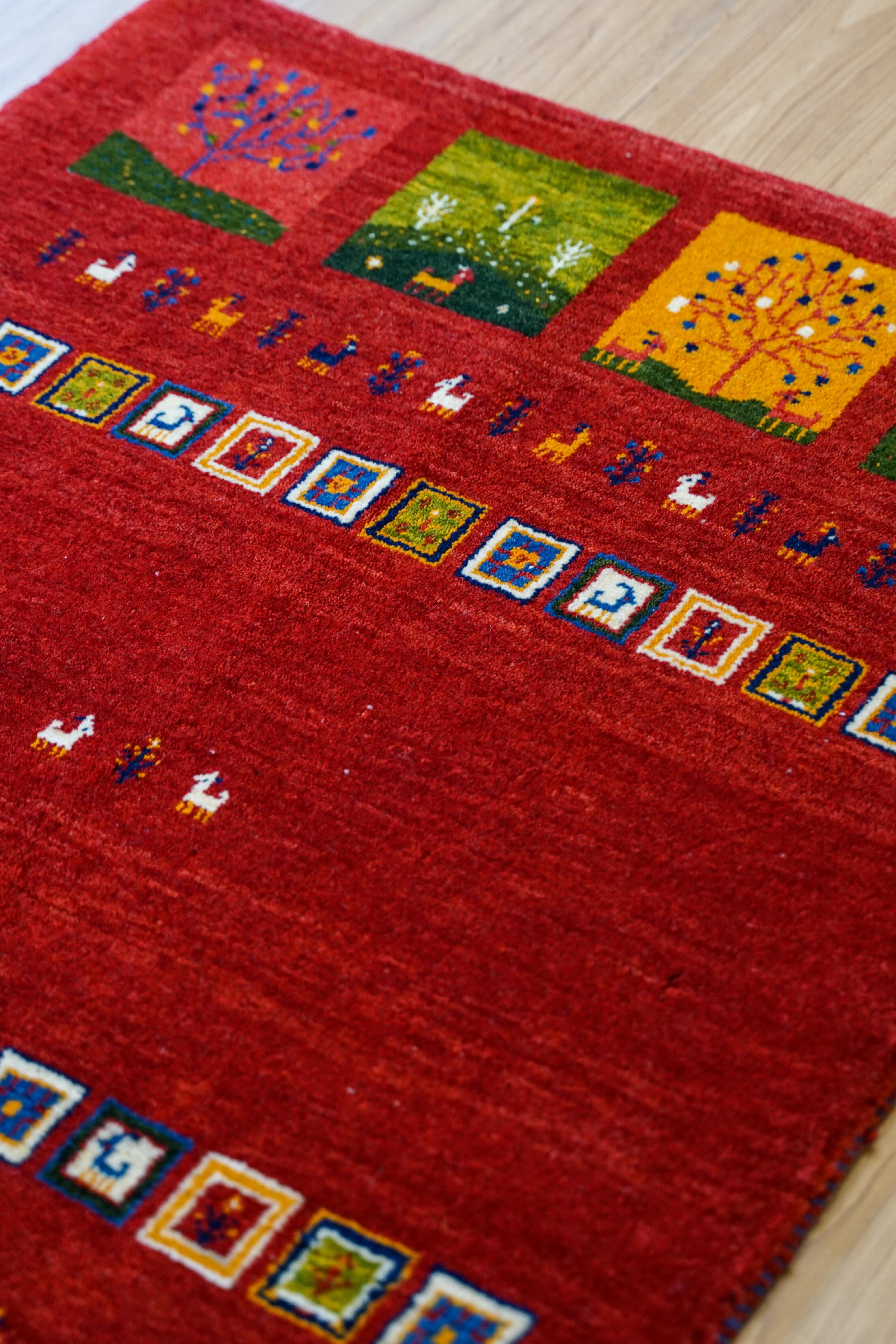 イラン シラーズ地方で遊牧民族によって手織りされたギャッベ。ギャッベの中でも織りが細かい『カシュクリ』と呼ばれるグレードの高いものです。結び目の密度が高いため織り上げるのに一般的なギャッベより時間を要しますが、柄は鮮明になり踏み心地も抜群です。