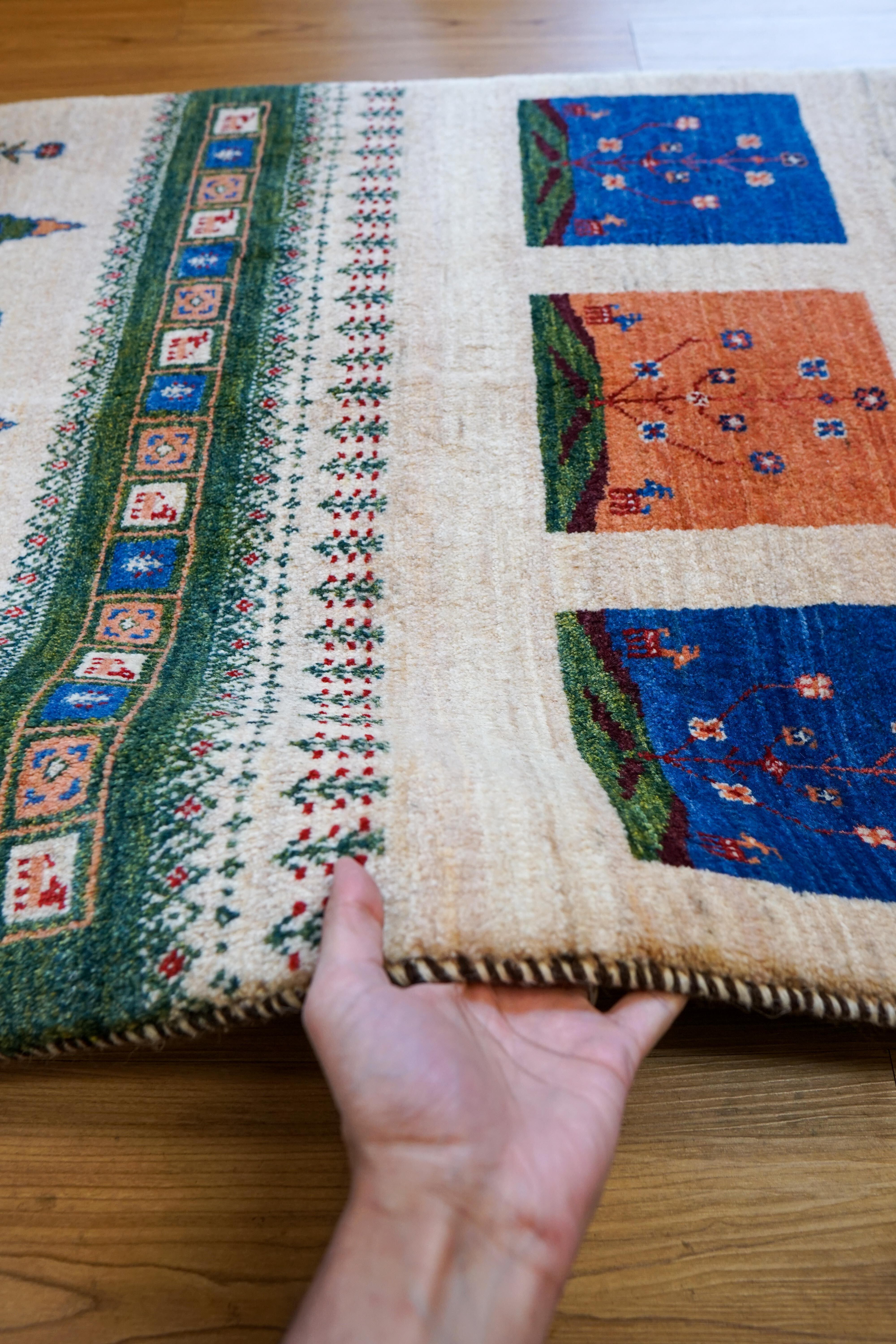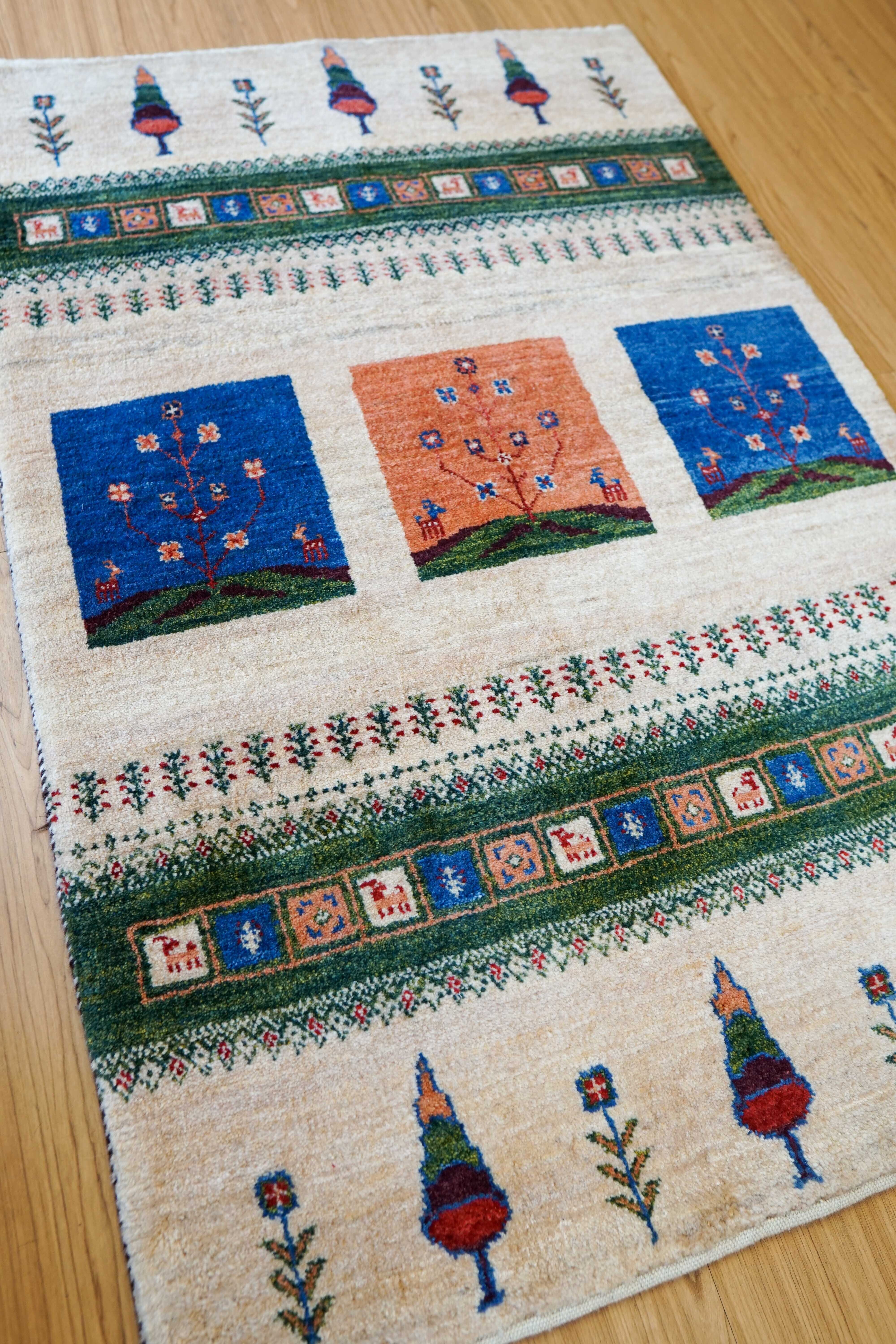 ペルシャ絨毯 カシュクリ ギャッベ リズバフトギヤべ 128×87cm