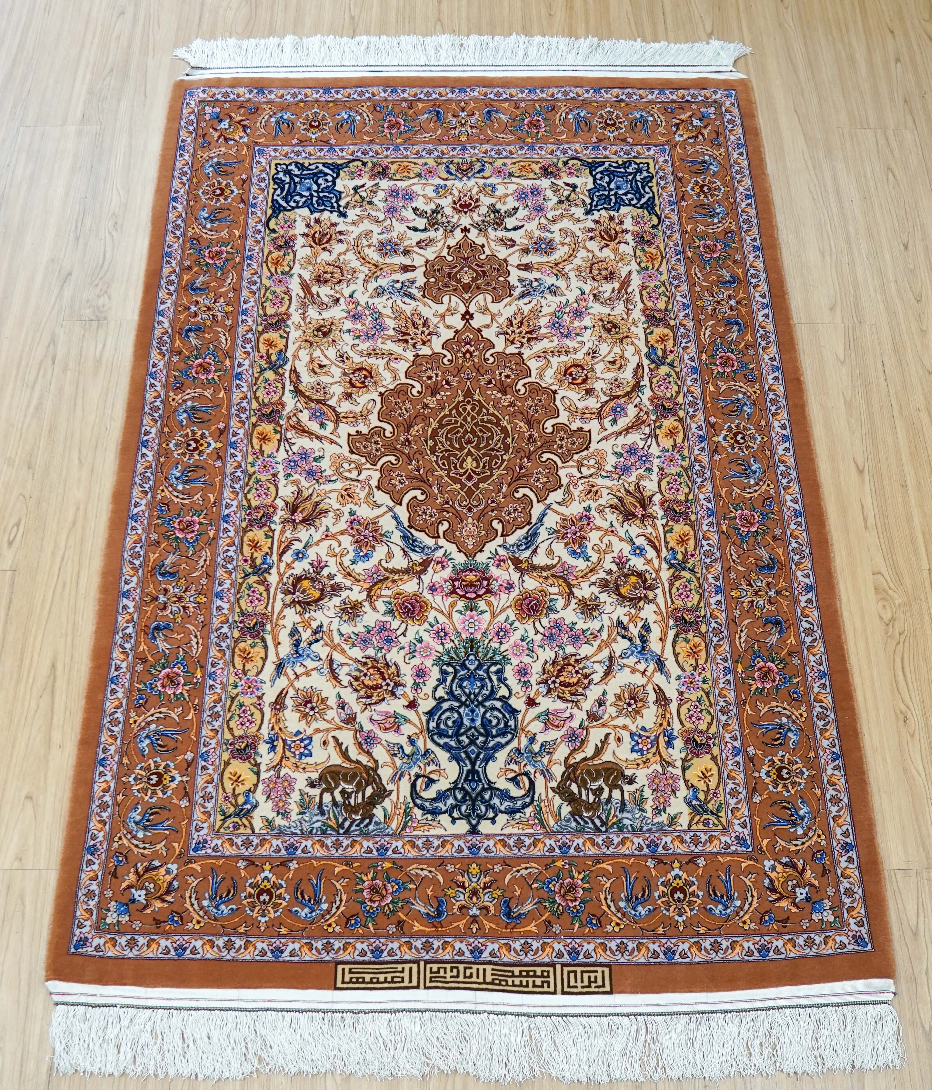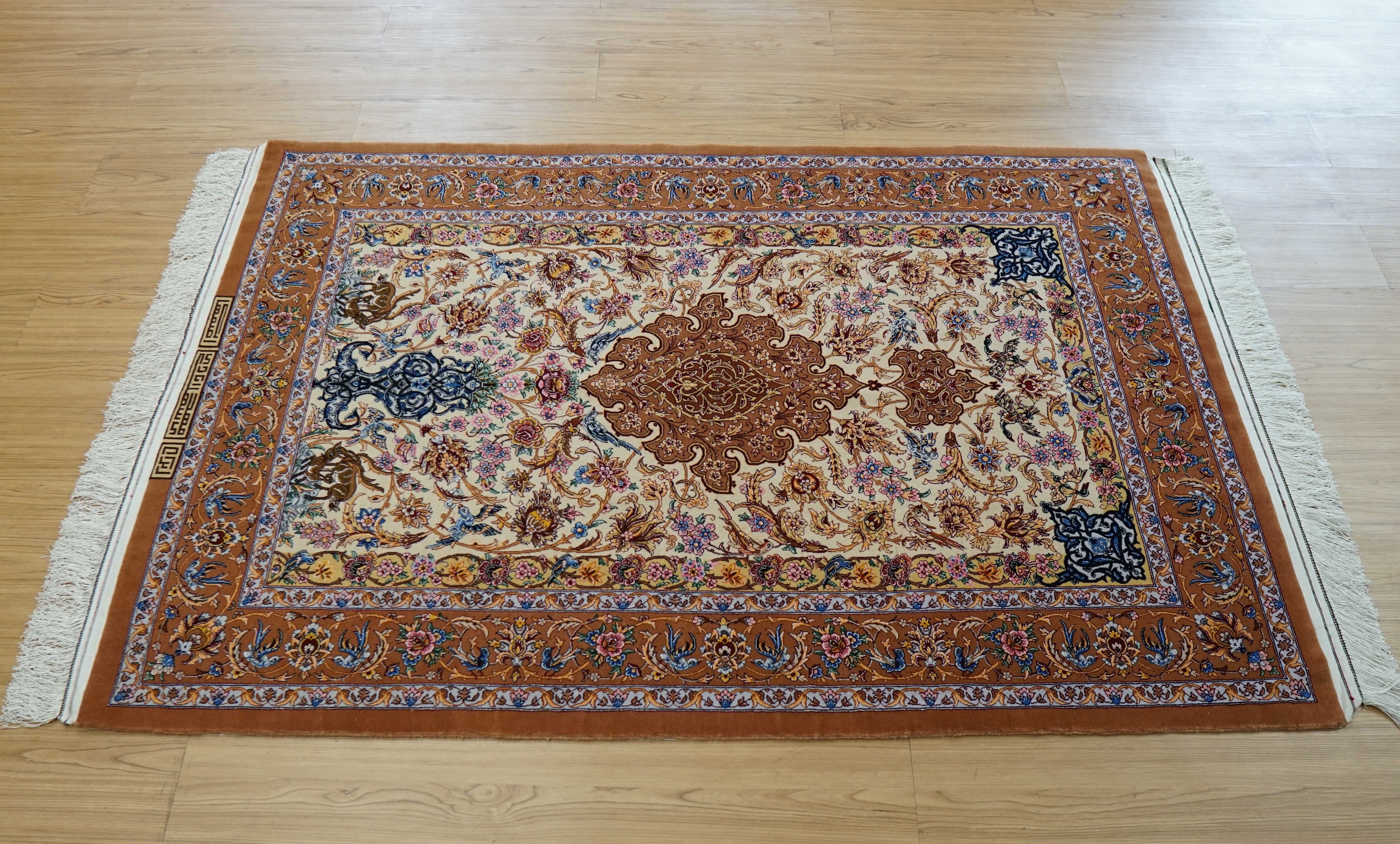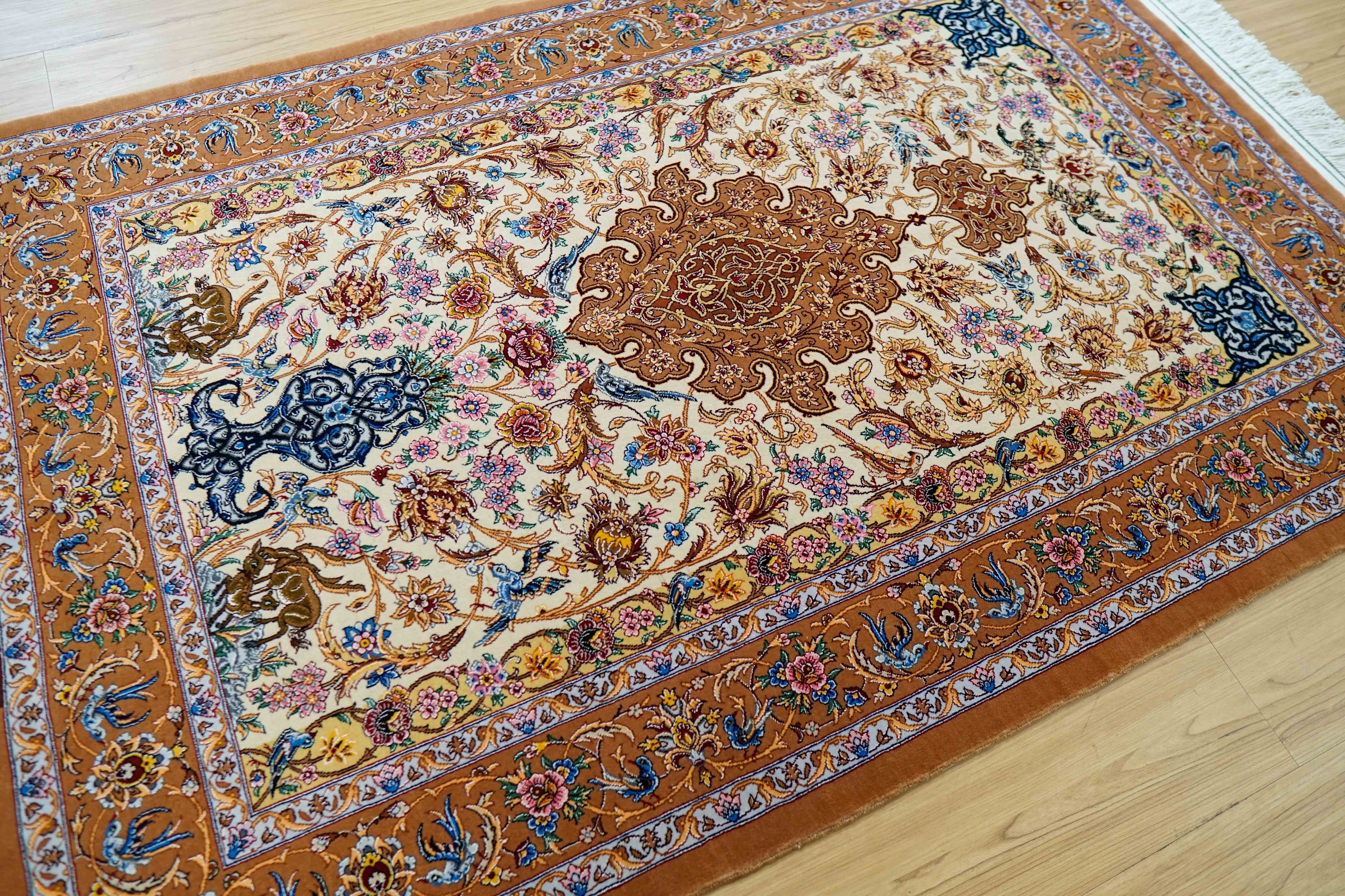 【品名】ペルシャ手織り絨毯 イスファハン産 サハラク房 Fine Quality