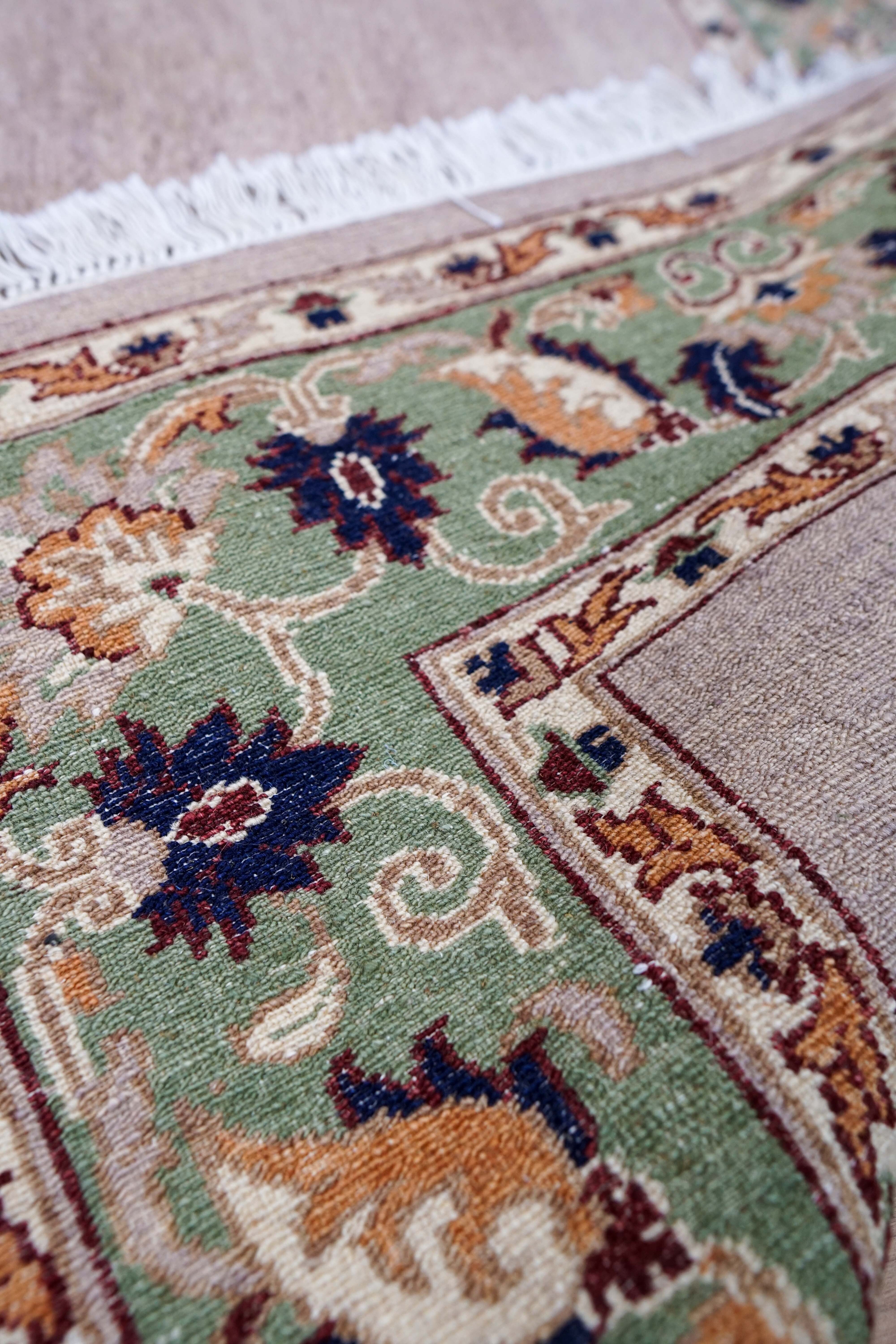アフガニスタン・ガズニ地方で採れる上質なガズニウールを使用し、職人の手によって一枚一枚丁寧に織り上げられた手織り絨毯です。手紡ぎのガズニウールは繊維がしっかりとしており、耐久性に優れ、長く使うほどに風合いが増していくのが特徴です。