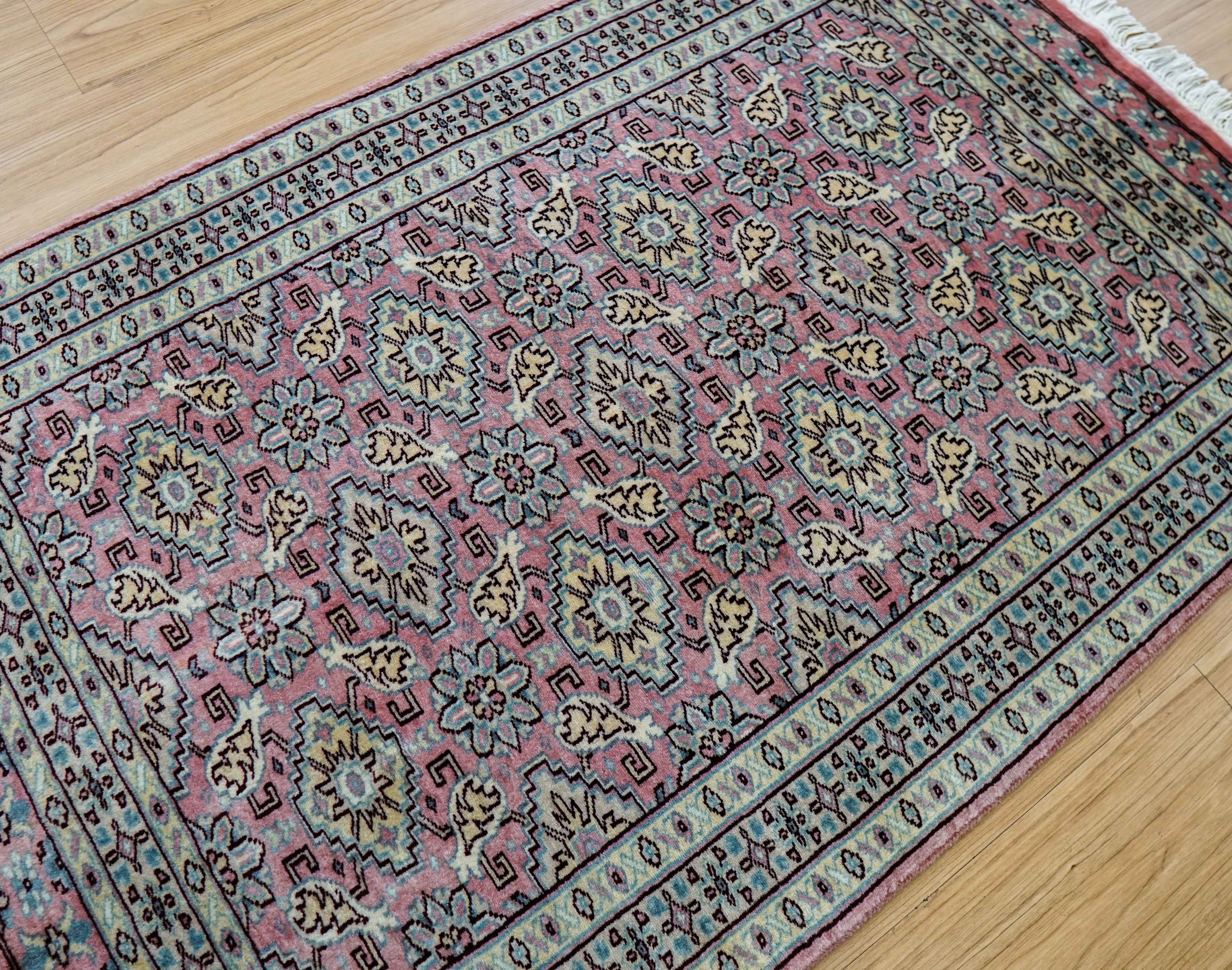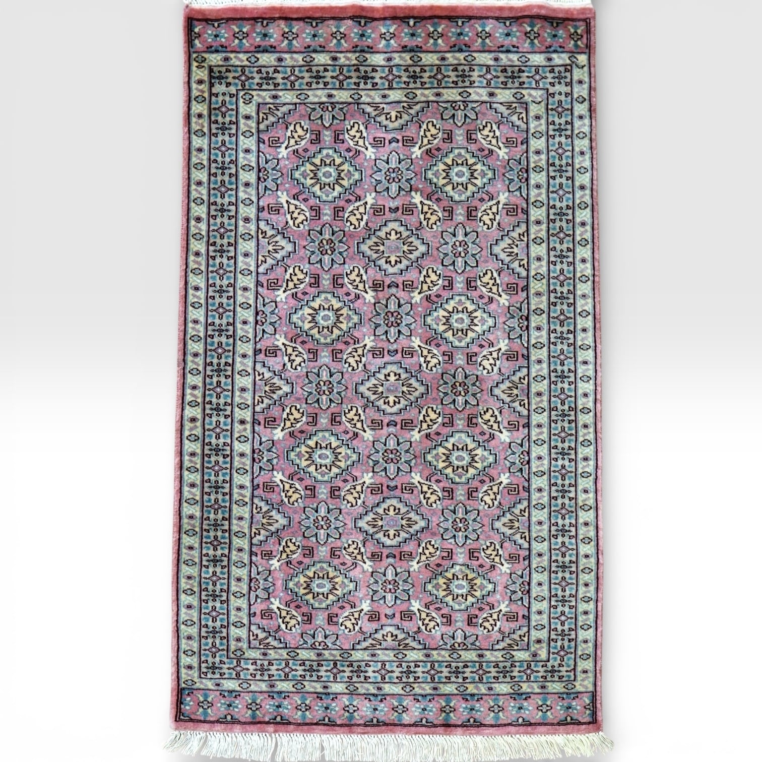 パキスタン手織り絨毯 ピンク繊細な花柄トライバルラグ 122×77cm