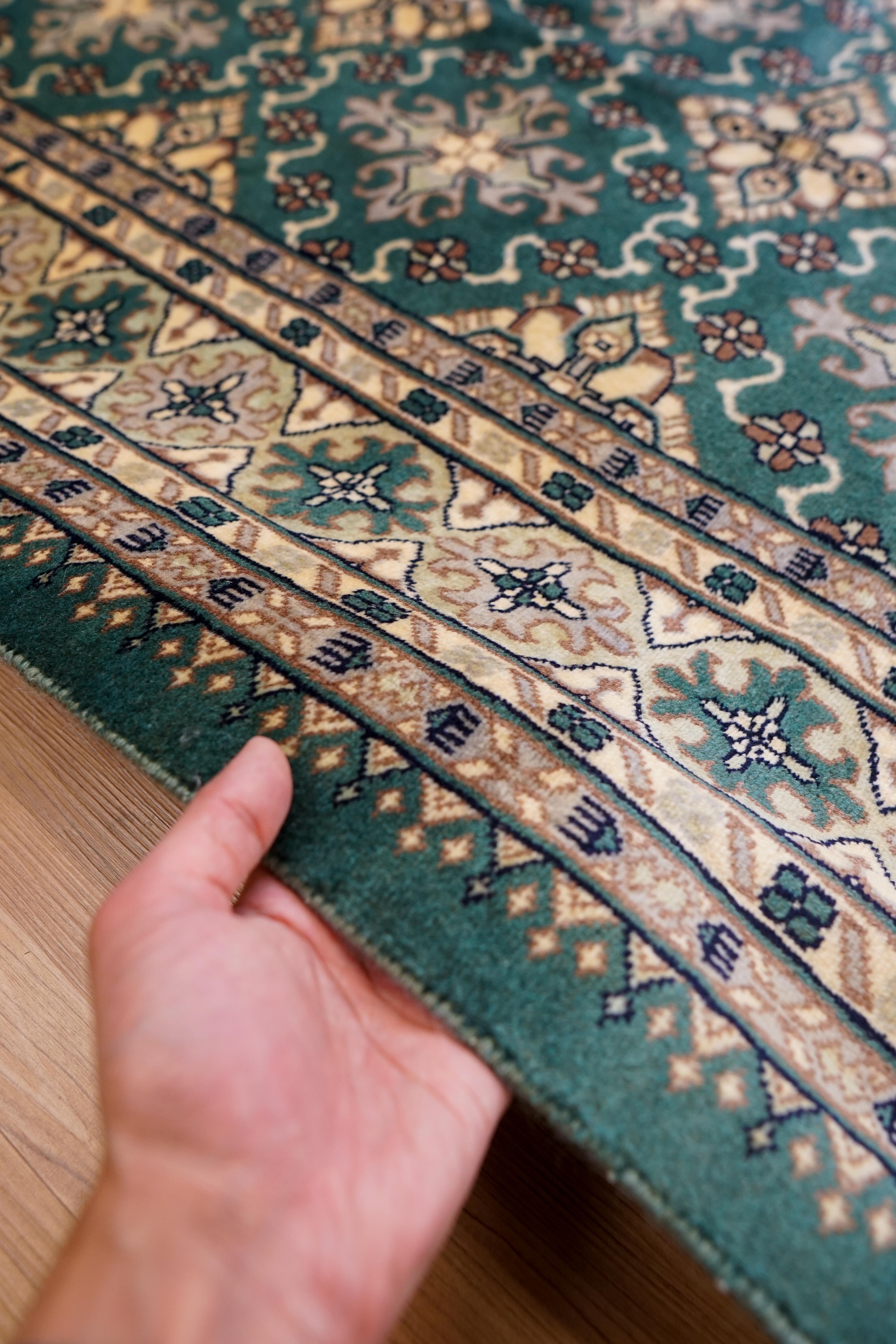 パキスタン手織り絨毯 270×154cm|ニュージーランドウール使用 高密度グリーン