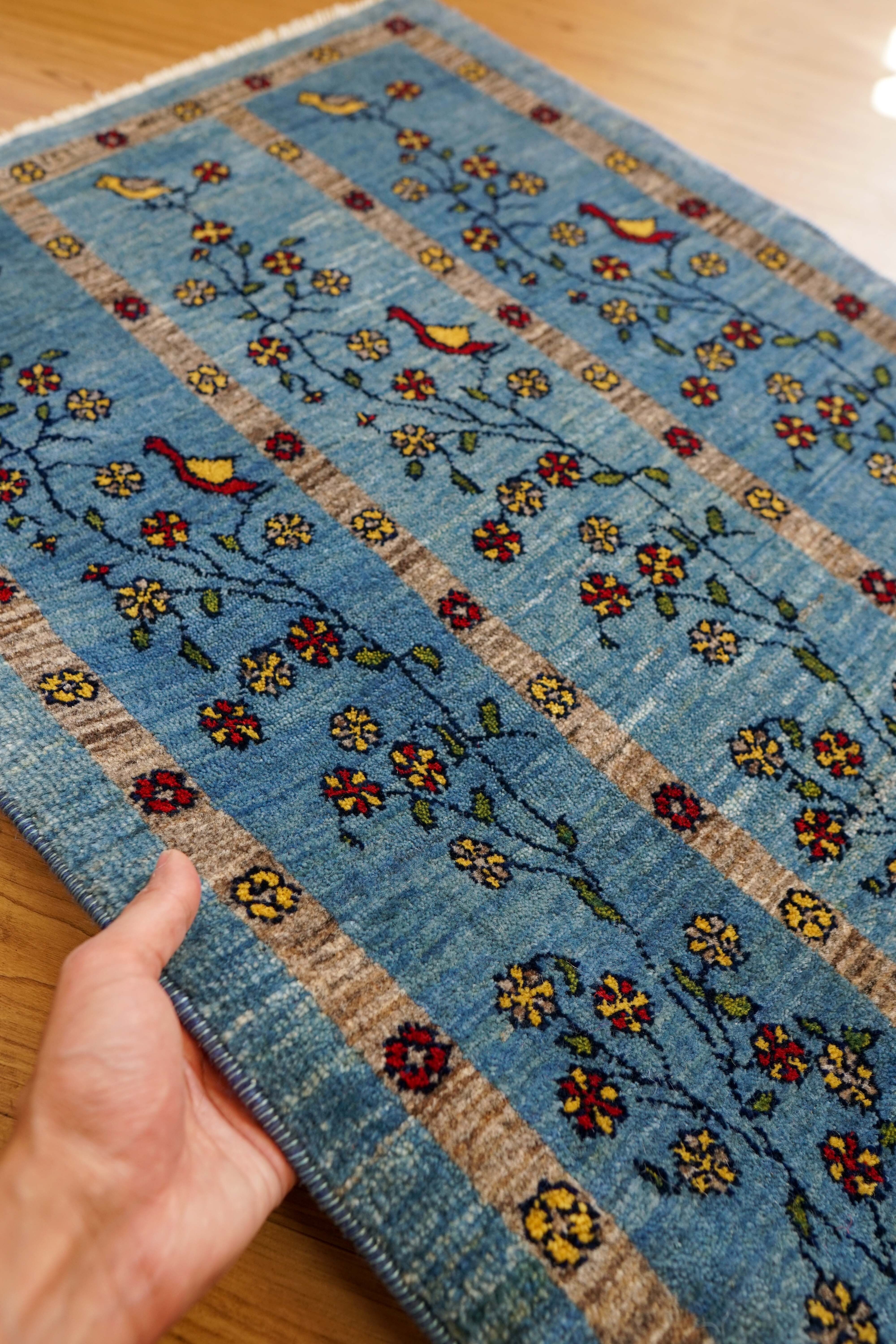 ペルシャ手織り カシュクリギャッベ リズバフト 95×64cm|伝統意匠・鳥と生命の木文様