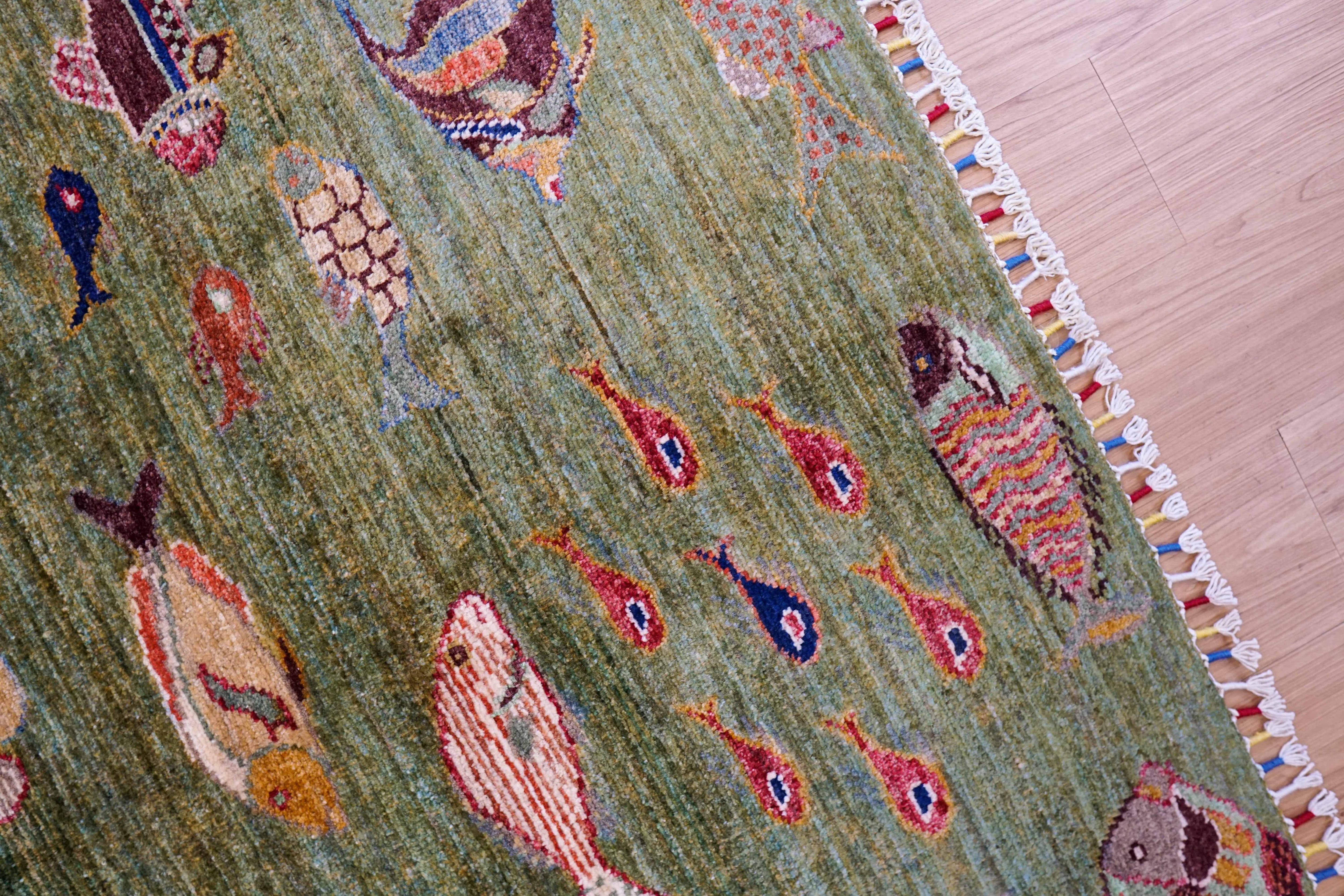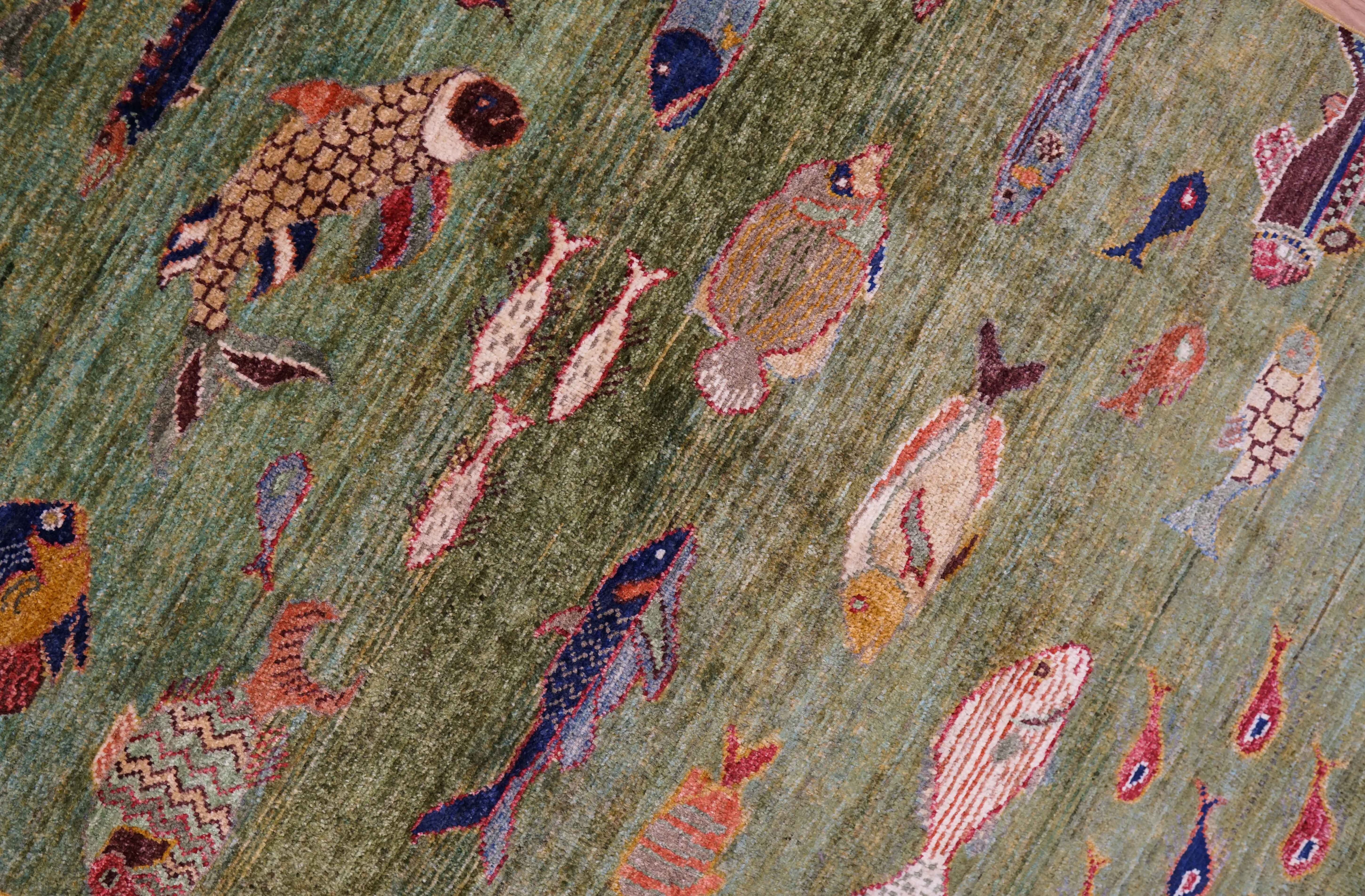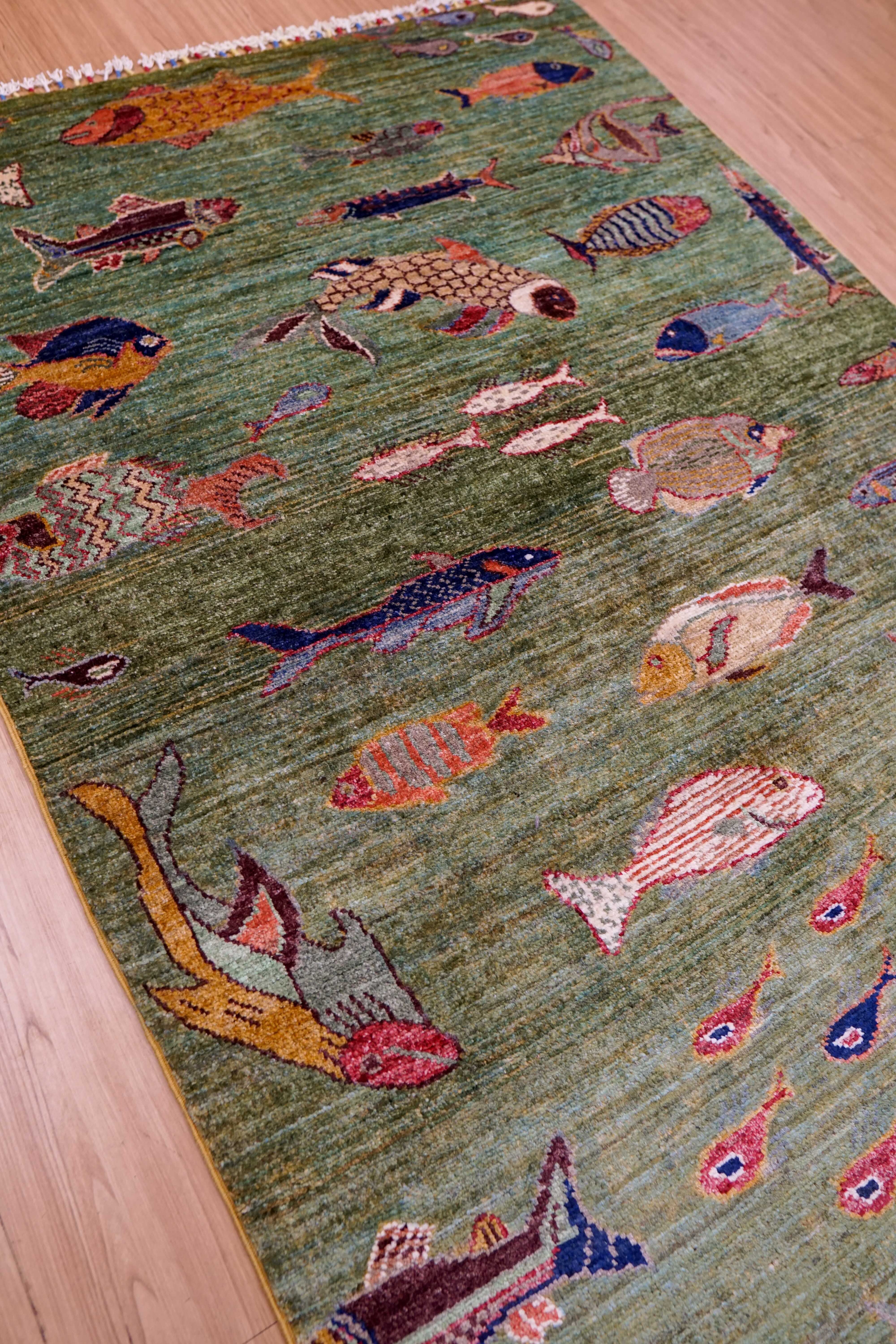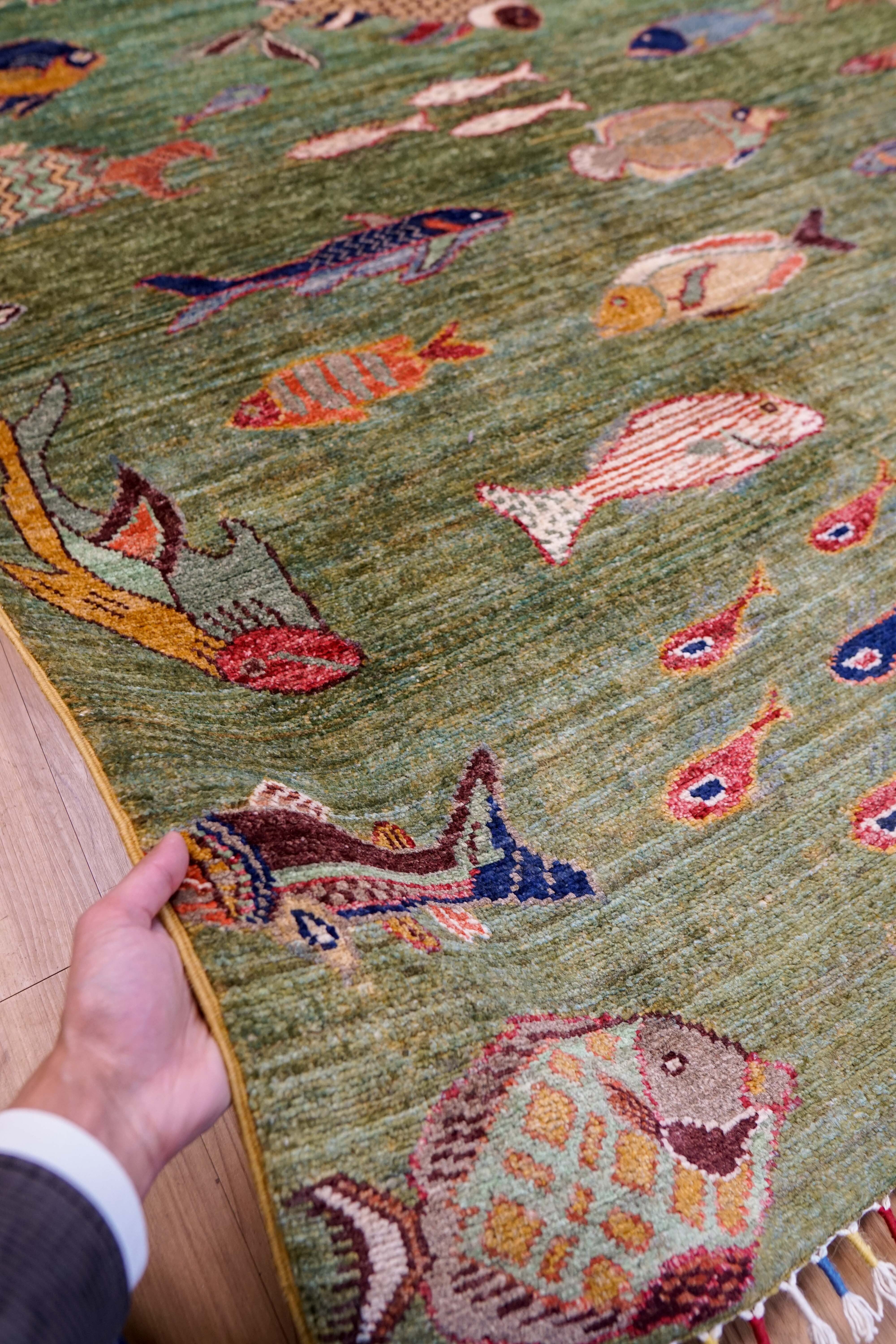 グリーンを基調に、さまざまな魚たちが自由に泳ぐデザイン。