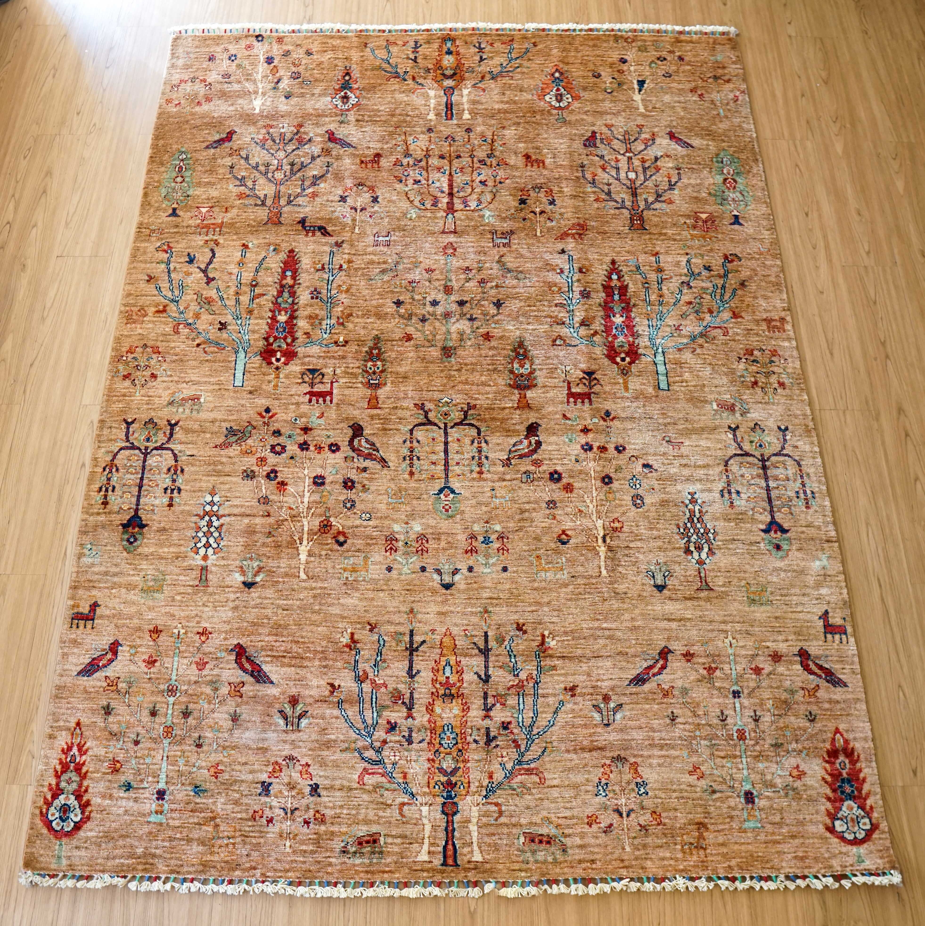 アフガニスタン手織り絨毯 ガズニ ギャッベ 243×177cm|手紡ぎウール・草木染め 大判リビングサイズ