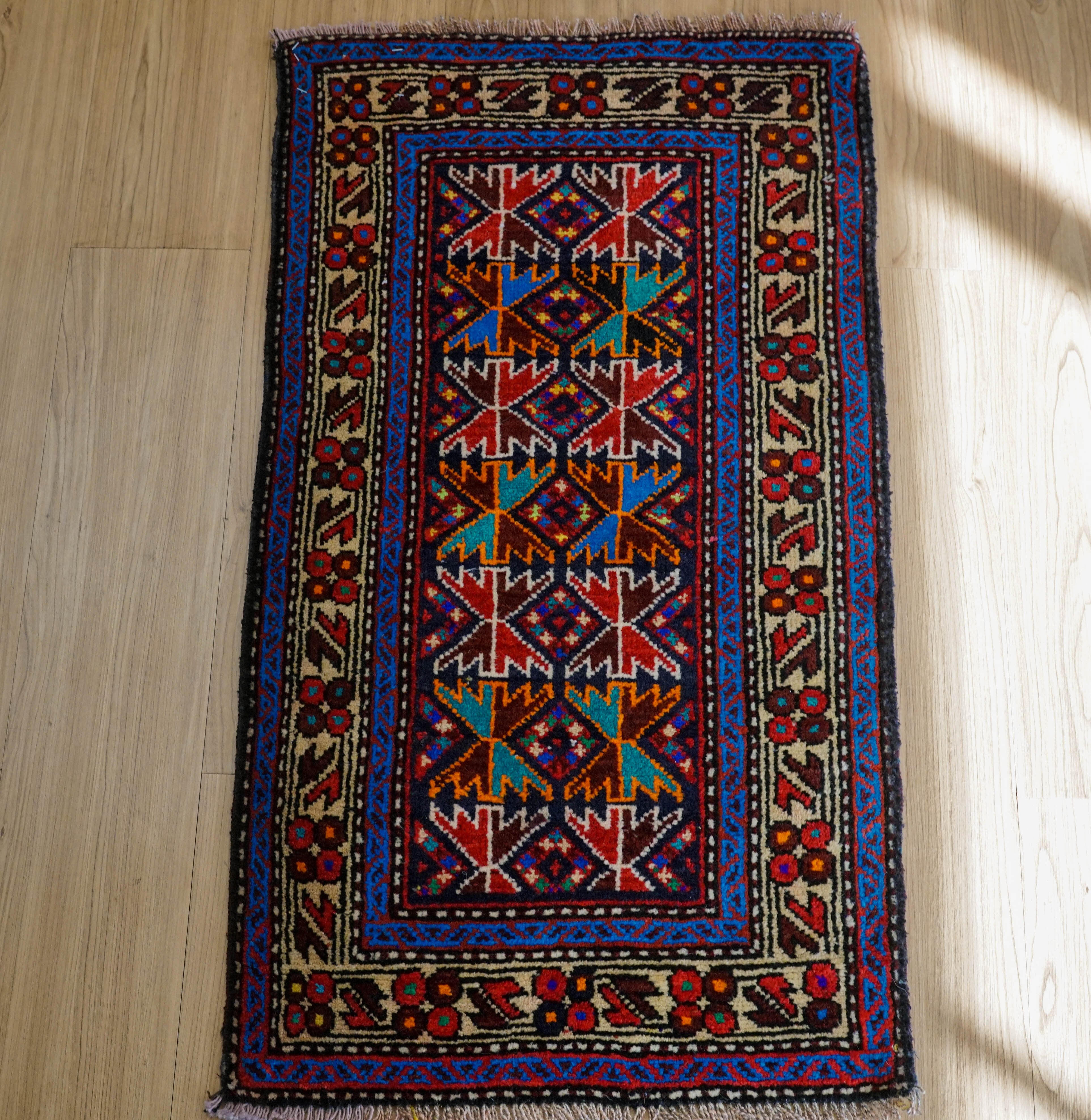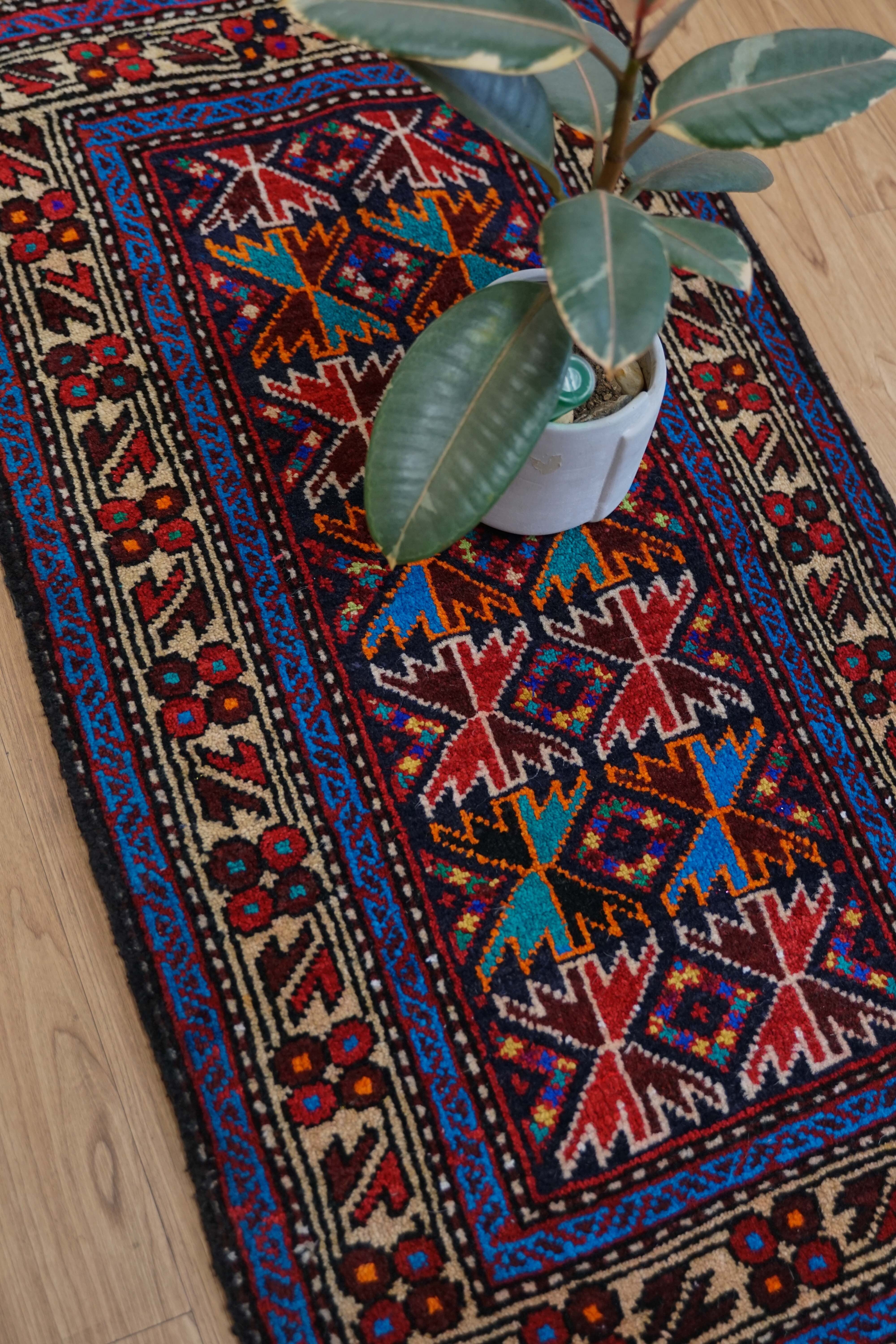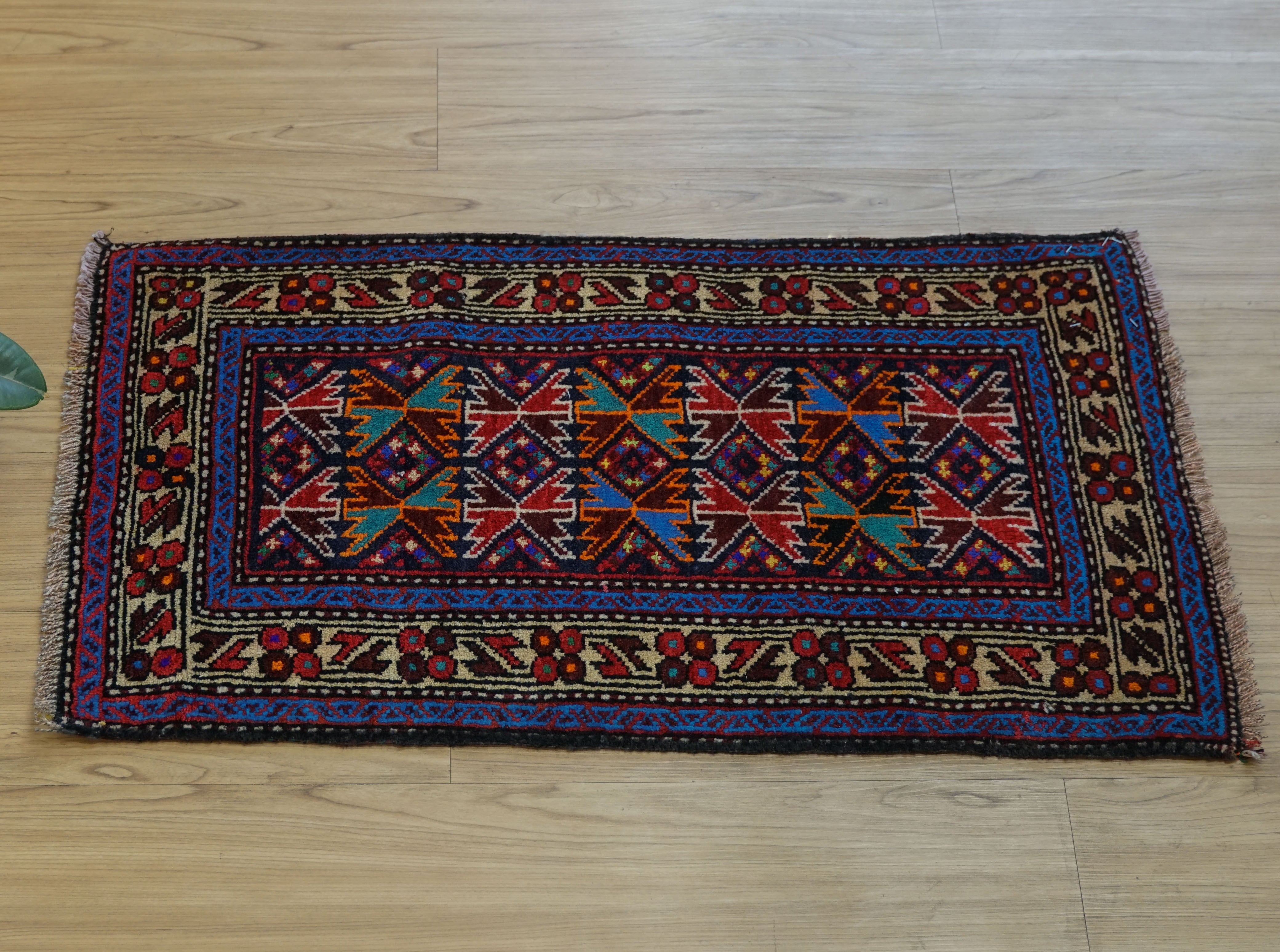 トライバルラグ 手織り ペルシャ バルーチ絨毯 92x51cm