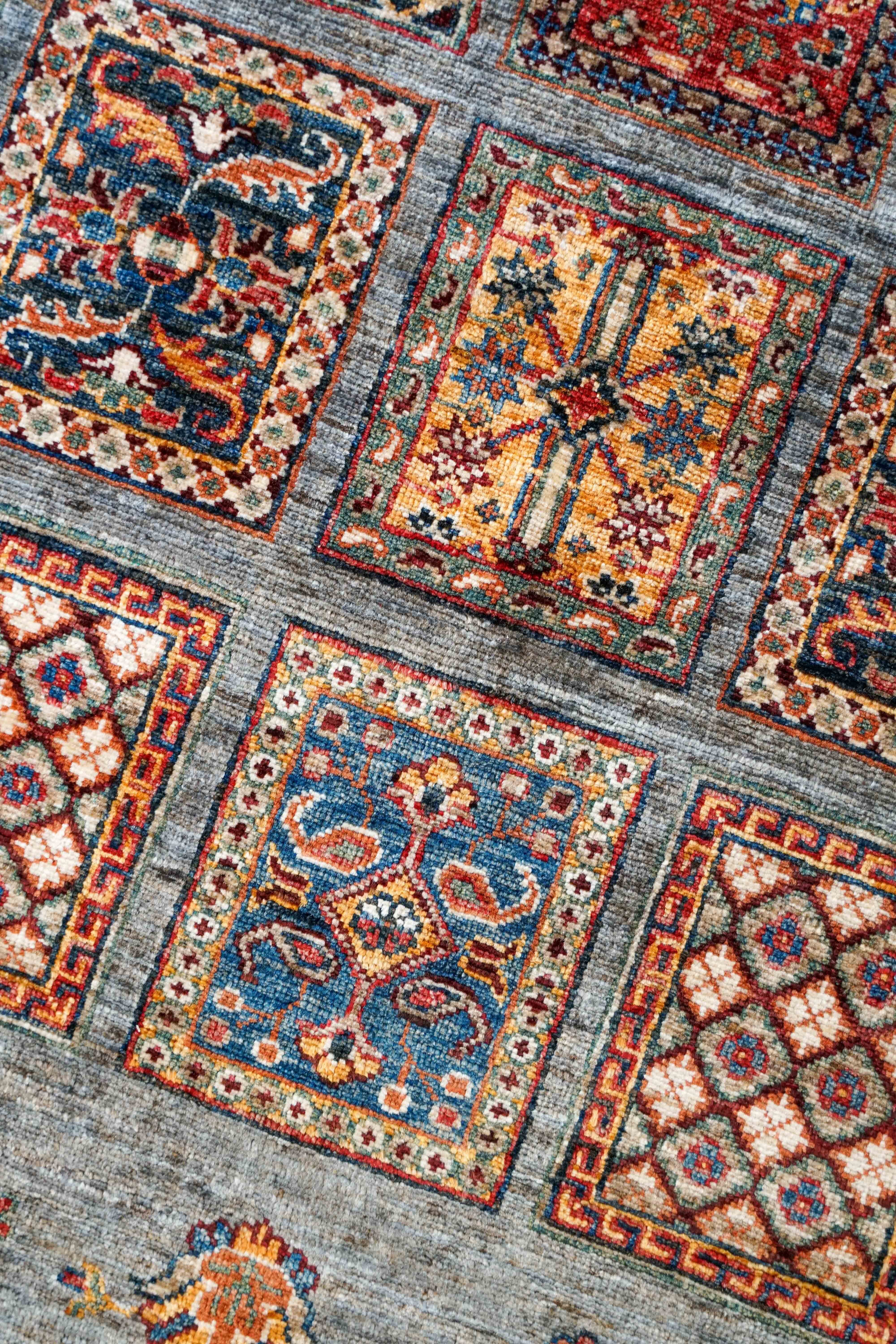 アフガン手織り絨毯 ガズニ 産 ヘシュティ文様 218×152cm|草木染め・手紡ぎウール ラグ
