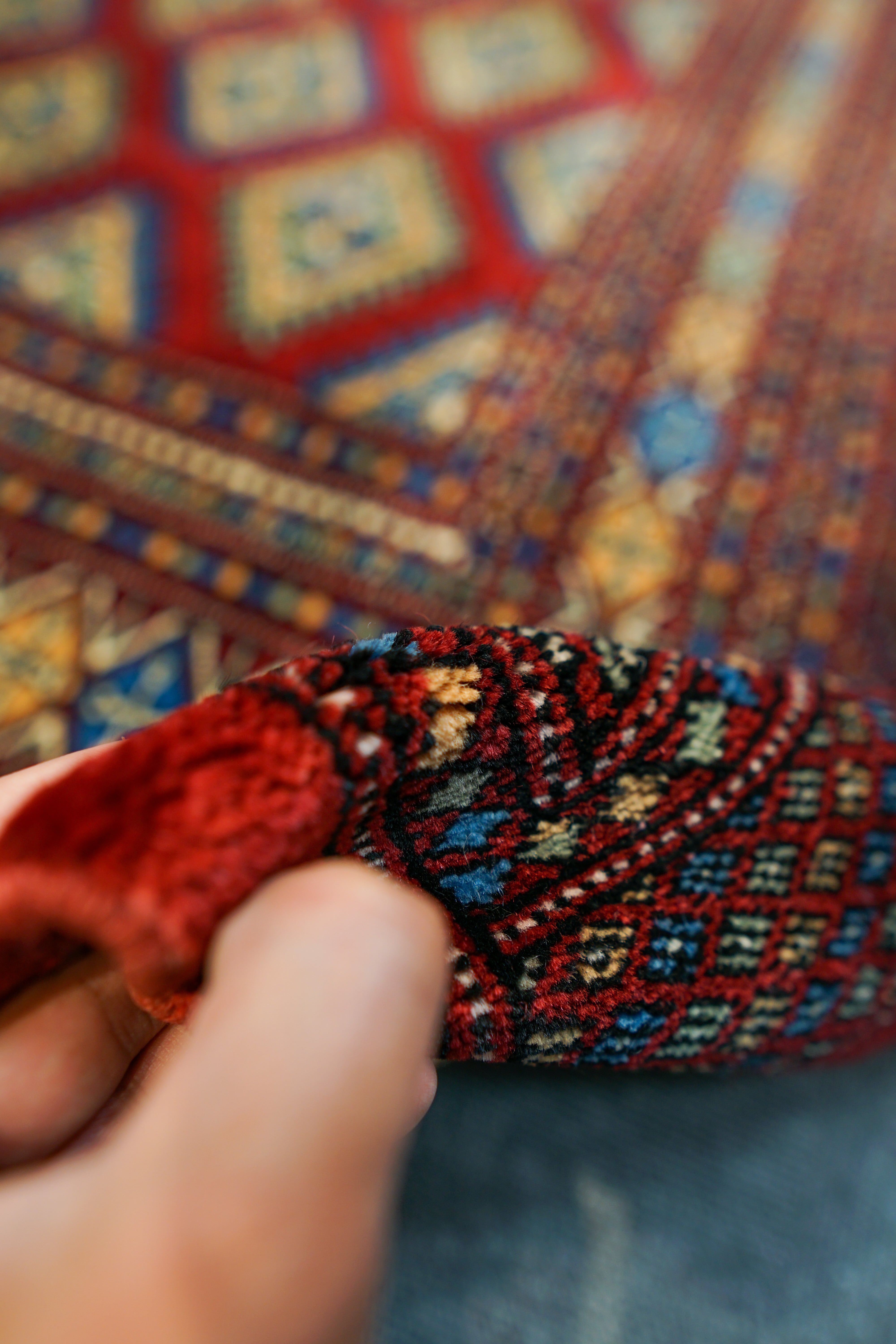 なめらかなツヤがあり、見る方向によって色味がわかりやすく変化して見えるので、存分に手織り絨毯ならではの良さが味わえます。