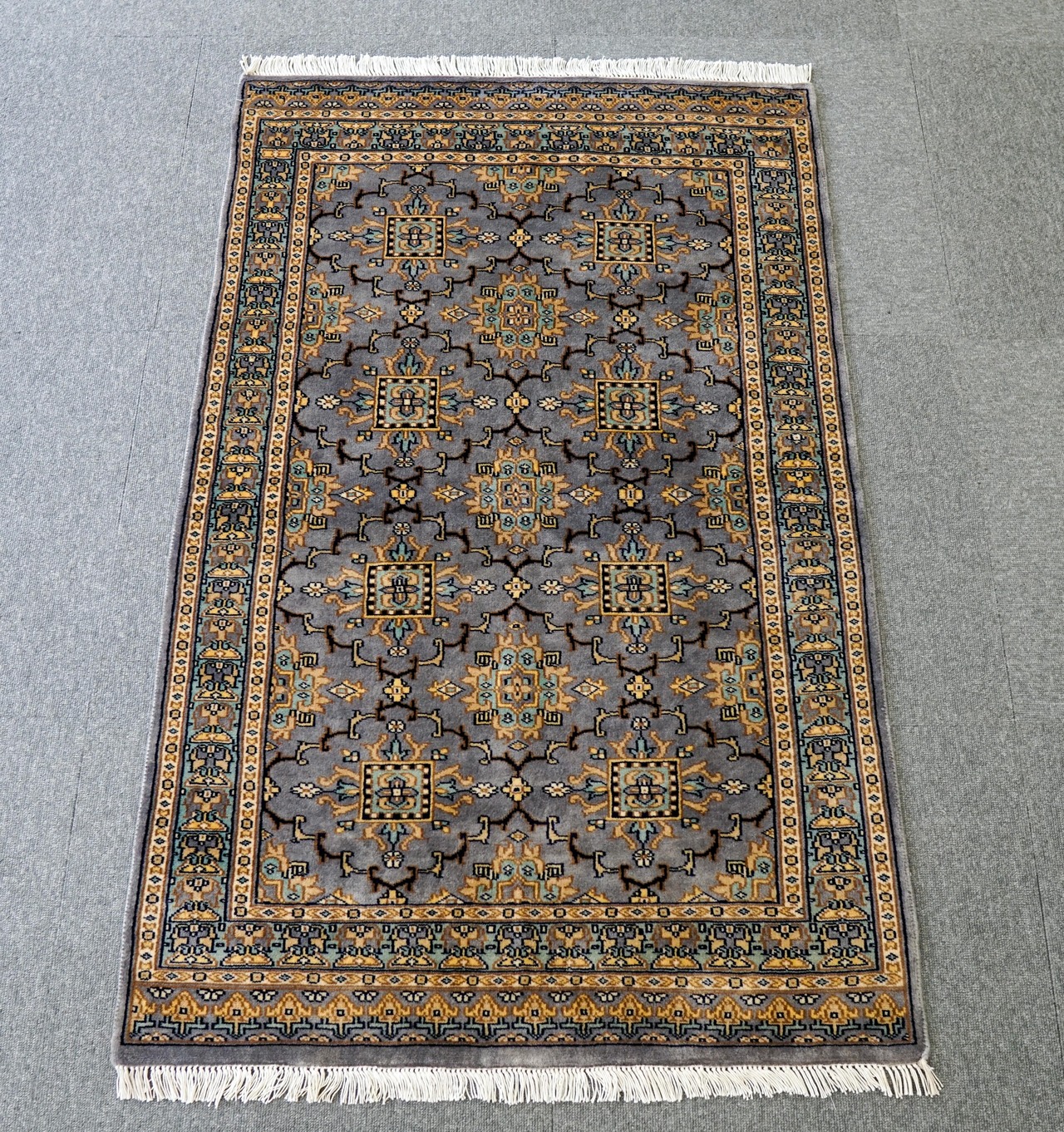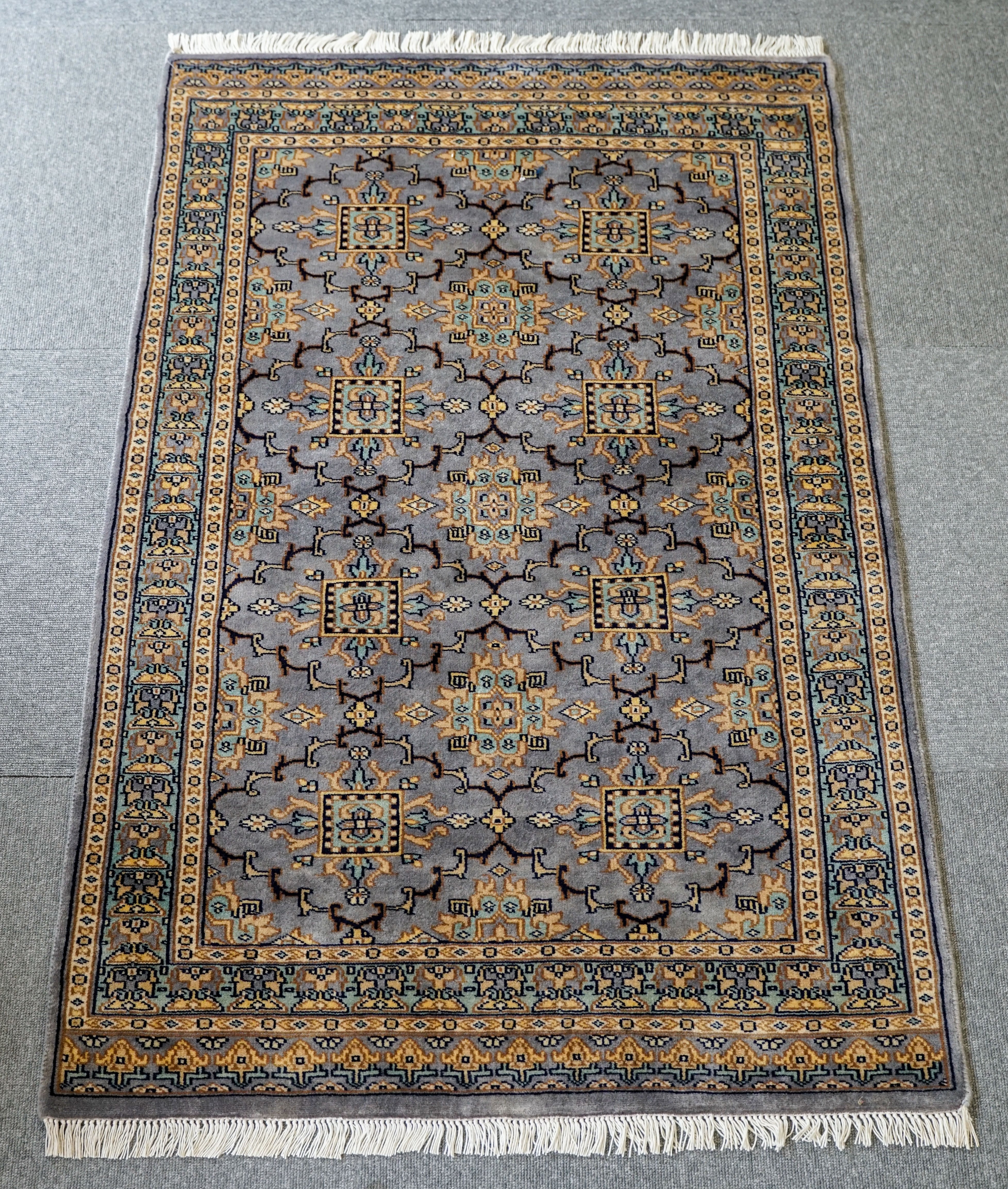 ニュージーランド産の上質なウールを使用し、信頼できる熟練した職人が手織りしたパキスタン絨毯です。ハリ、艶に富み、肌触りはなめらかで柔らかく、弾力のあるパイル地が底冷えを防ぎ足元を快適にします。