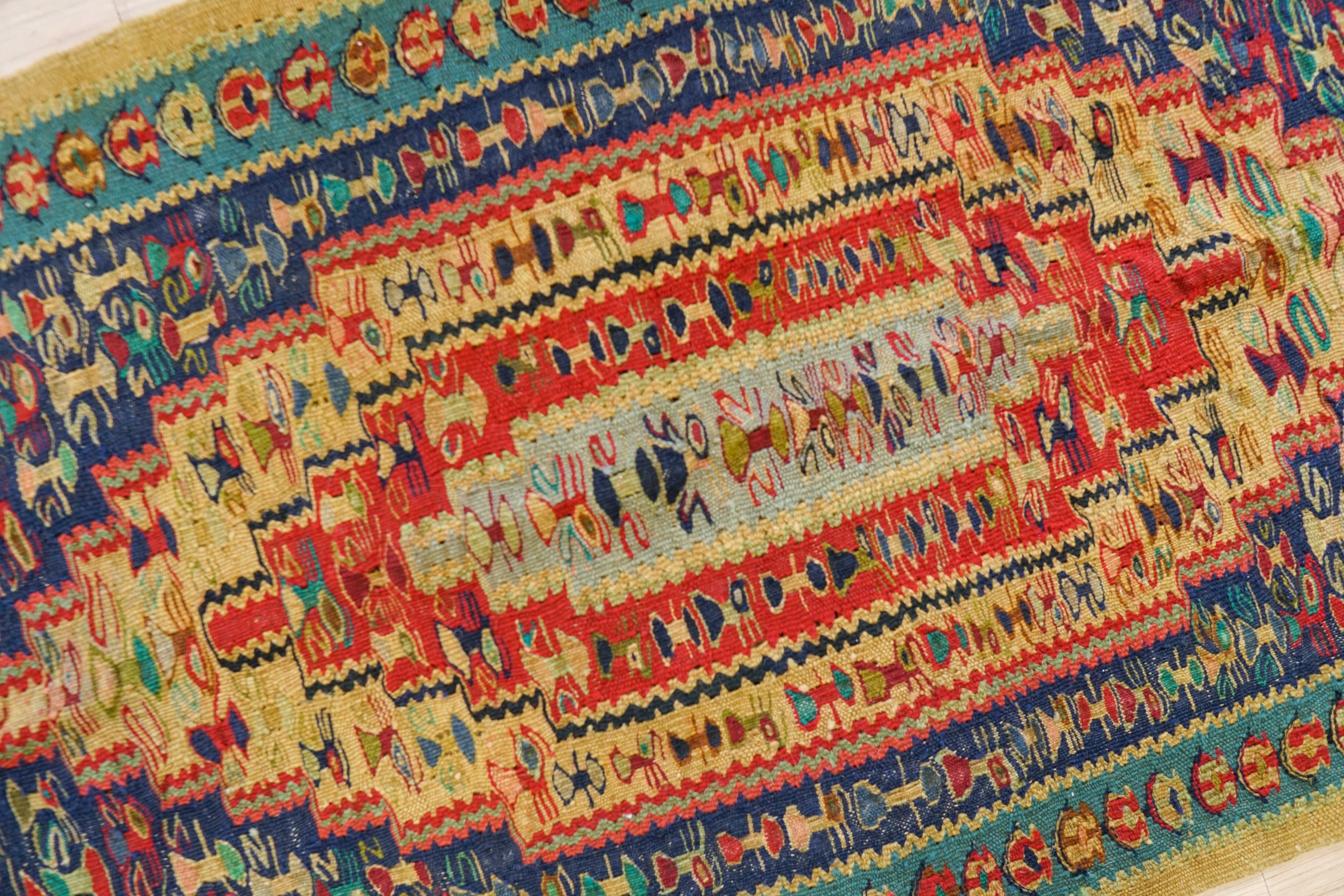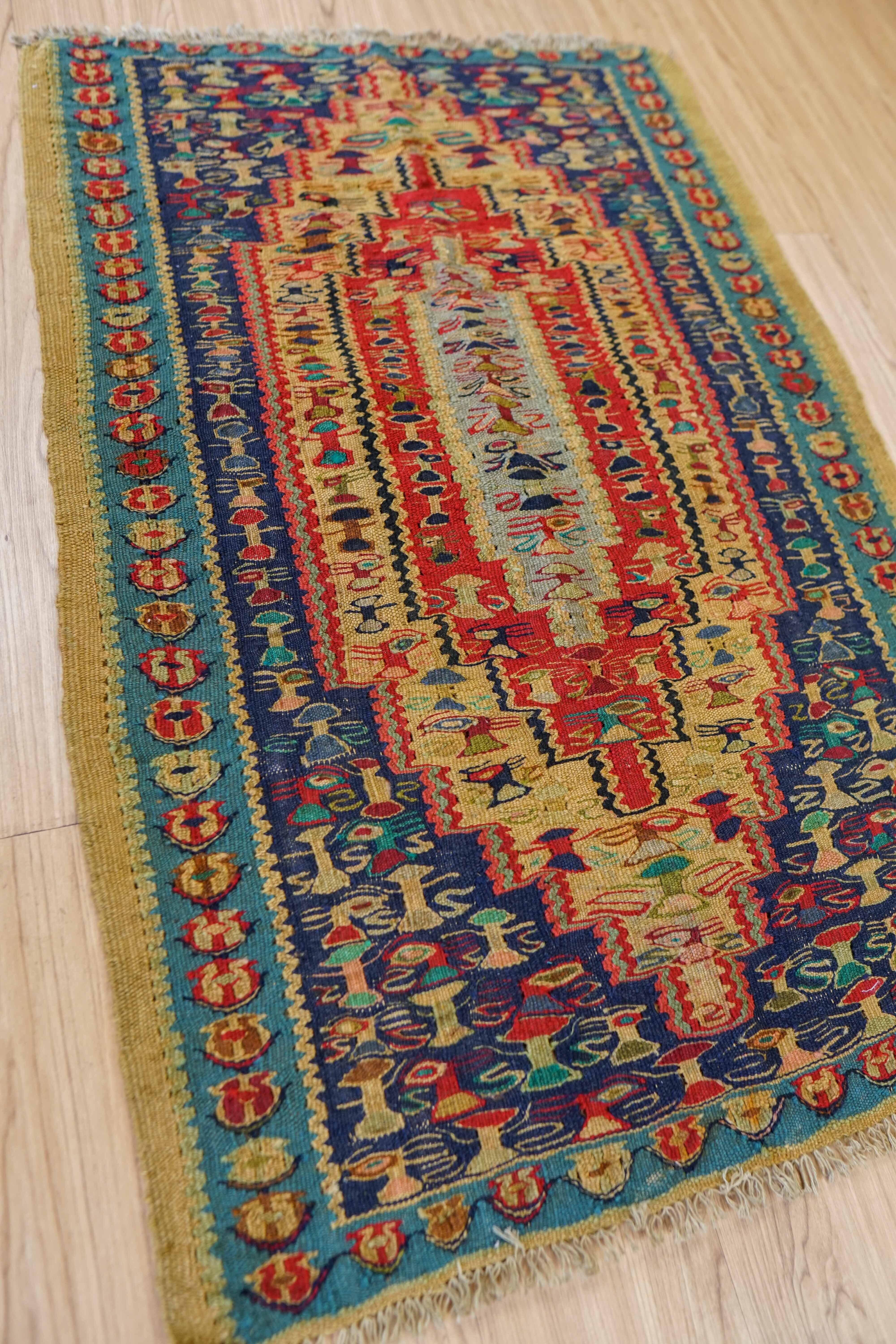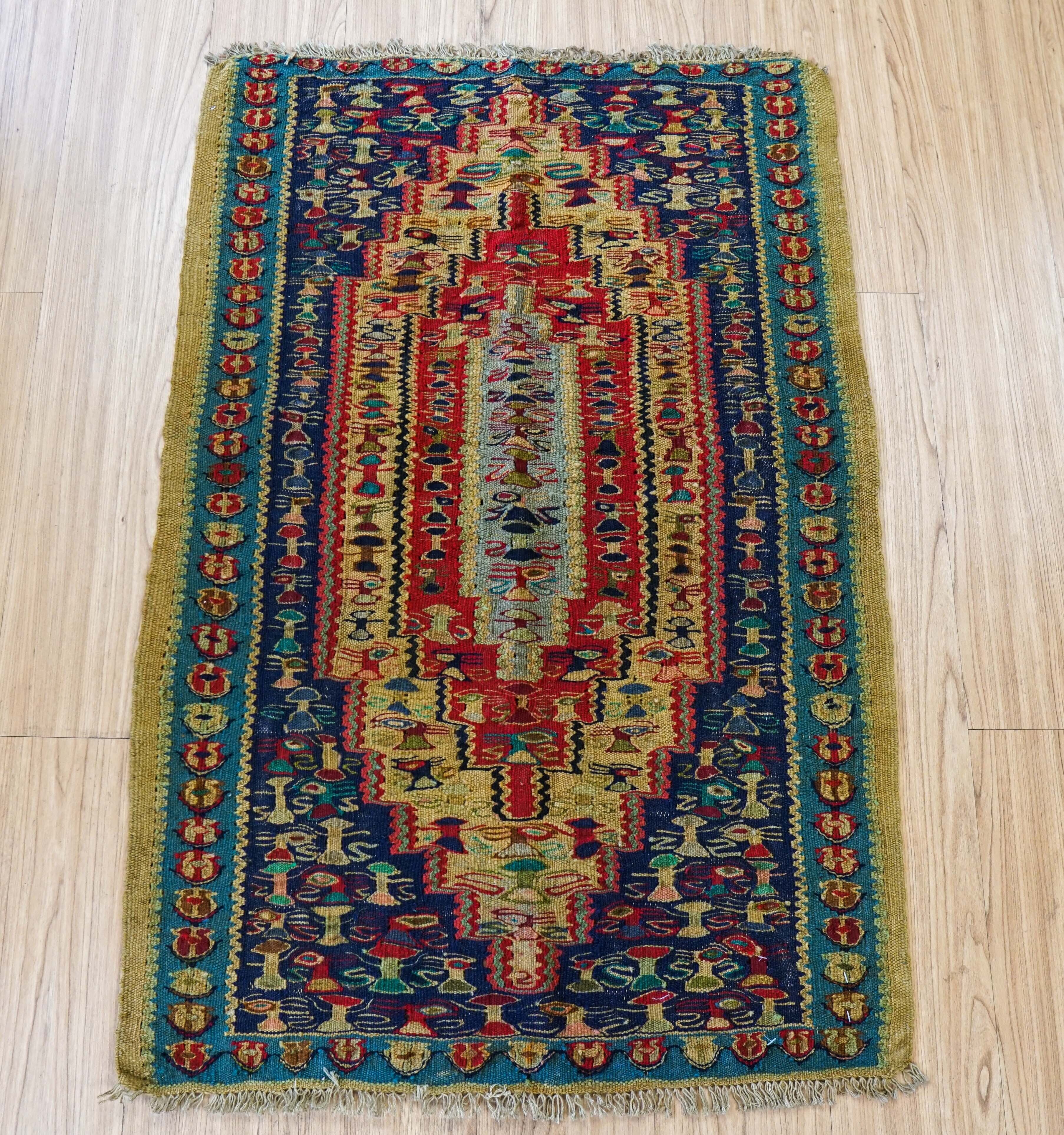 1960‐1970代にペルシャ クルディスターン地方のセネ(サナンダジ)という街のオールドキリムです。世界で一番大きな、国をもたない民族と呼ばれるクルド族が手織りしています。