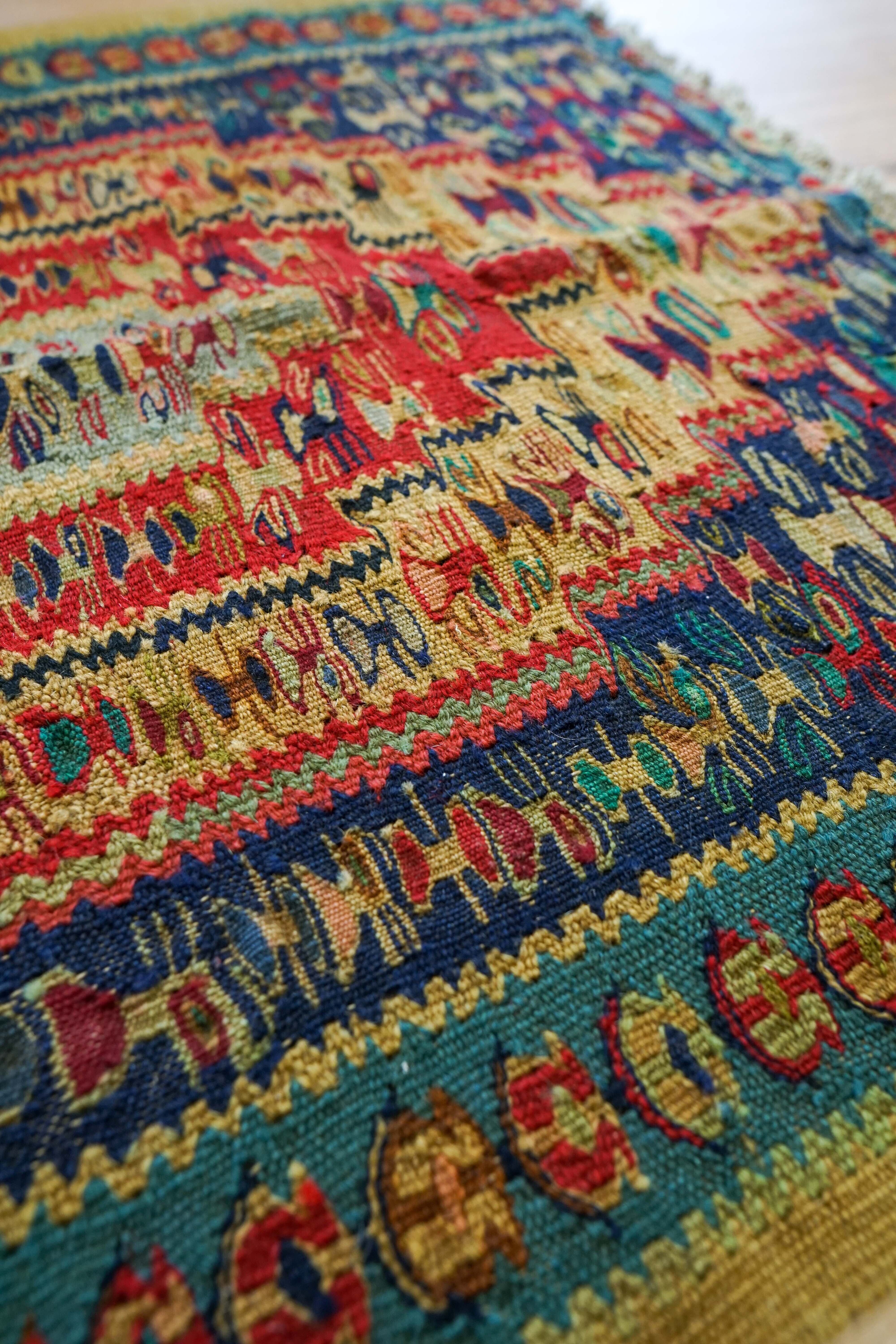 サナンダジは織りが細かく、キリムの中でも厚みがないため、ソファなどの家具にかけてもお部屋のアクセントになります。
