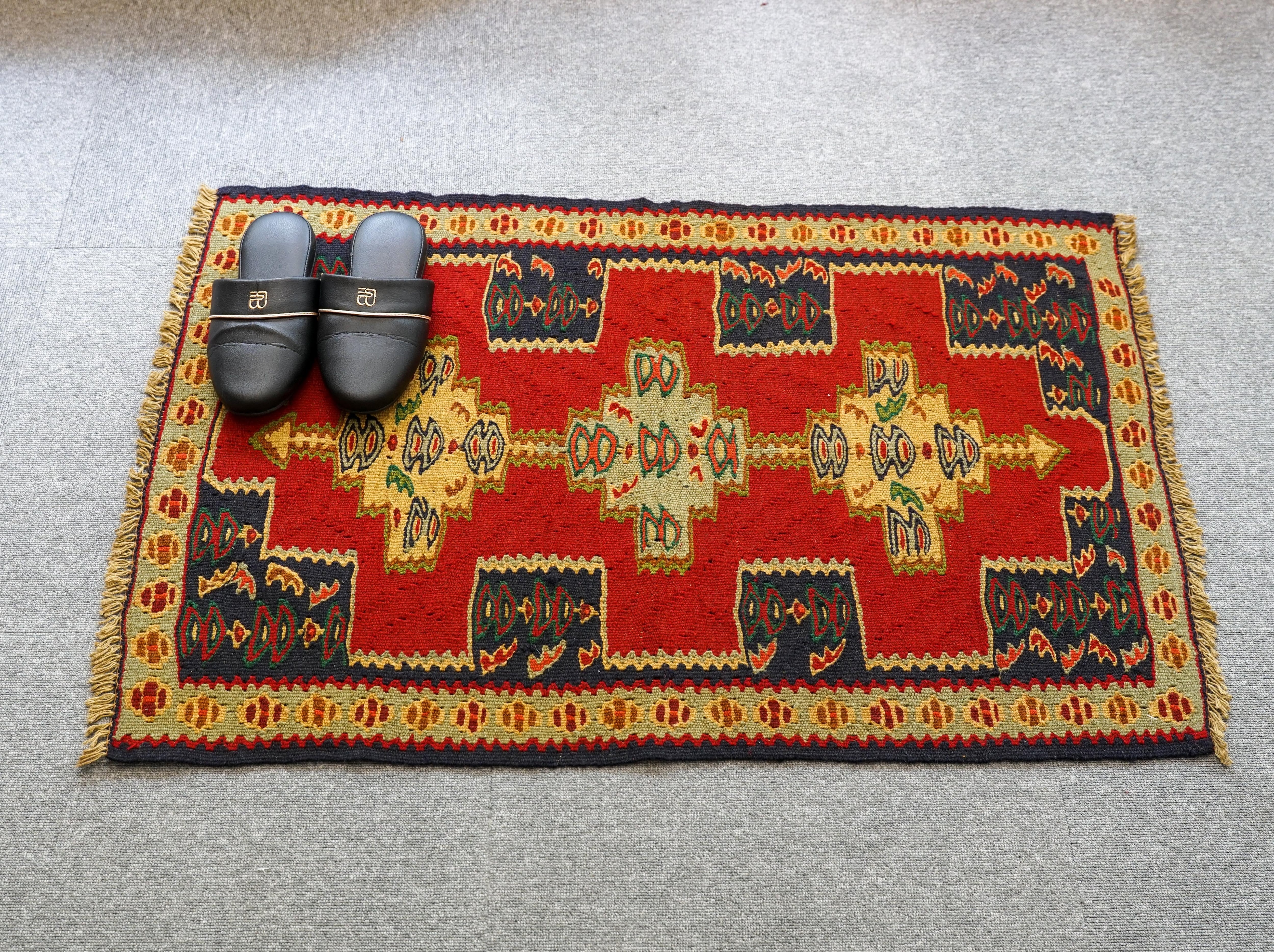 キリムとは、トルコ、イラン、アフガニスタンを主な産地とする平織りの絨毯。毛足がなく薄手で、通気性に優れており、肌触りはさらっとしています。