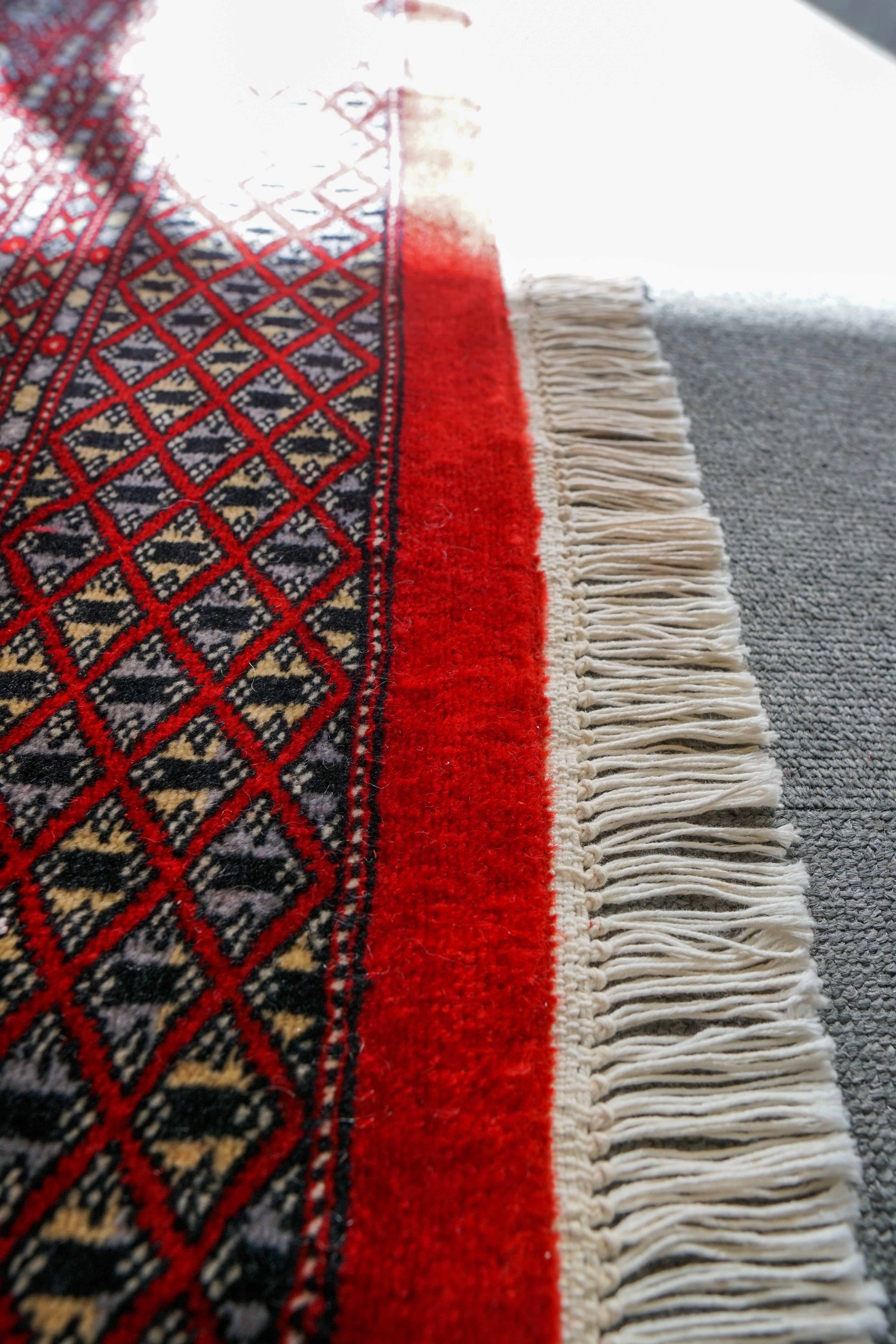 ラグジュアリーなレザーのソファにも、素朴なウッドチェアにもぴったり合います。赤ベースの絨毯は勇気がいる、とのお声もいただきますが、案外お部屋や家具を選ばず、どんな空間にも不思議としっくりくる魅力があります。
