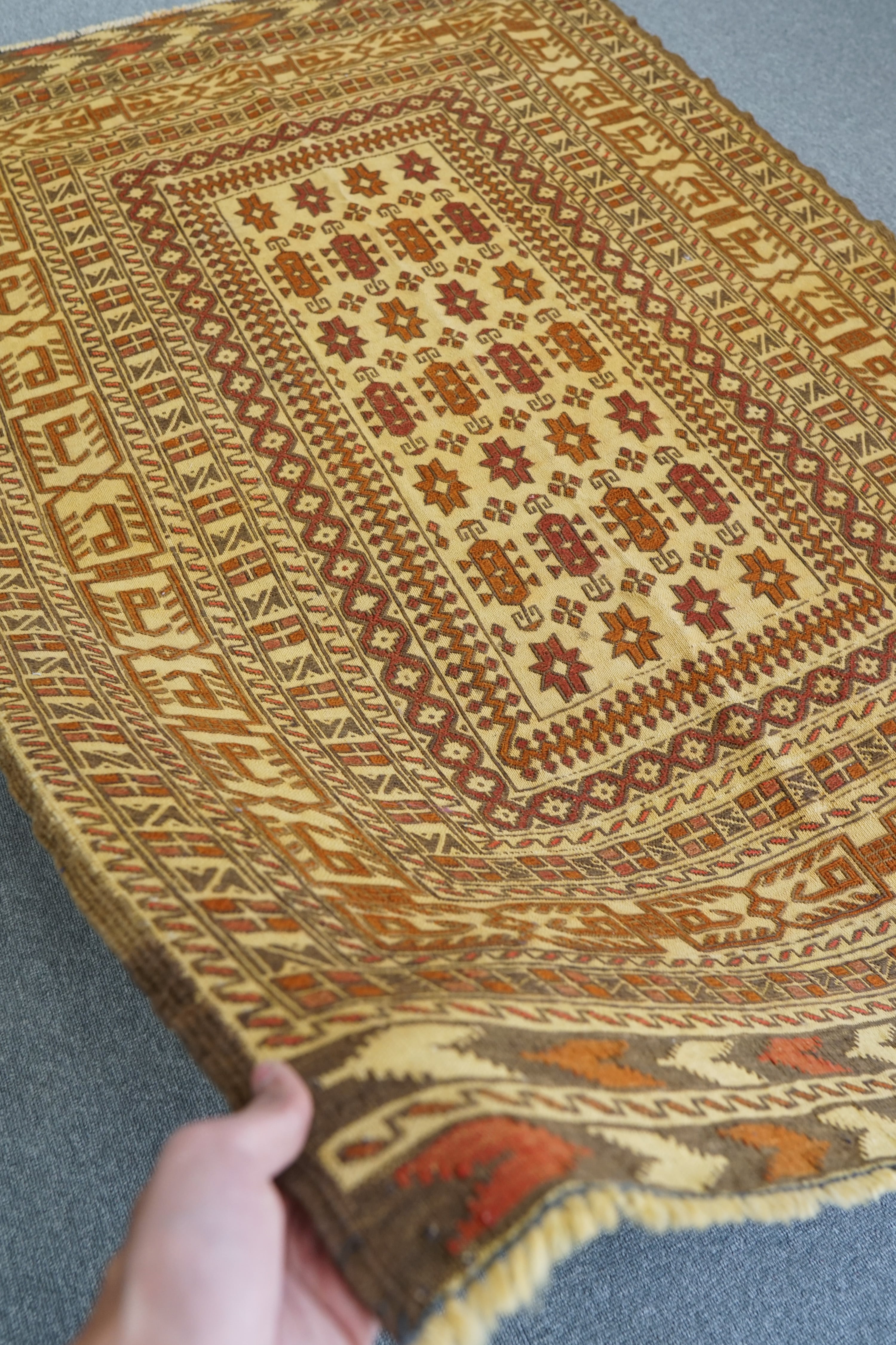 イランの遊牧民が一つ一つ祈りを込めて織り込んだデザインは、機械織りにはない価値があります。安定した豊かな生活と、災いからその幸せを守る意味を込めた縁起のいい柄の絨毯です。