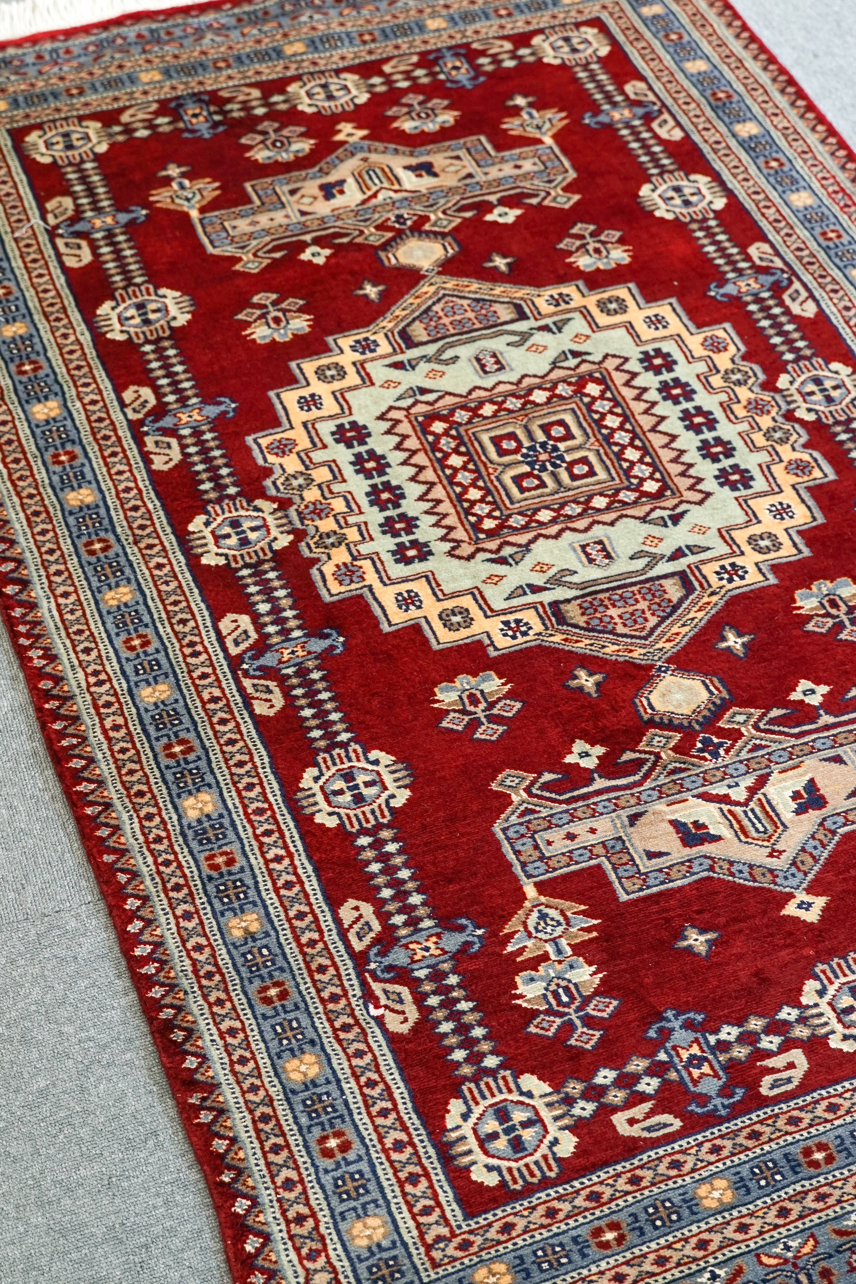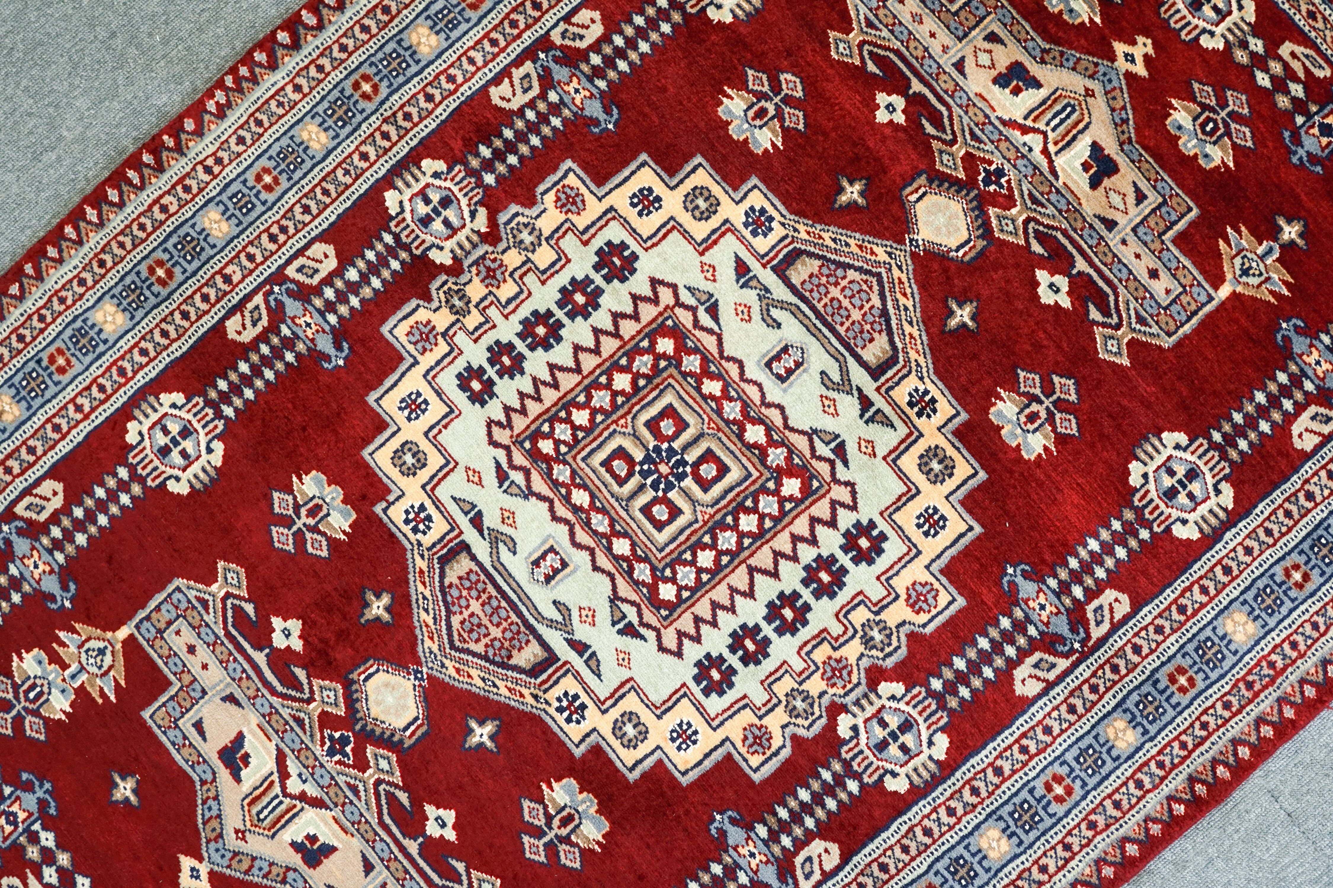 上質なウールに草木染めを施し、熟練した職人が手織りしたパキスタン絨毯です。しなやかで扱いやすく、弾力のある柔らかいパイル地が底冷えを防ぎ足元を快適にします。