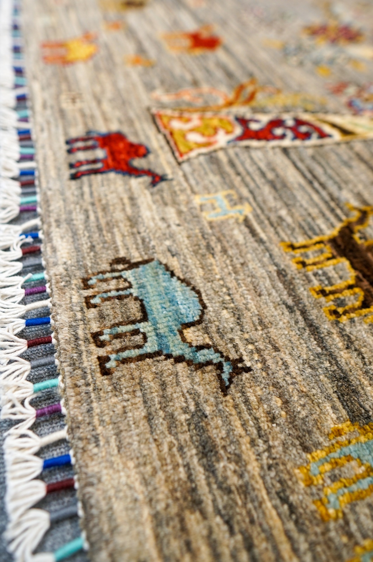 中東の風情を感じる鮮やかなカラーコンビネーションと、トライバルなデザインやカラフルなフリンジ(フサ部分)が特徴的なギャッベ。