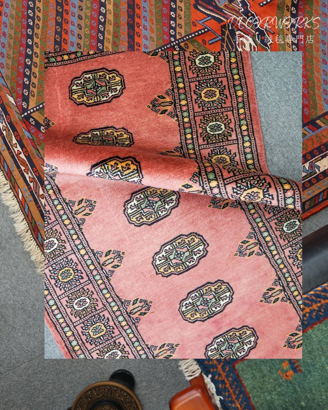 パキスタン絨毯で人気の『Bokhara(ボハラ)』柄を合わせたデザイン。ボハラとは、象の足跡をモチーフにした柄で、トルクメニスタンの国旗にも使用されている伝統的で由緒ある柄です。お部屋を上品で落ち着いた印象にグレードアップします。