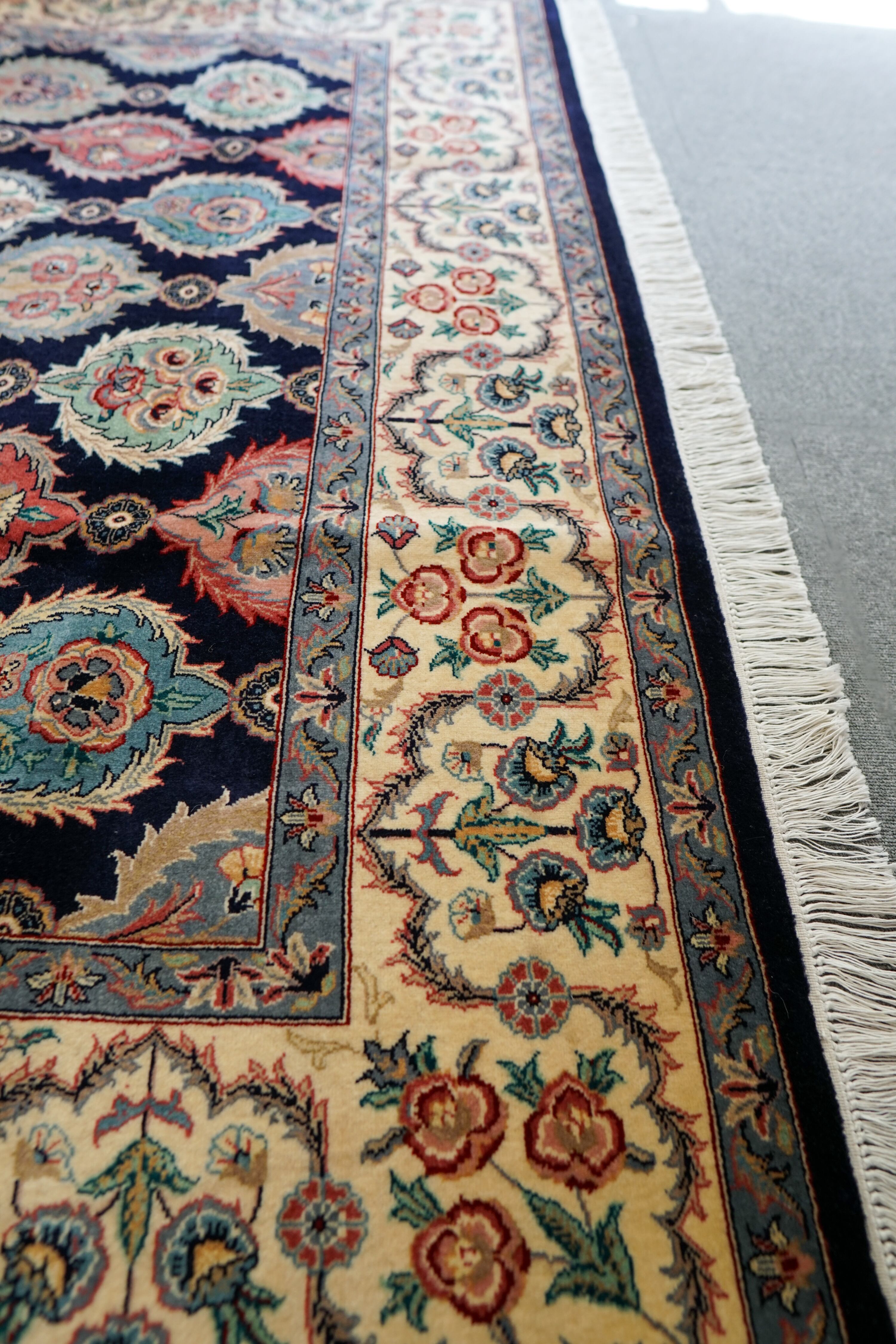 通常の2倍のウールを用いてより丈夫につくられたダブルノット絨毯。細かな部分までより鮮明に織り込まれています。
