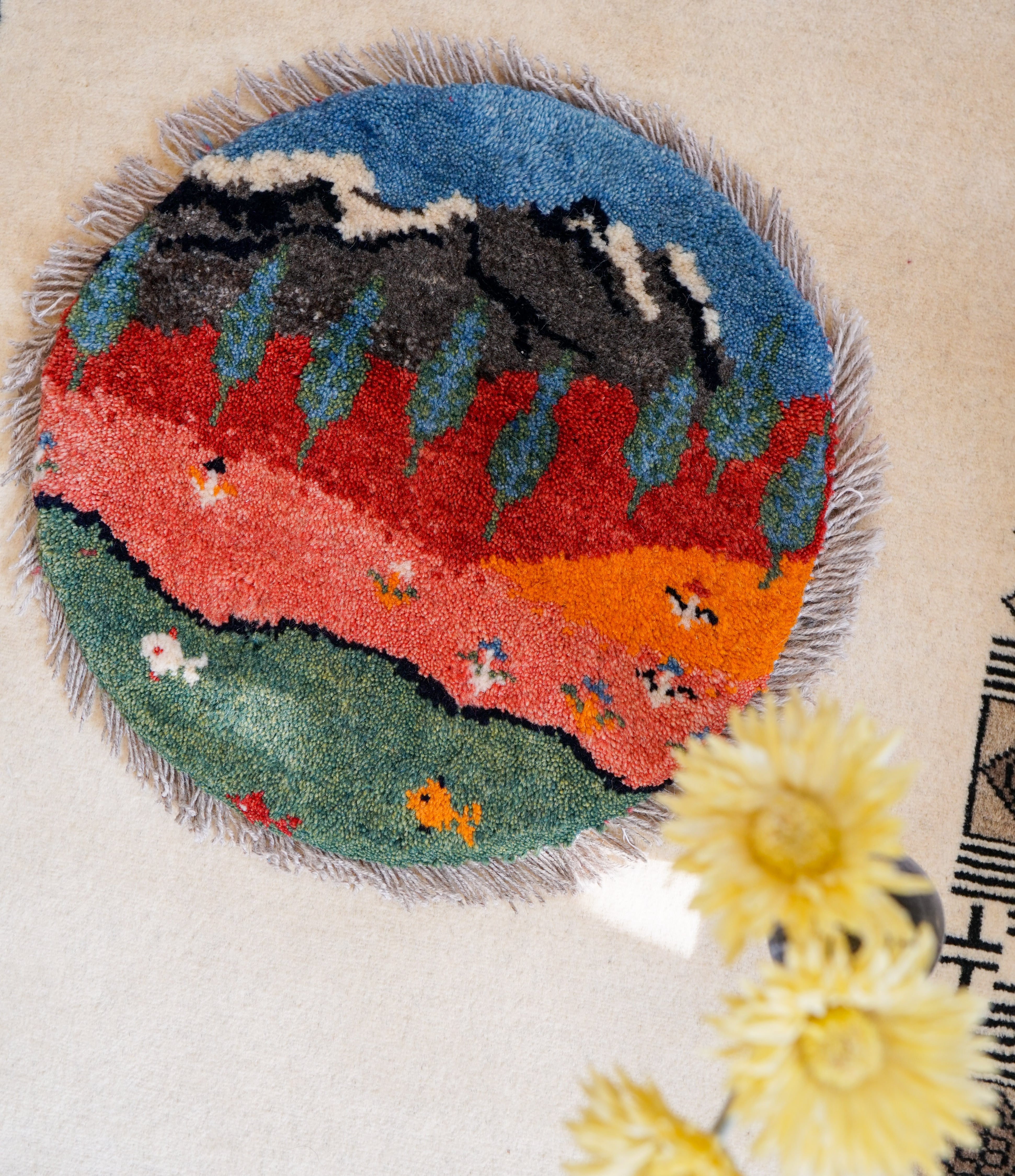 40×40cm【ペルシャ手織り丸ギャッベ】