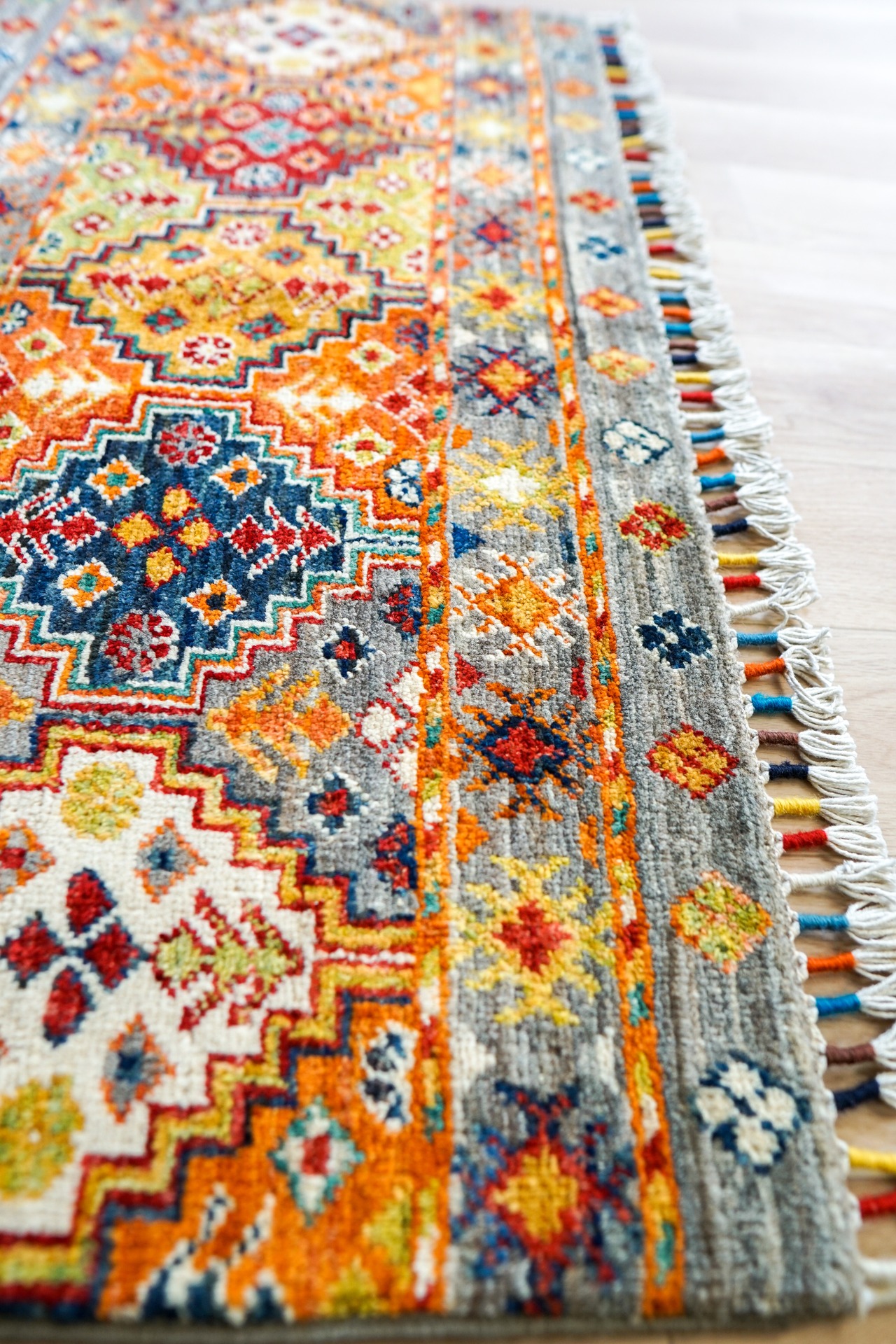 手織り絨毯は全て一点物ですので現品限りです。店頭でも販売しているため先着順となりますこと予めご了承ください。