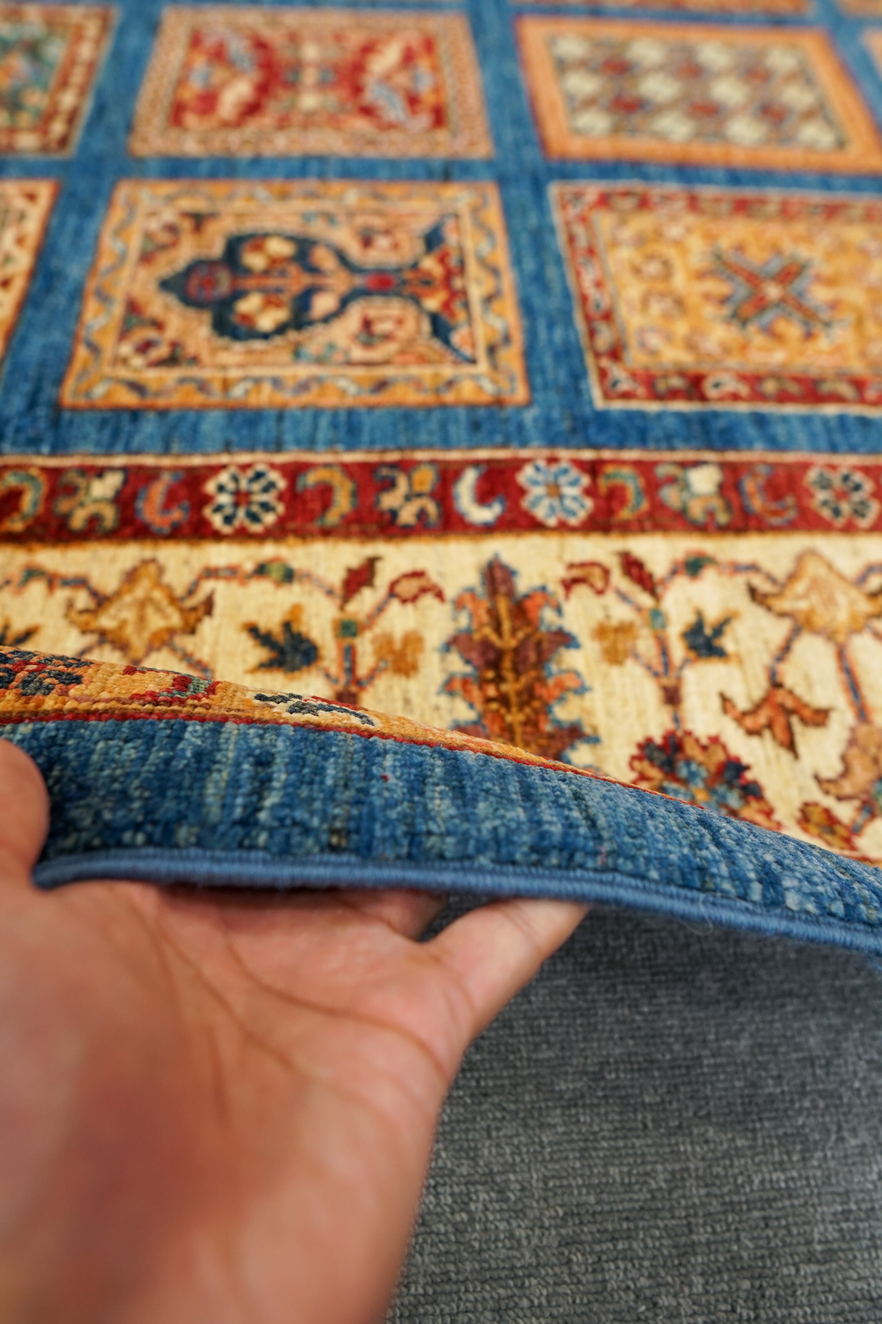 『ガズニーウール』という手で紡いだウールを使用した手織りアフガン絨毯です。