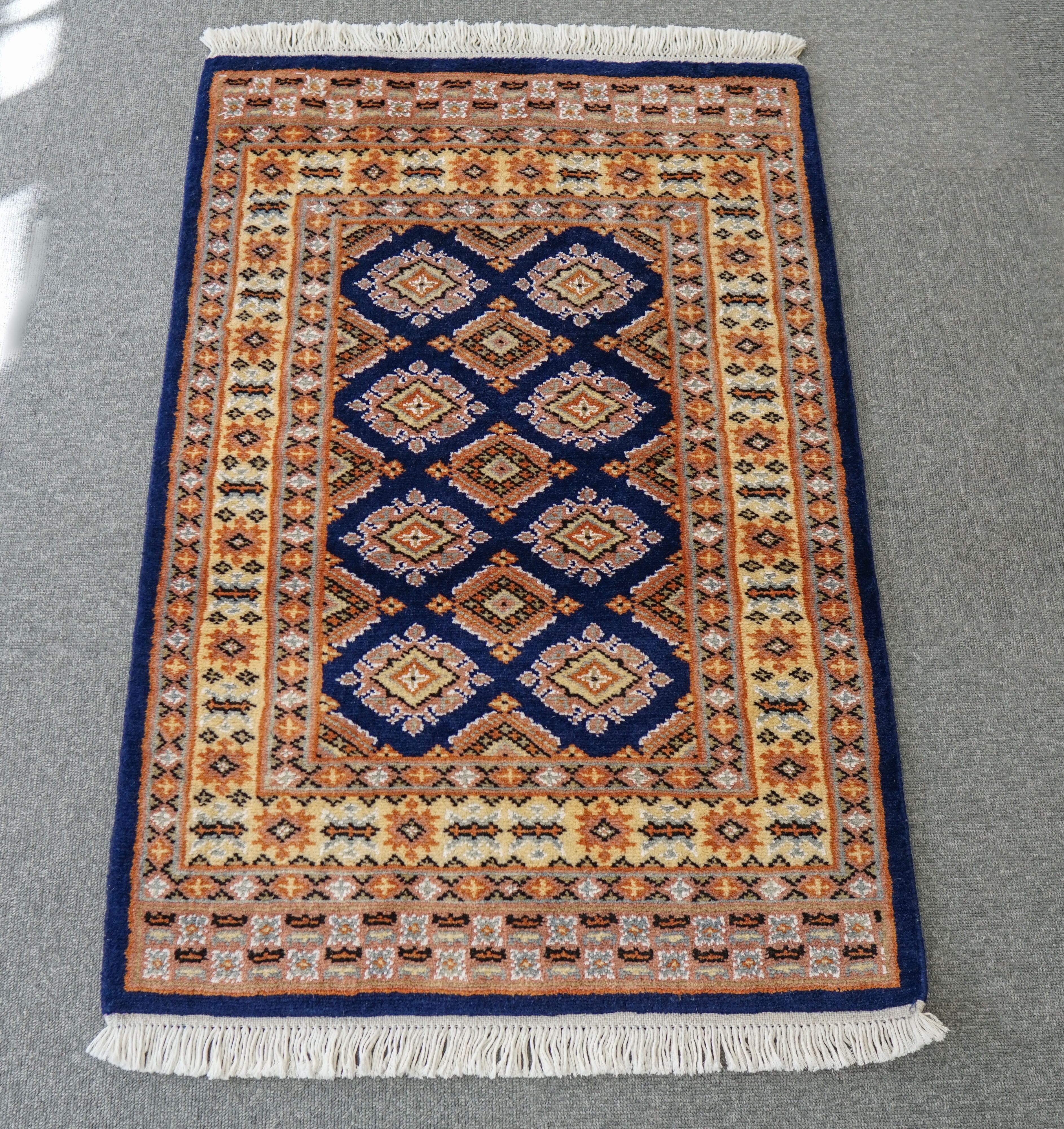 ニュージーランド産の上質なウールを使用し、信頼できる熟練した職人が手織りしたパキスタン絨毯です。ニュージーランド産のウールはタンパク質をたくさん含んでいるためハリ、艶に富むのが特徴です。肌触りはなめらかで柔らかく、弾力のあるパイル地が底冷えを防ぎ足元を快適にします。