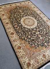 手織り絨毯は全て一点ものですので現品限りです。店舗でも販売しているため先着順となりますこと予めご了承ください。