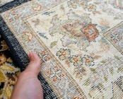 メダリオンを中心に広がるデザインは、たっぷりウールを使用することで細かな箇所まで繊細に織り込まれています。
