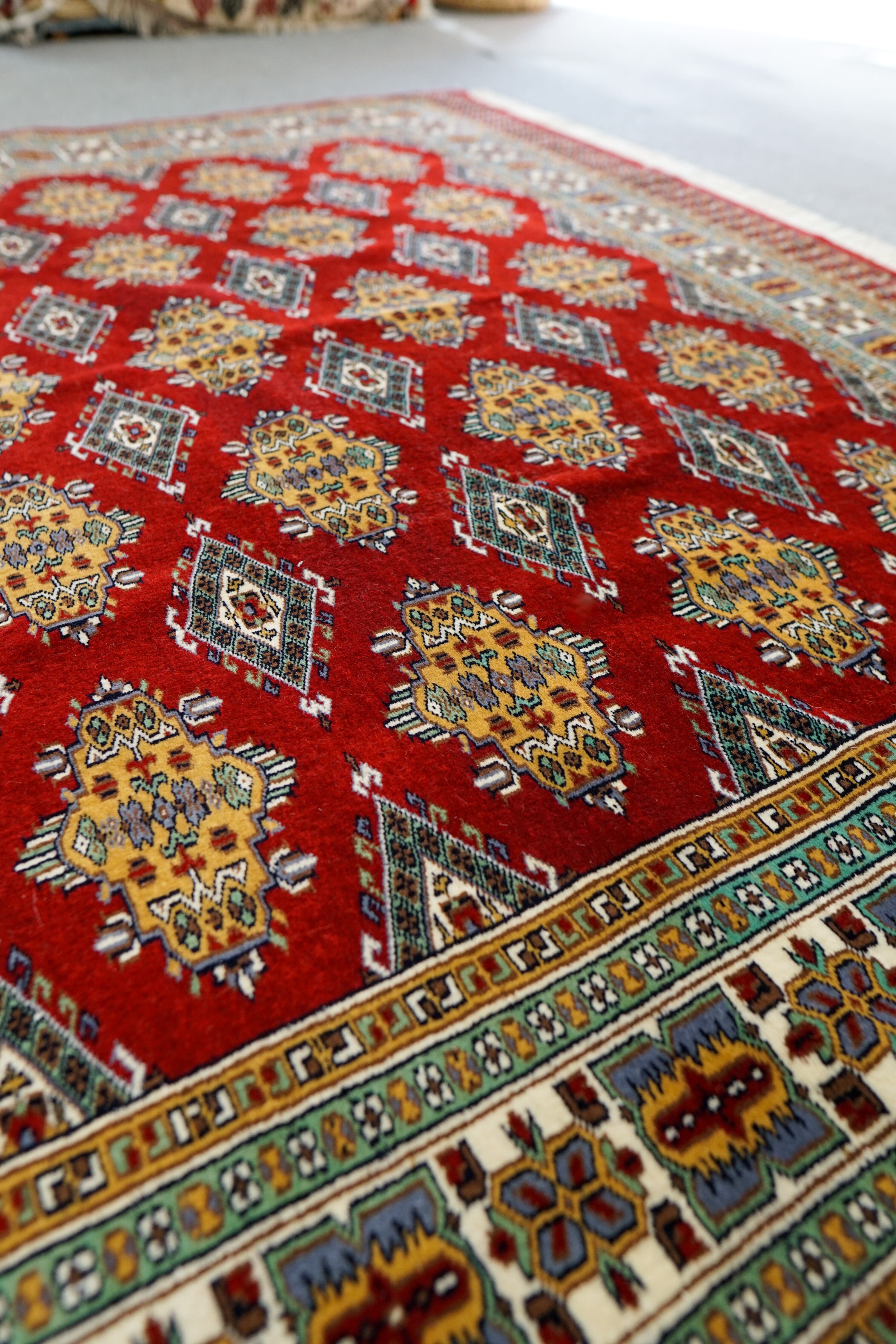 手織り絨毯は全て一点物ですので現品限りです。店頭でも販売しているため先着順となりますこと予めご了承ください。