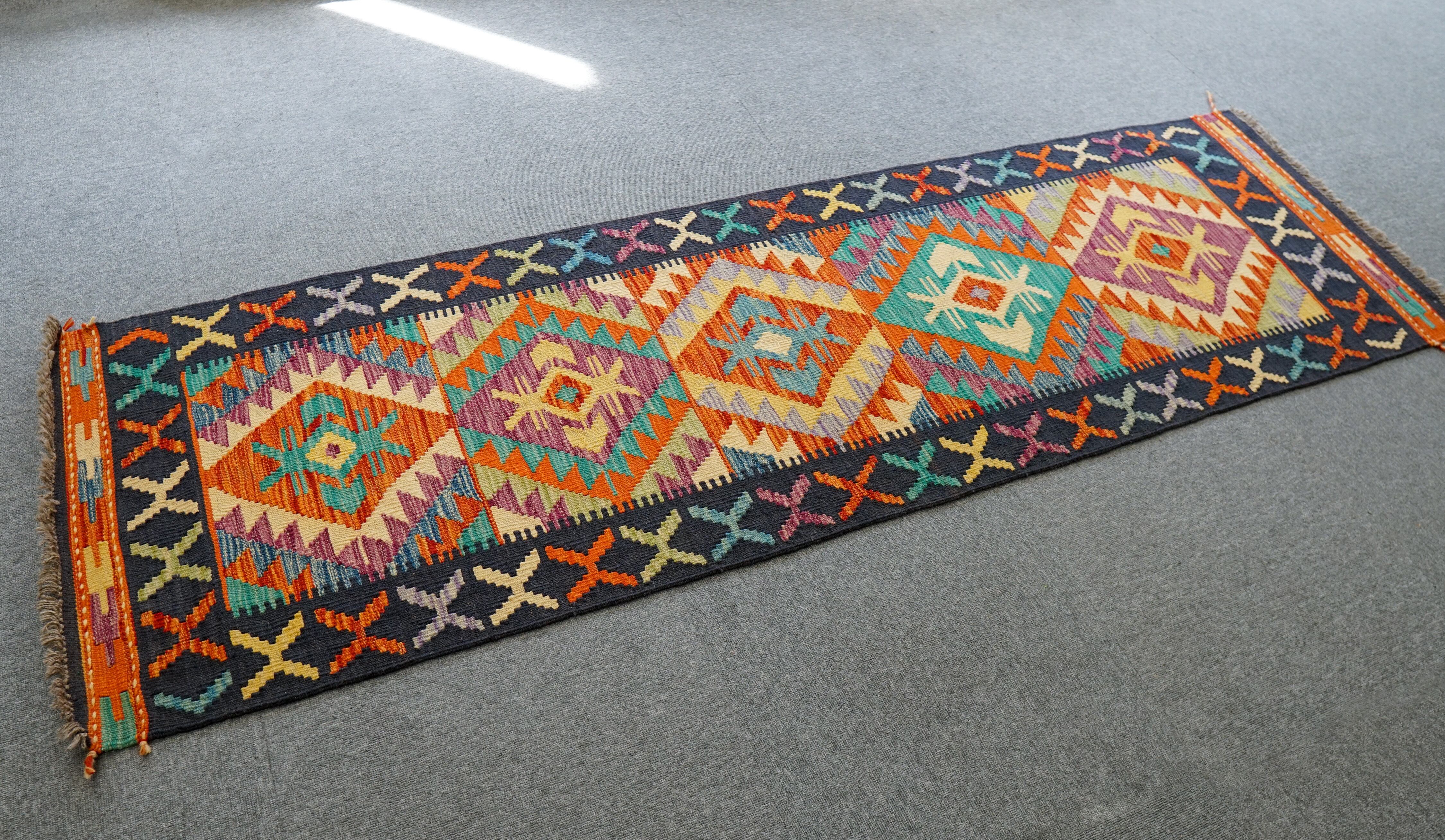 217×67cm【アフガン手織りキリム ランナー】廊下敷き 手織り絨毯