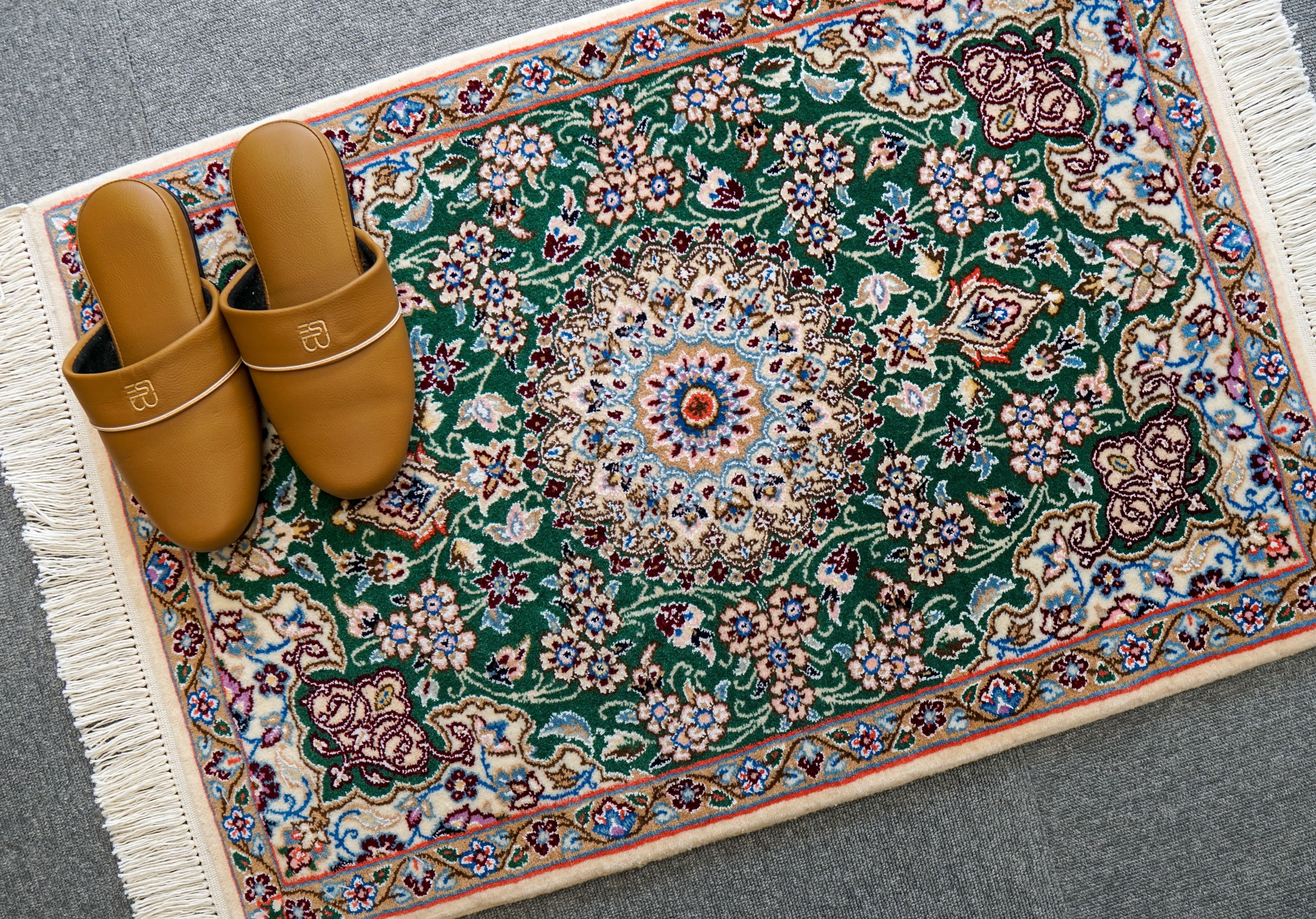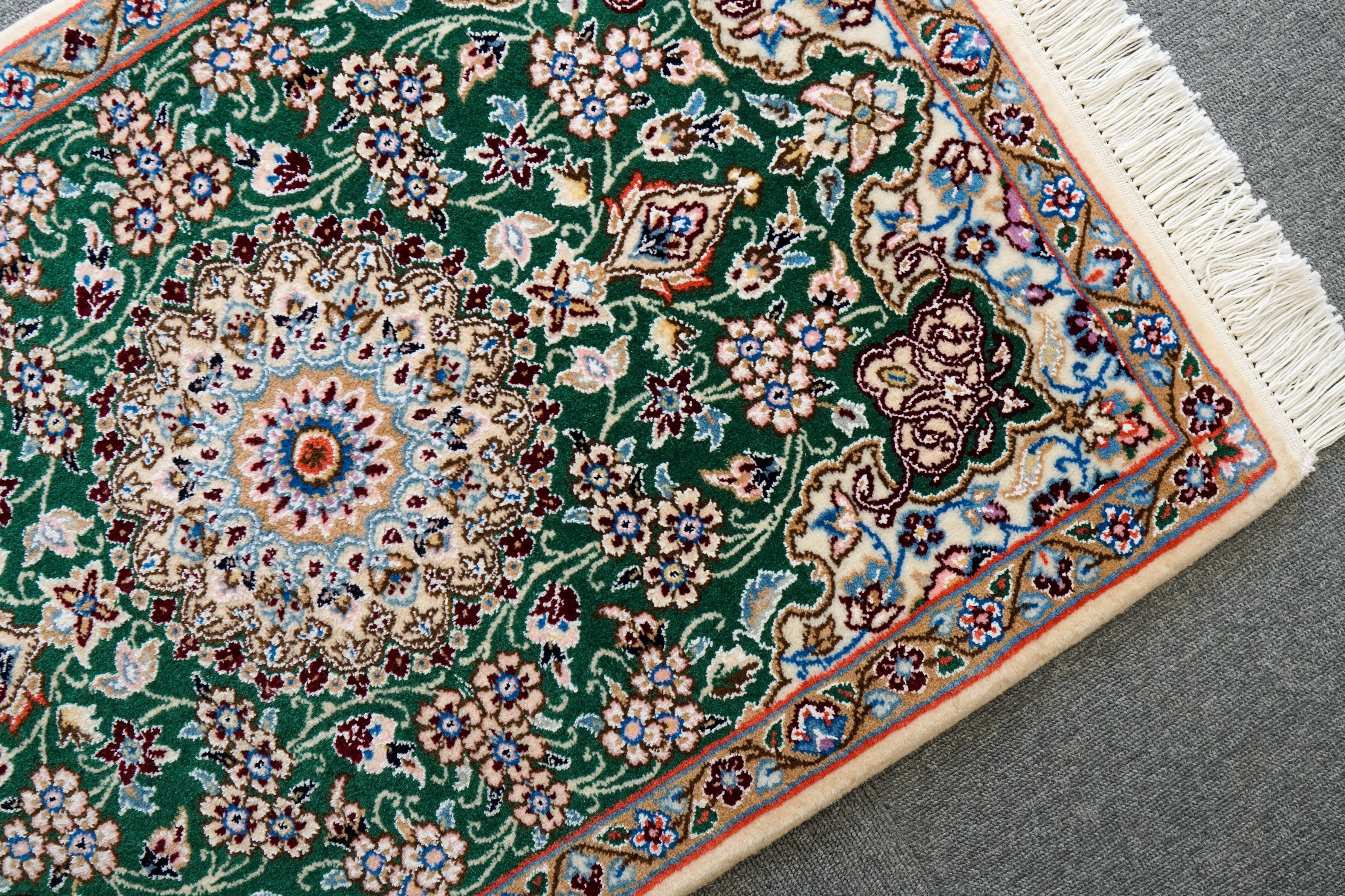 上質なウールを使用したペルシャ ナイン産の手織り絨毯。