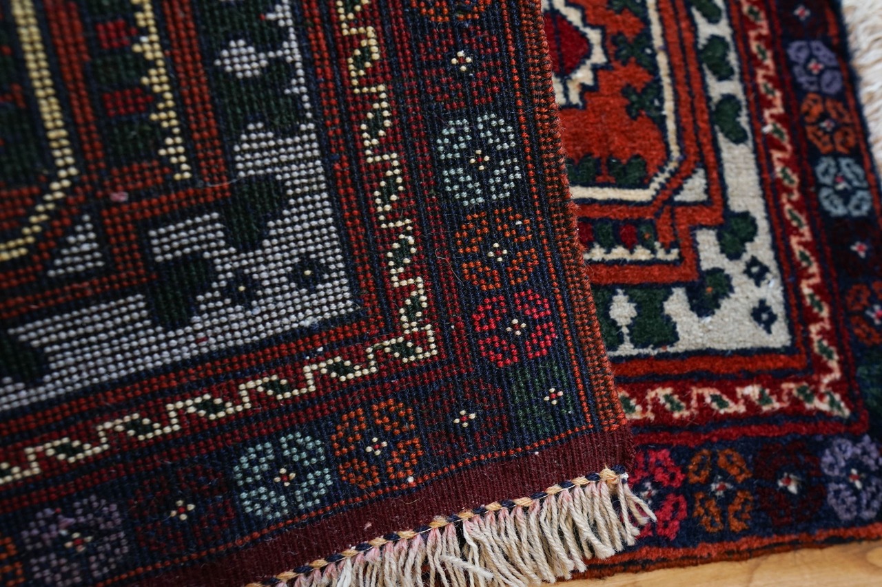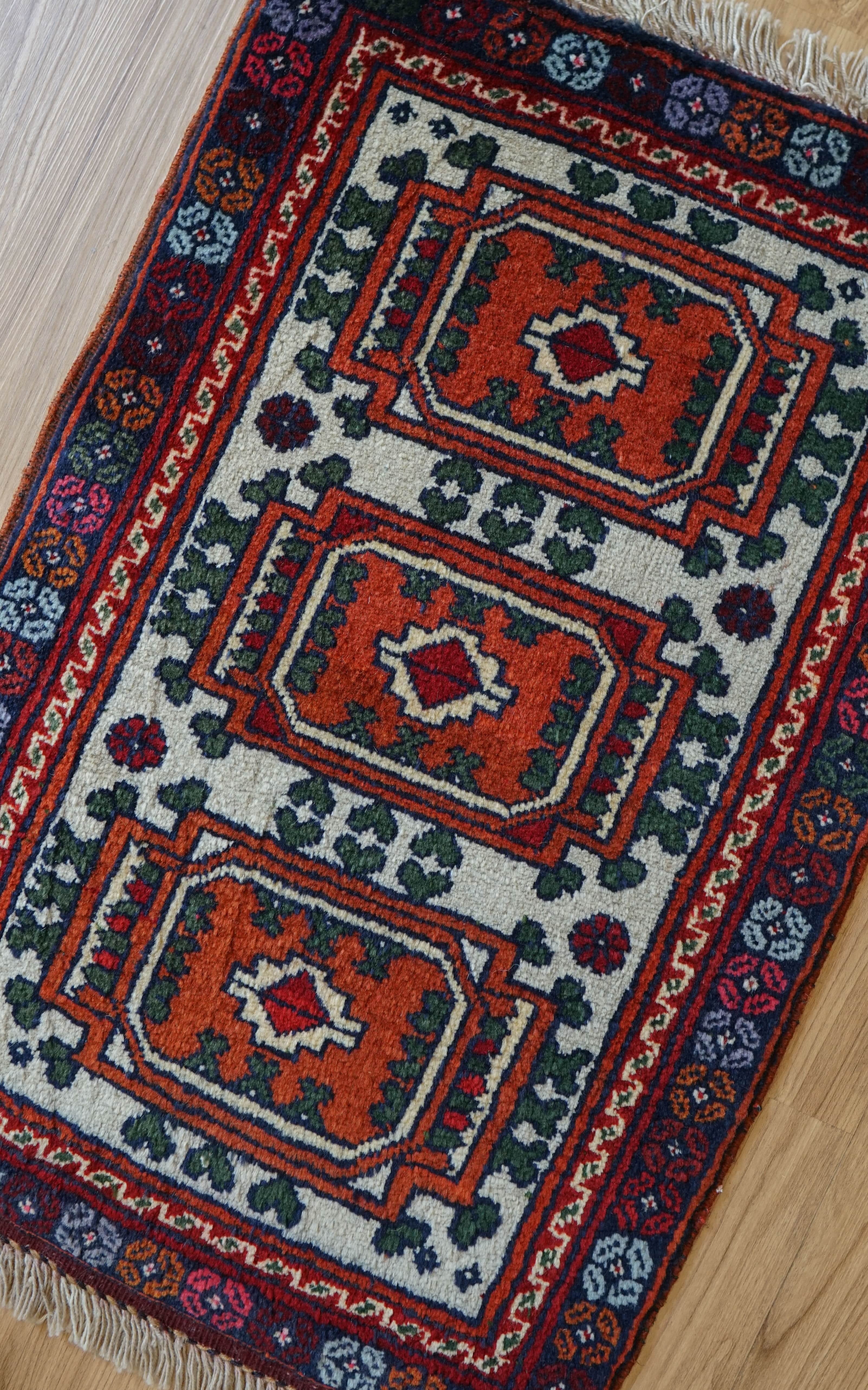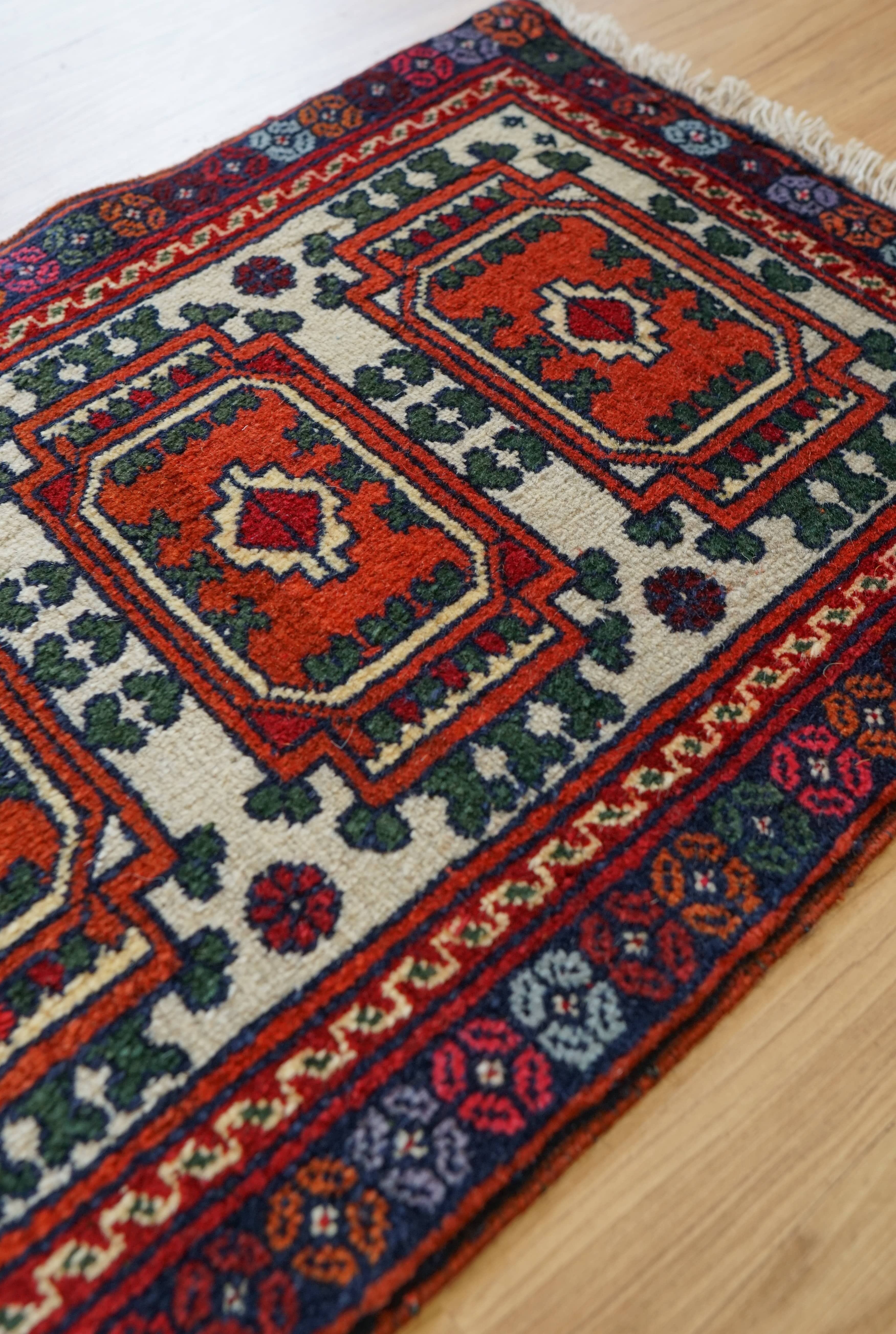アフガニスタン北部のトルクメン族によって手織りされた絨毯。草木染めしたウールを使用しています。