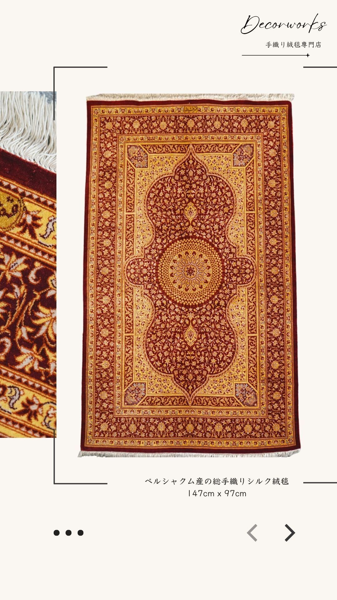 手織り絨毯は全て一点物ですので現品限りです。店頭でも販売しているため先着順となりますこと予めご了承ください。