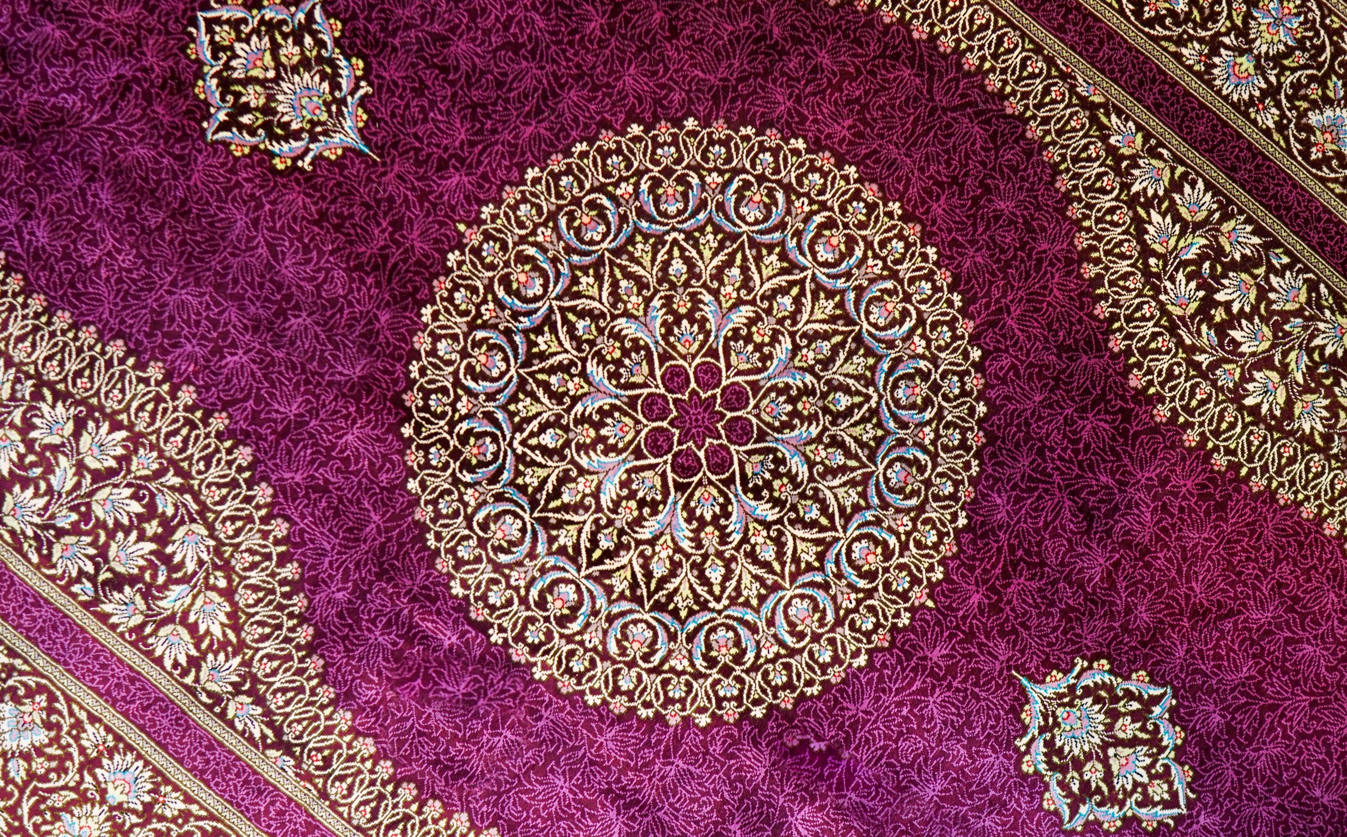 シルク絨毯は毛の向きにより色の見え方が異なります。