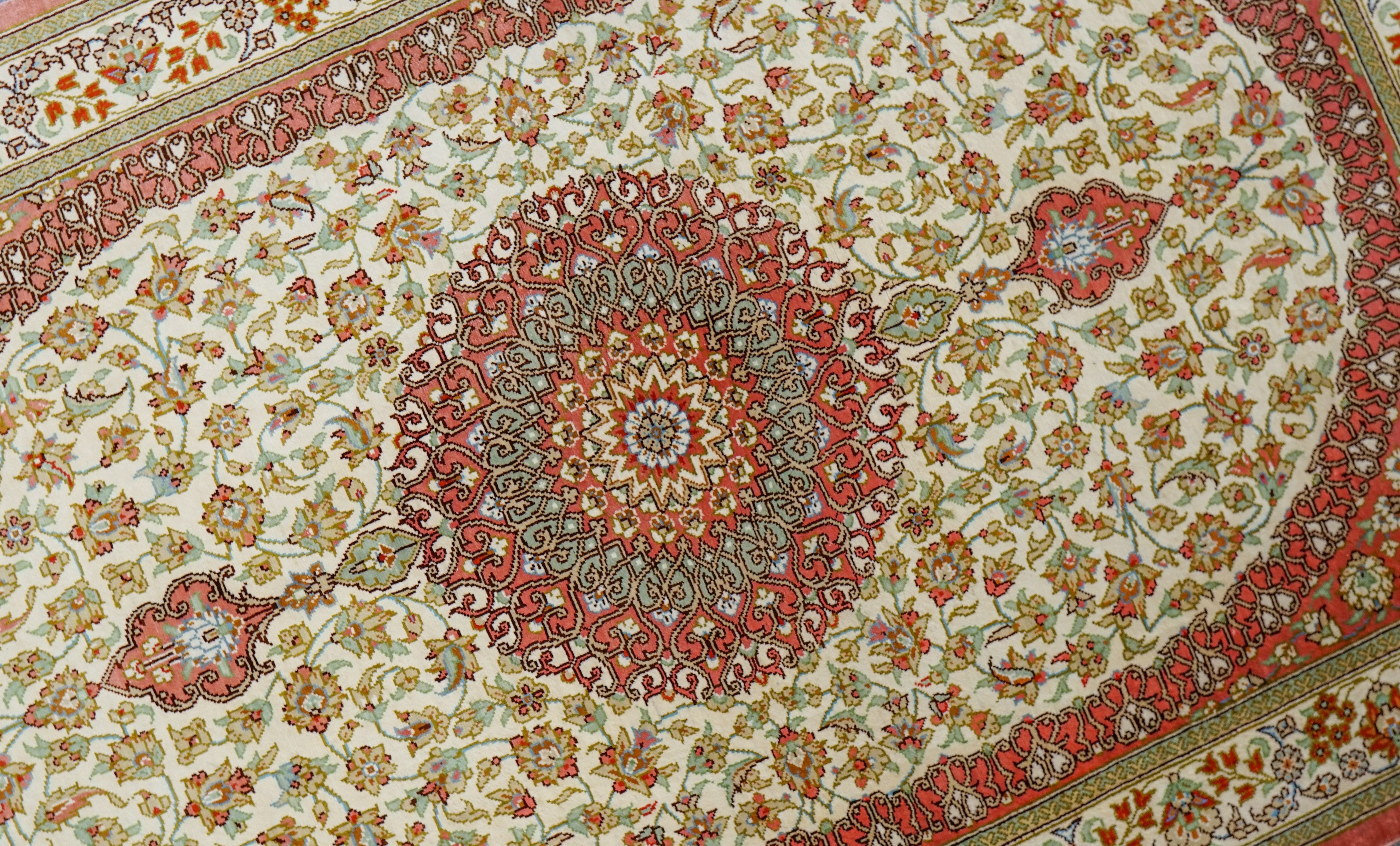 世界的な人気を誇るペルシャ クム産の総手織りシルク絨毯。