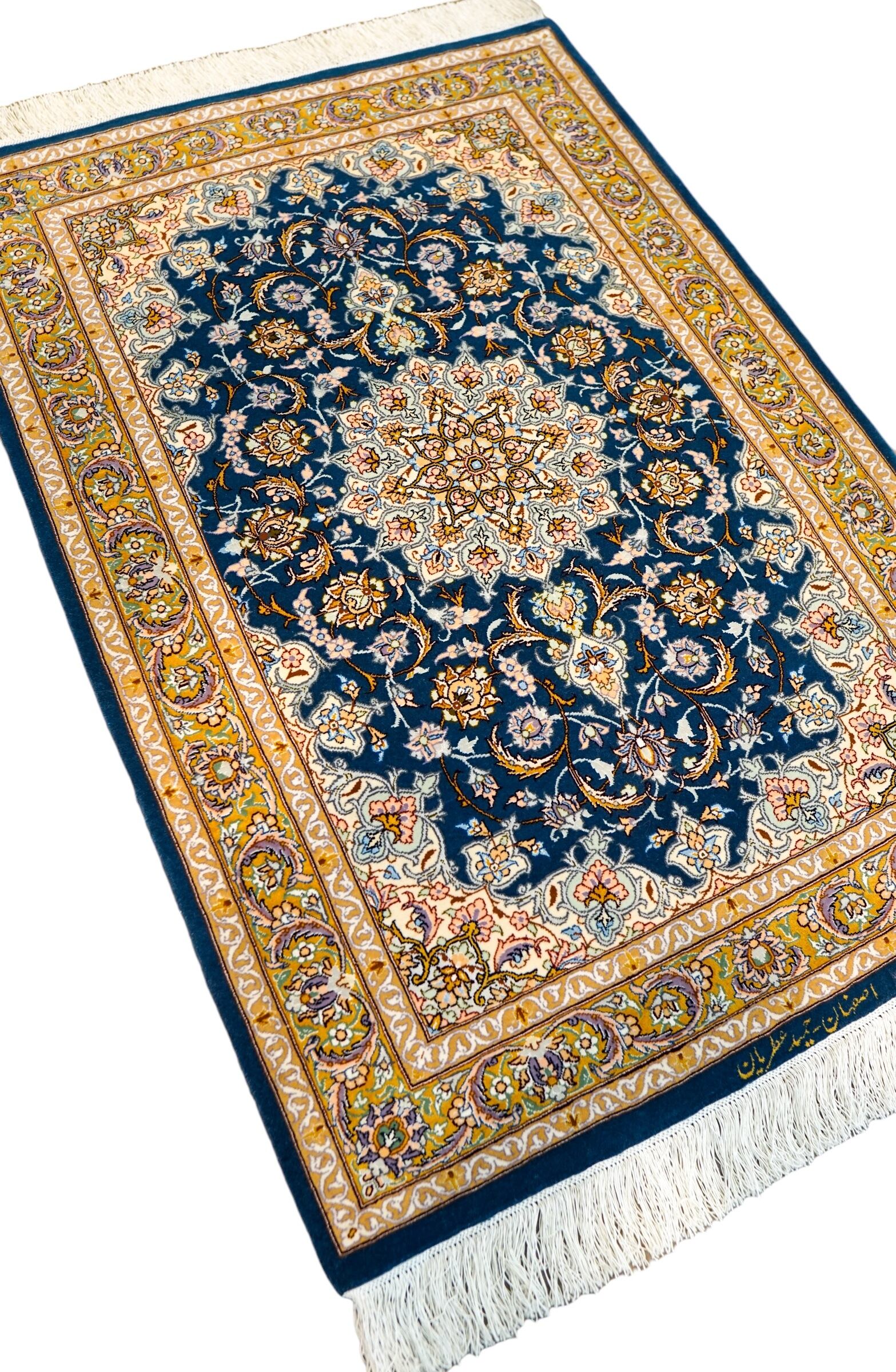 123×85cm【ペルシャ手織り絨毯 イスファハン産 アツトリアン房 証明書付 】